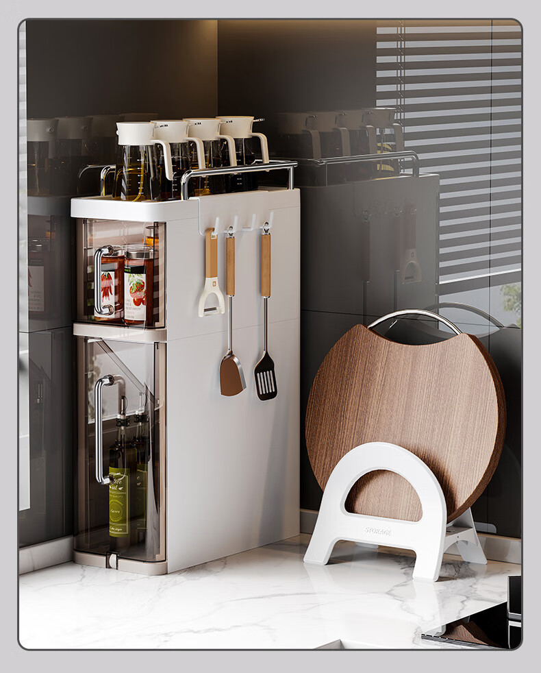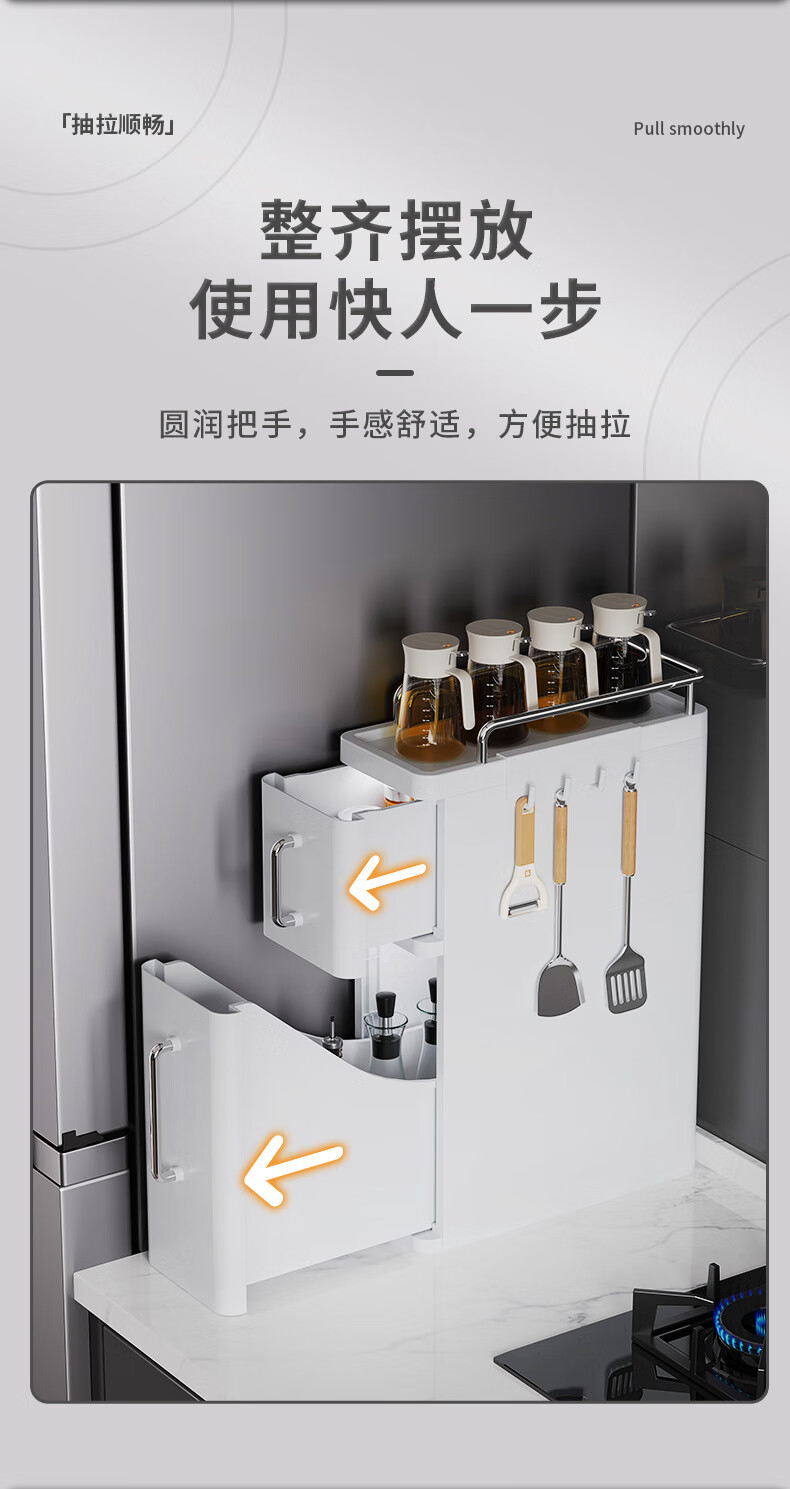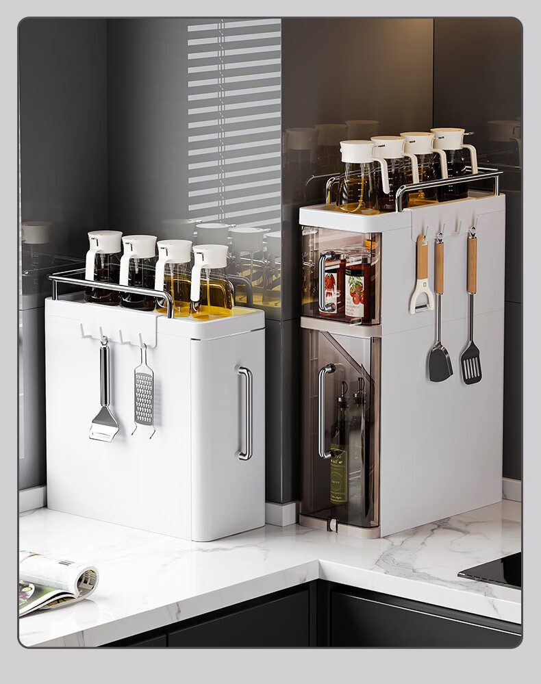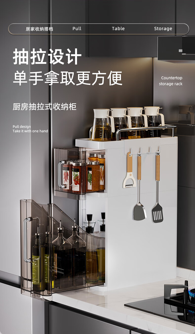 Japanese kitchen condiment storage rack pull-out condiment storage box oil salt sauce vinegar countertop storage rack white-3-layer sandwich storage cabinet