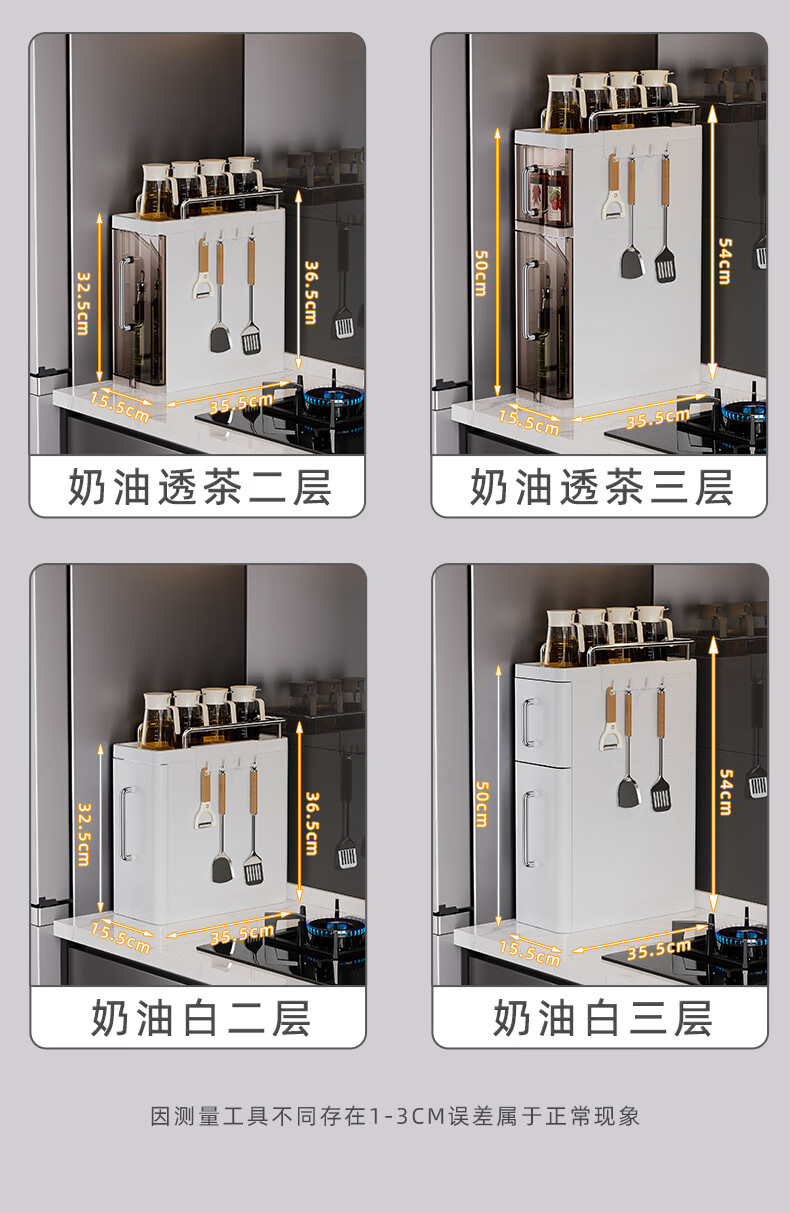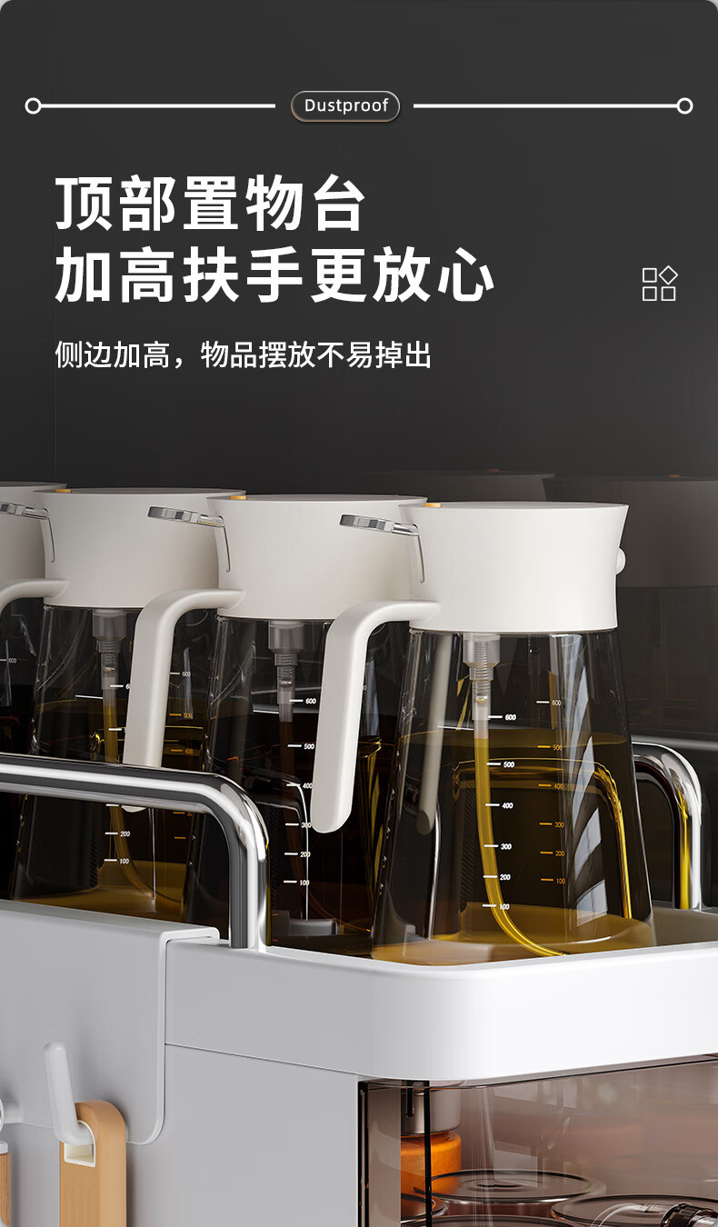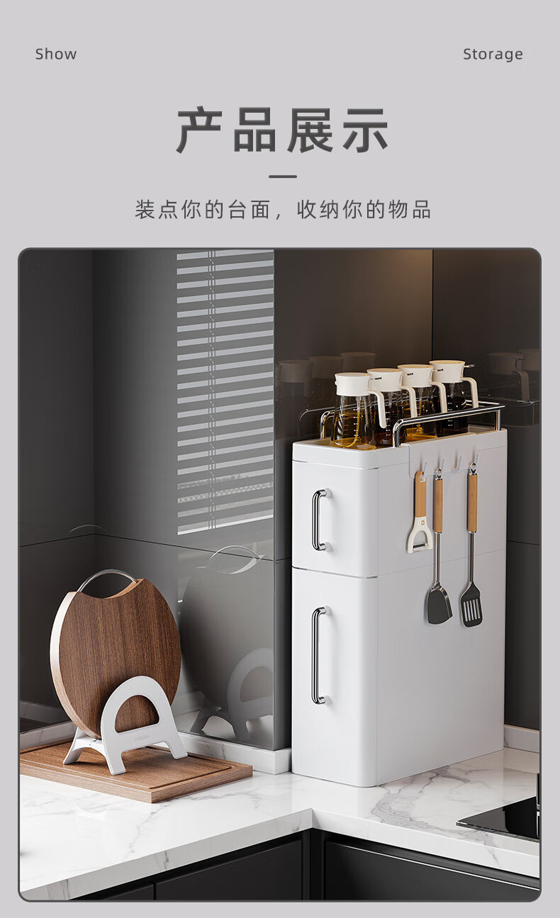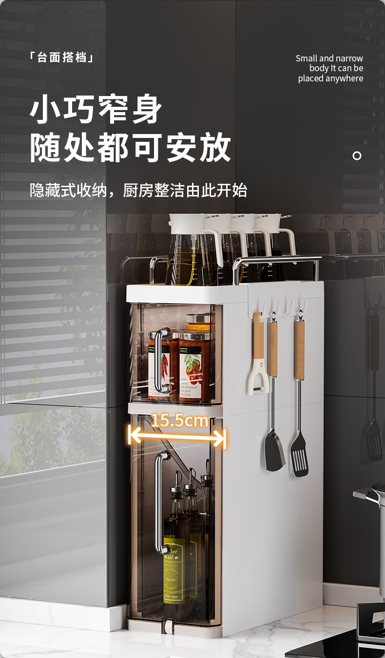 Japanese kitchen condiment storage rack pull-out condiment storage box oil salt sauce vinegar countertop storage rack white-3-layer sandwich storage cabinet