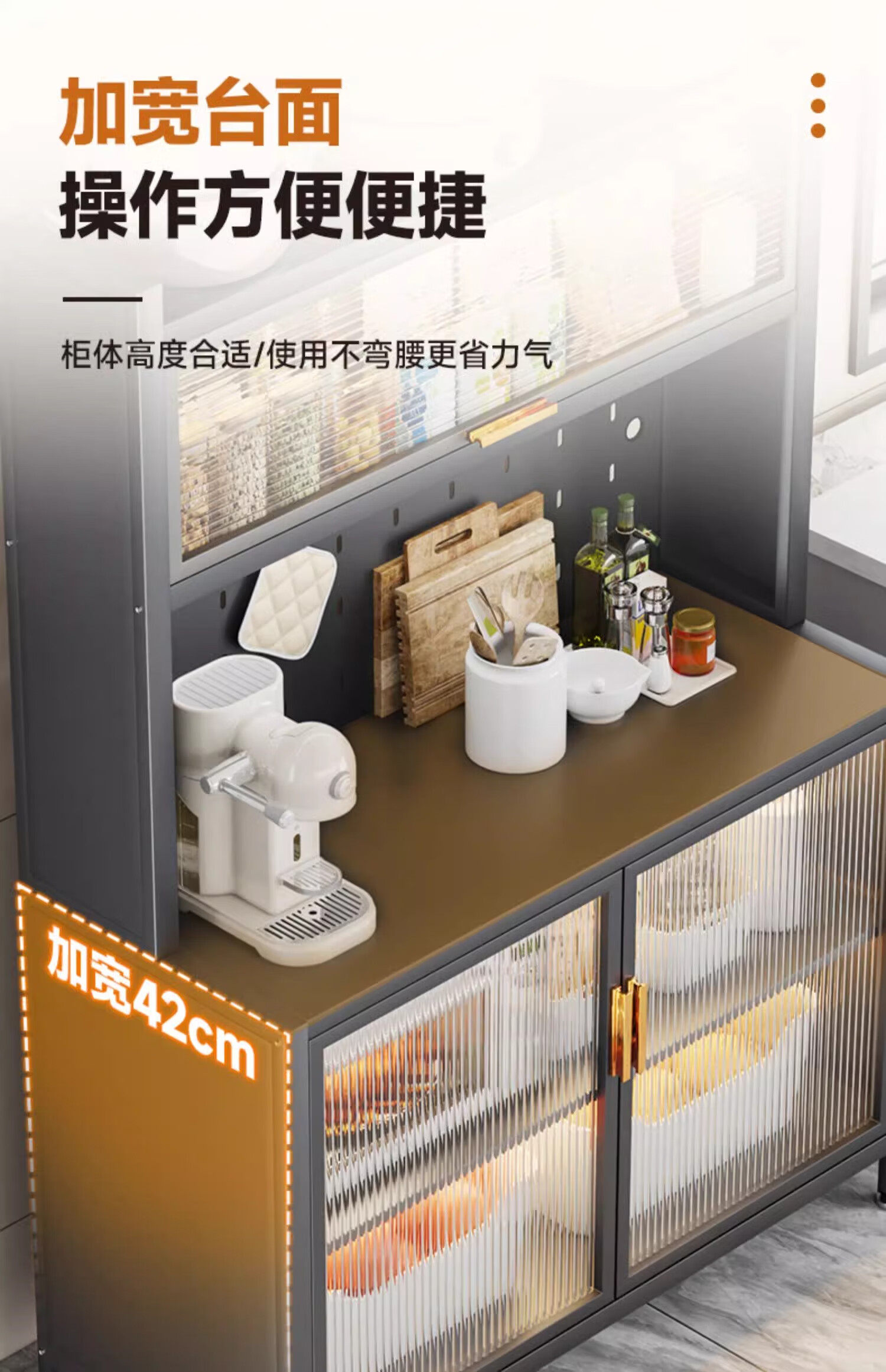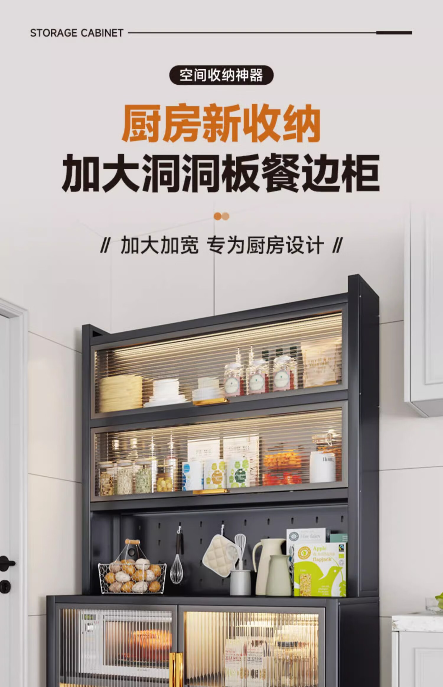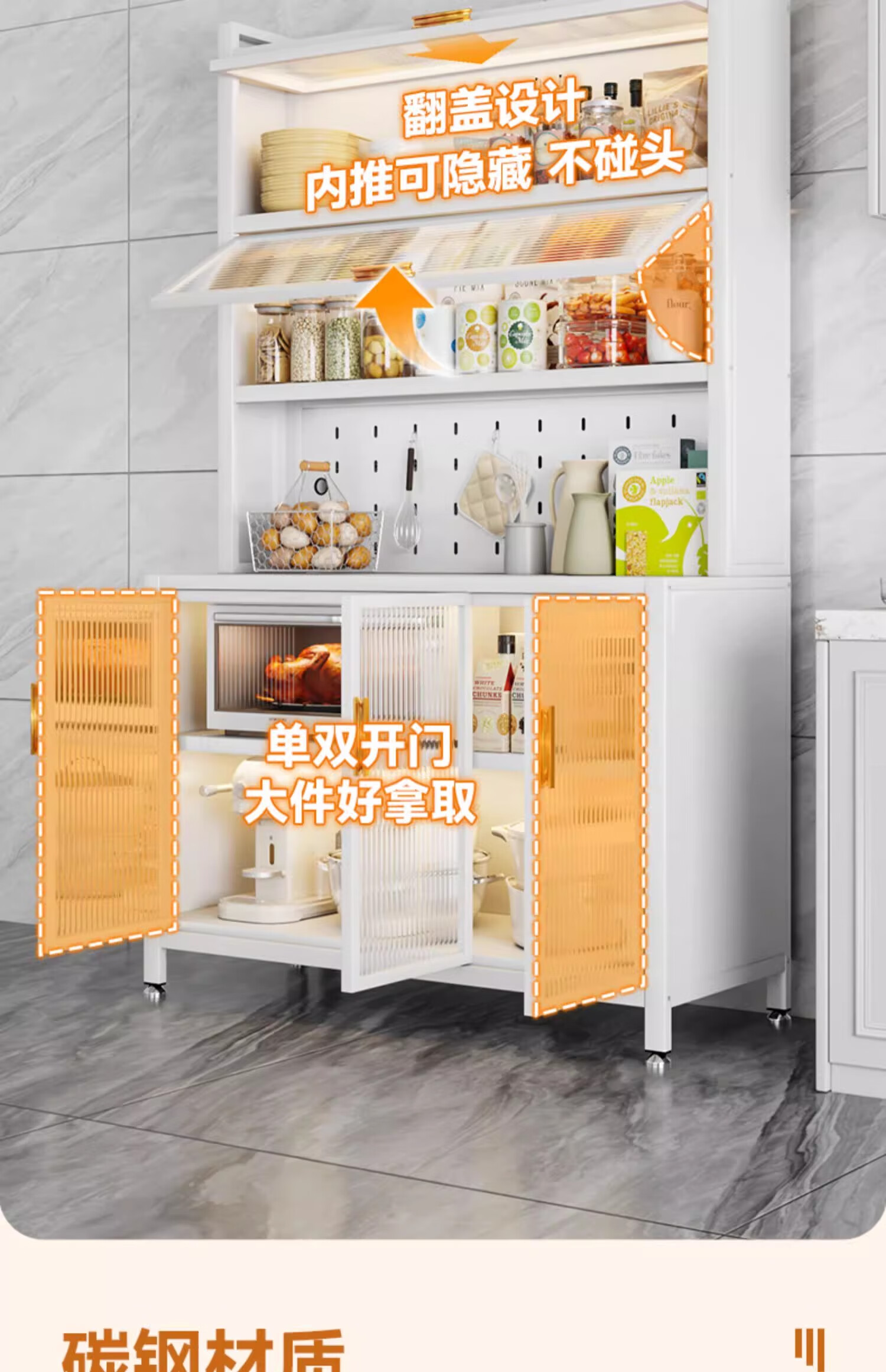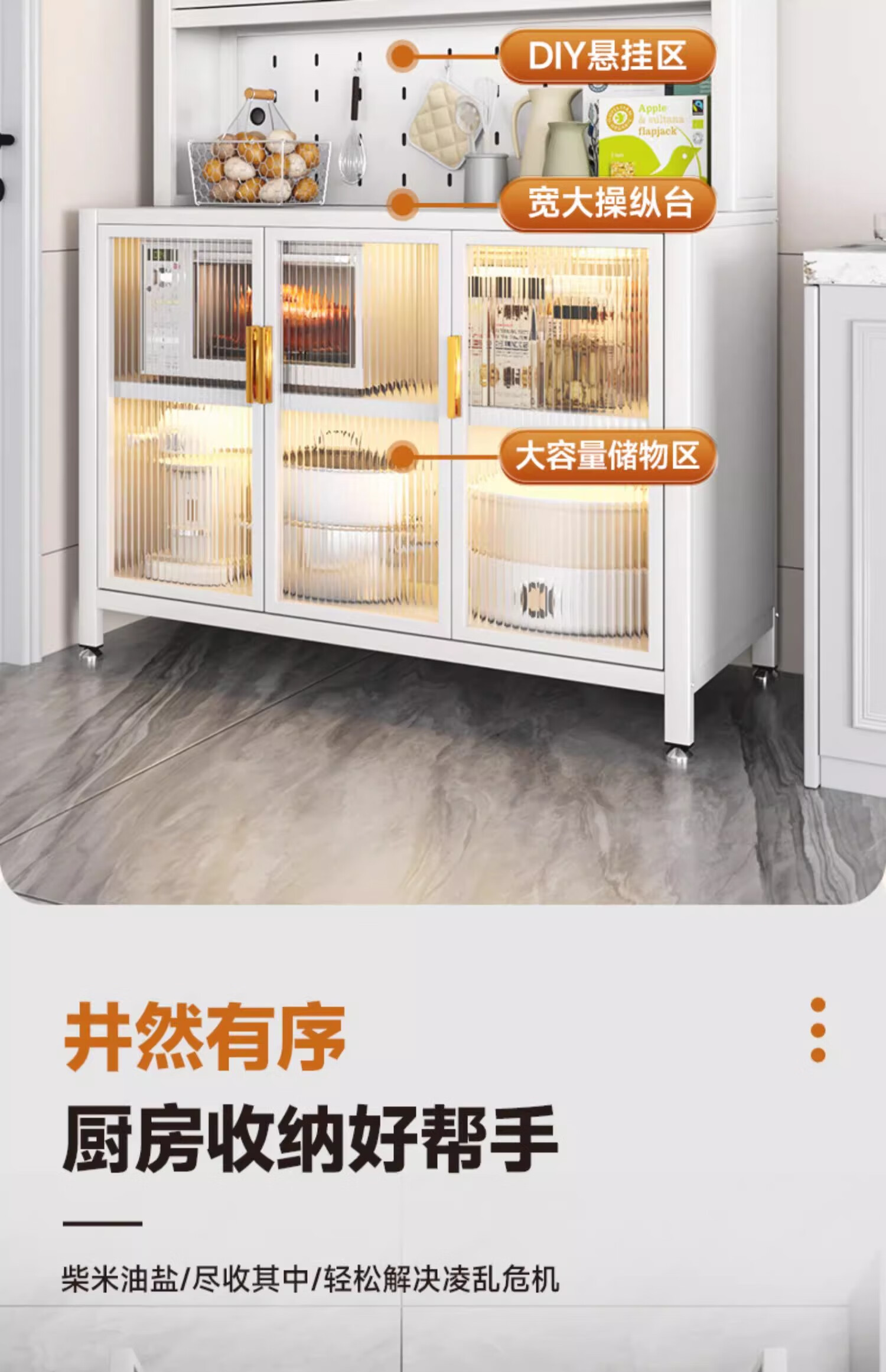 Kitchen multifunctional storage rack microwave oven cupboard storage storage cabinet sideboard wall integrated storage cabinet light luxury gray (length 120) six layers - extra thick new style