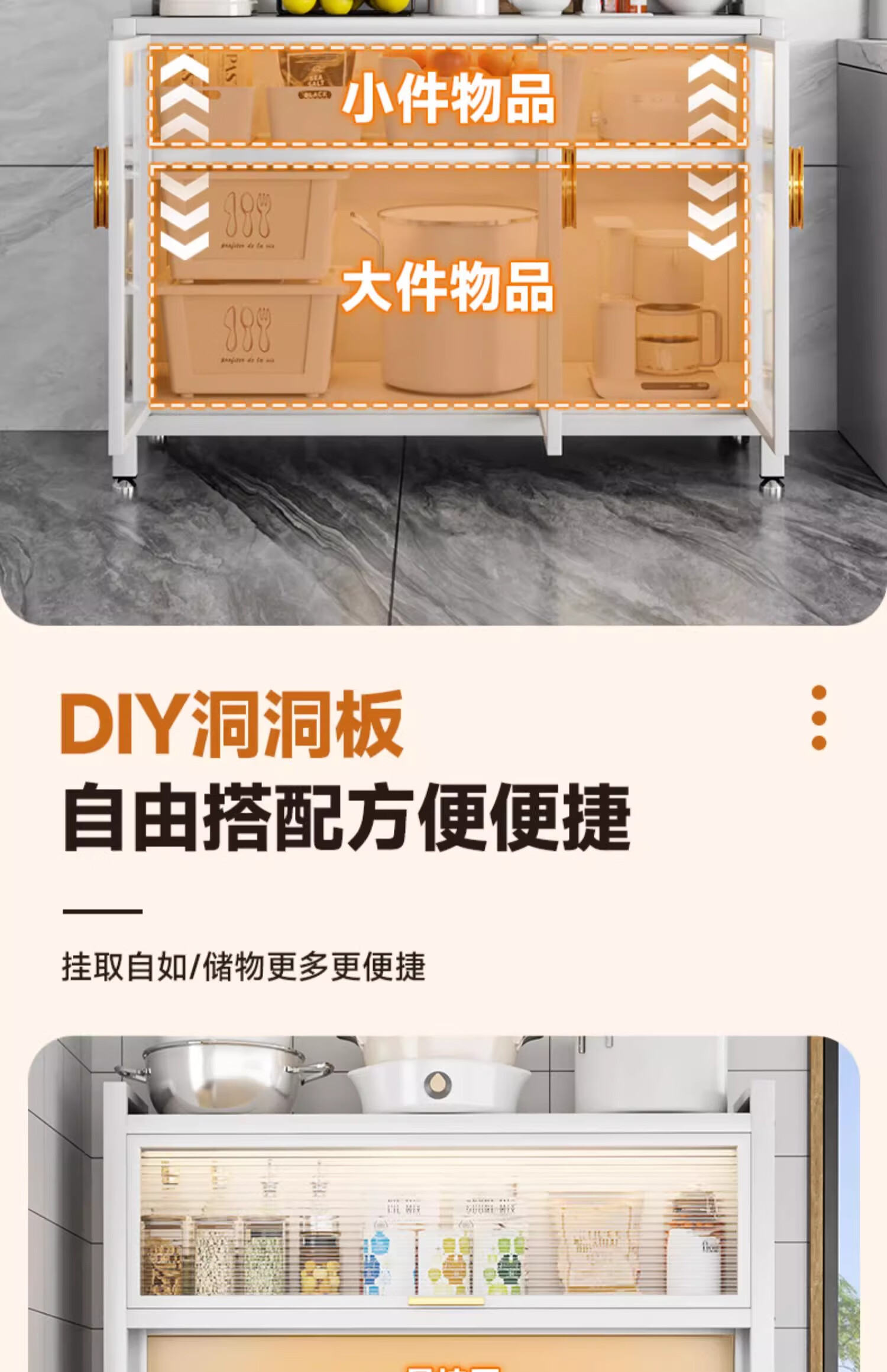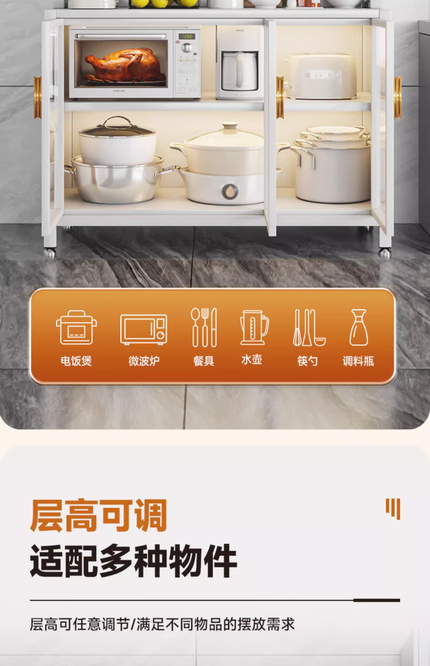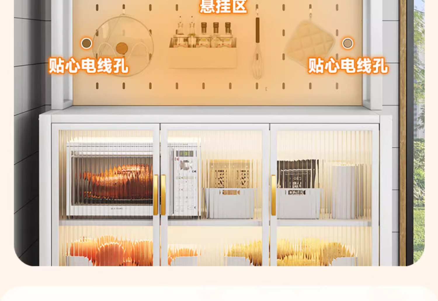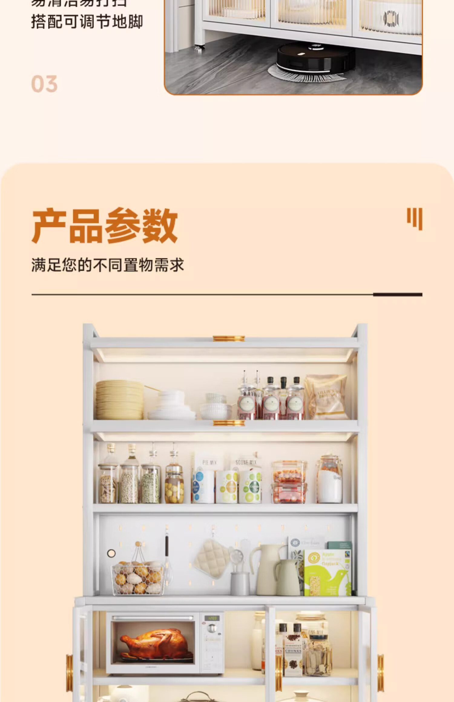 Kitchen multifunctional storage rack microwave oven cupboard storage storage cabinet sideboard wall integrated storage cabinet light luxury gray (length 120) six layers - extra thick new style