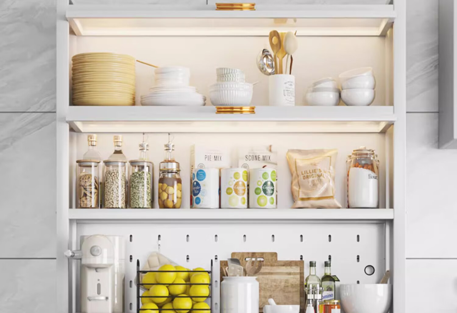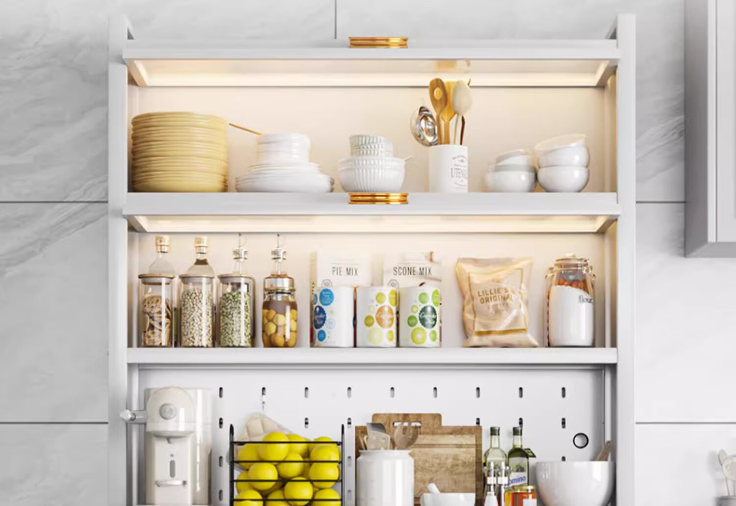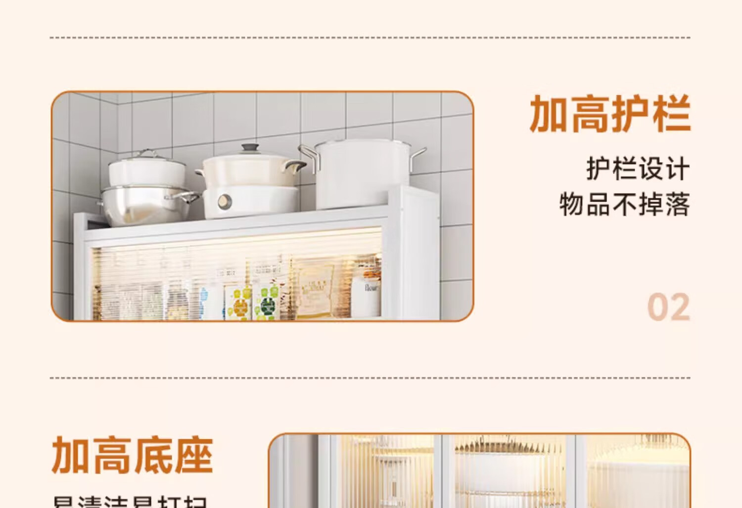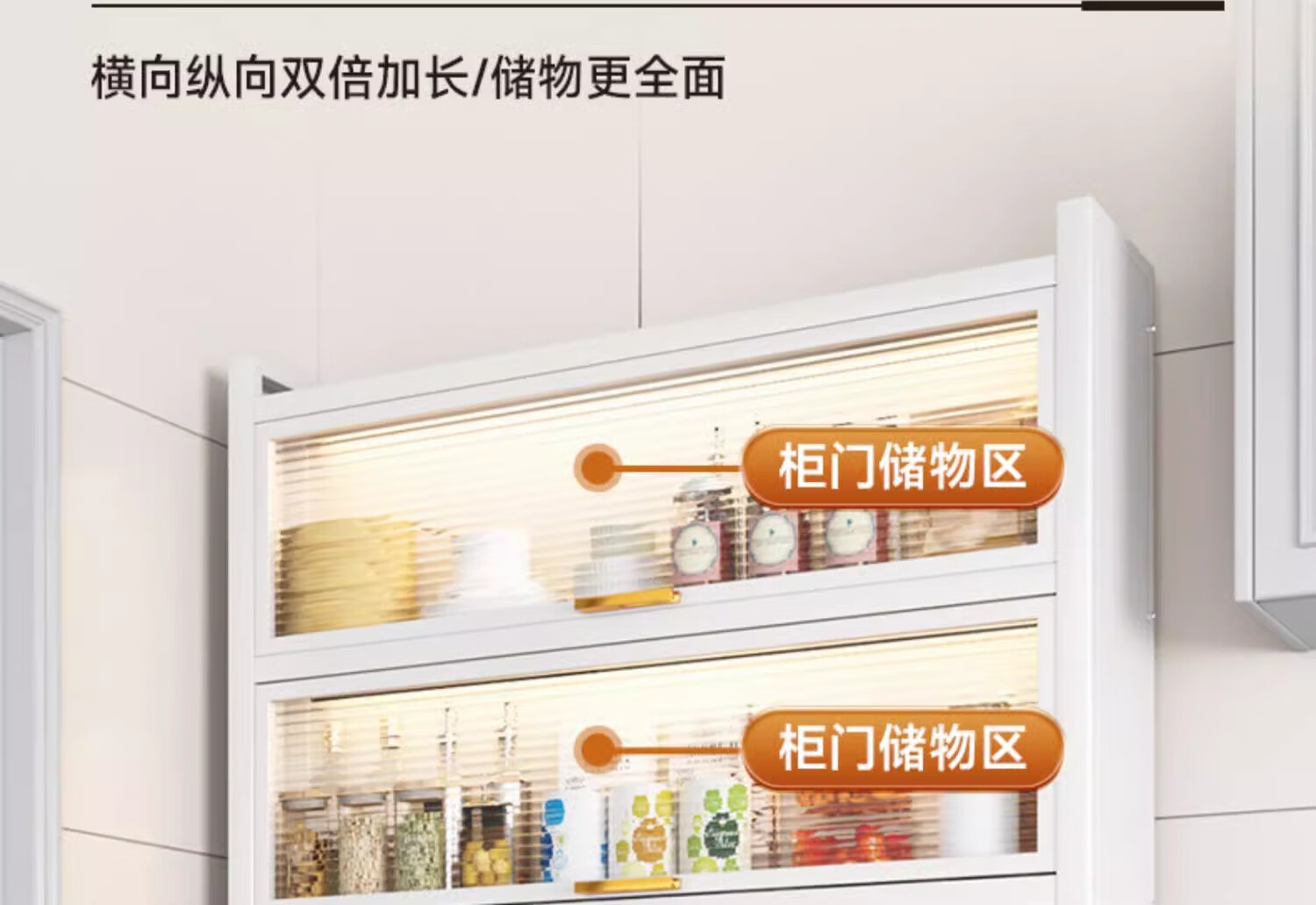 Kitchen multifunctional storage rack microwave oven cupboard storage storage cabinet sideboard wall integrated storage cabinet light luxury gray (length 120) six layers - extra thick new style
