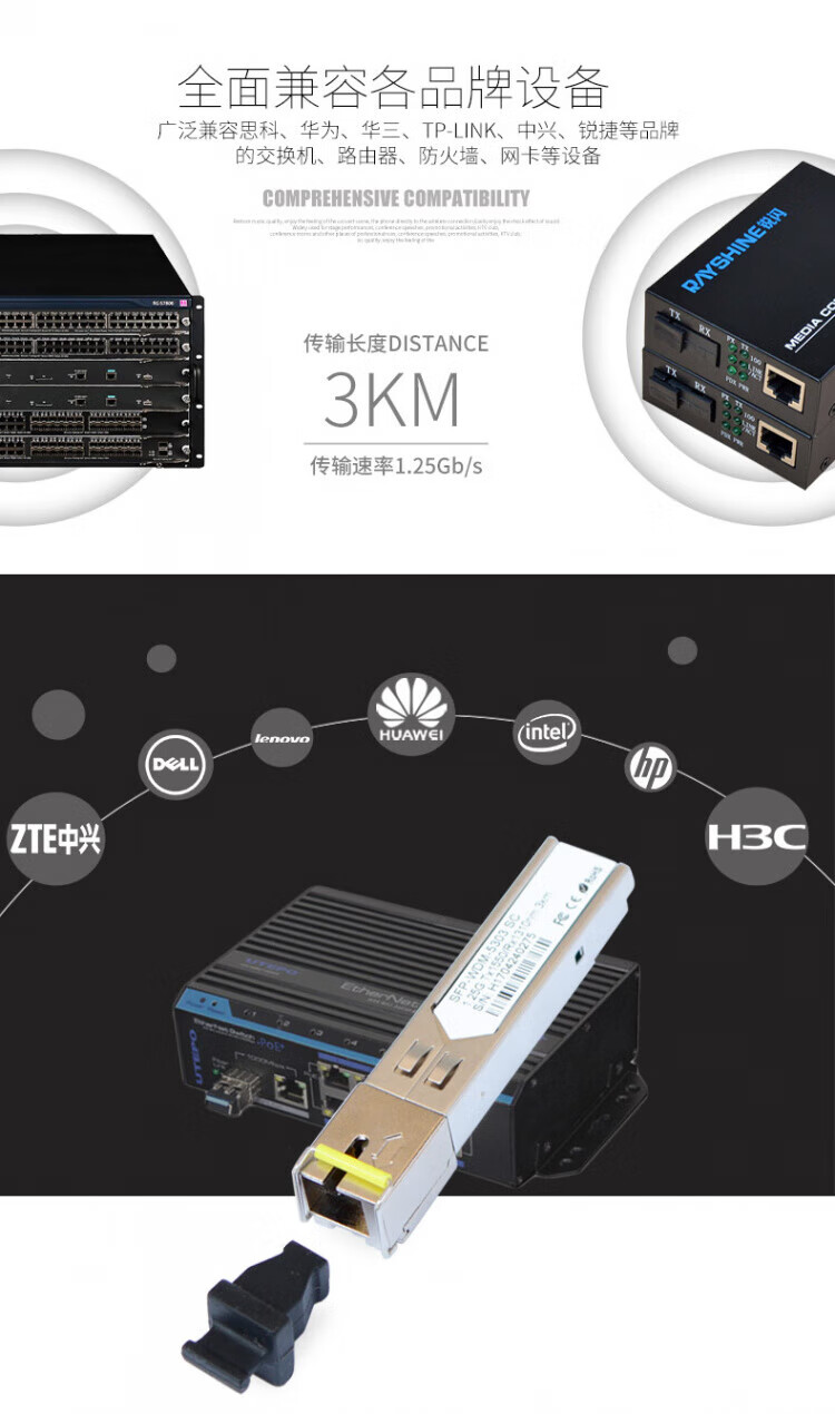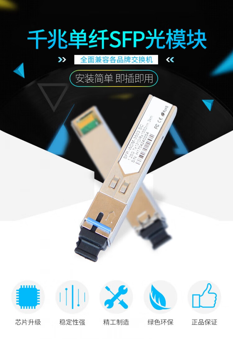 Ruishan sfp optical module Gigabit single mode single fiber 3km SC LC single core fiber module is suitable for Huawei H3C H3C ruijie Ruijie TP 20KM single mode single fiber LC 1 pair