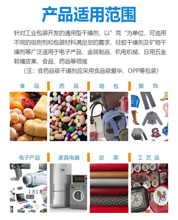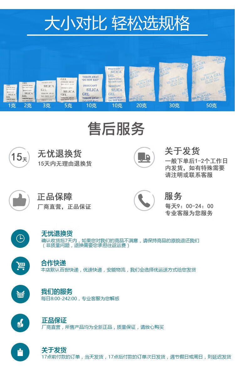 Industrial desiccant 1-1000g silica gel 1-2000 pack wardrobe clothing shoes and hats moisture-proof dehumidification environmental protection 5g 500 pack