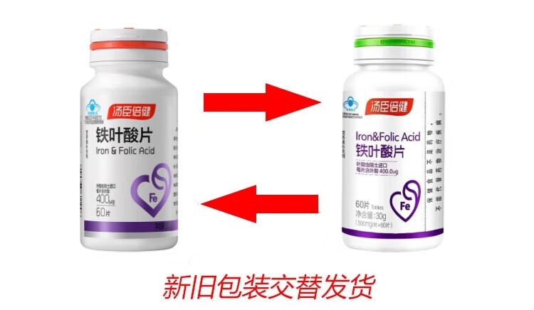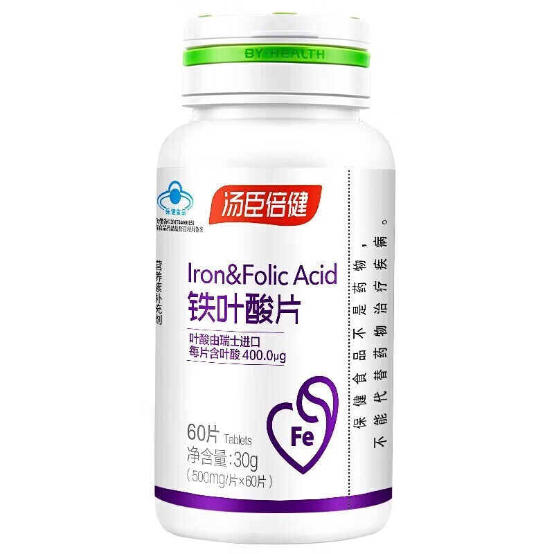 Tomson By-Health Iron Folic Acid Tablets Folic Acid Pregnant Women and Breastfeeding Nutrition Supplement Iron Folic Acid 60 Tablets*2 Bottles