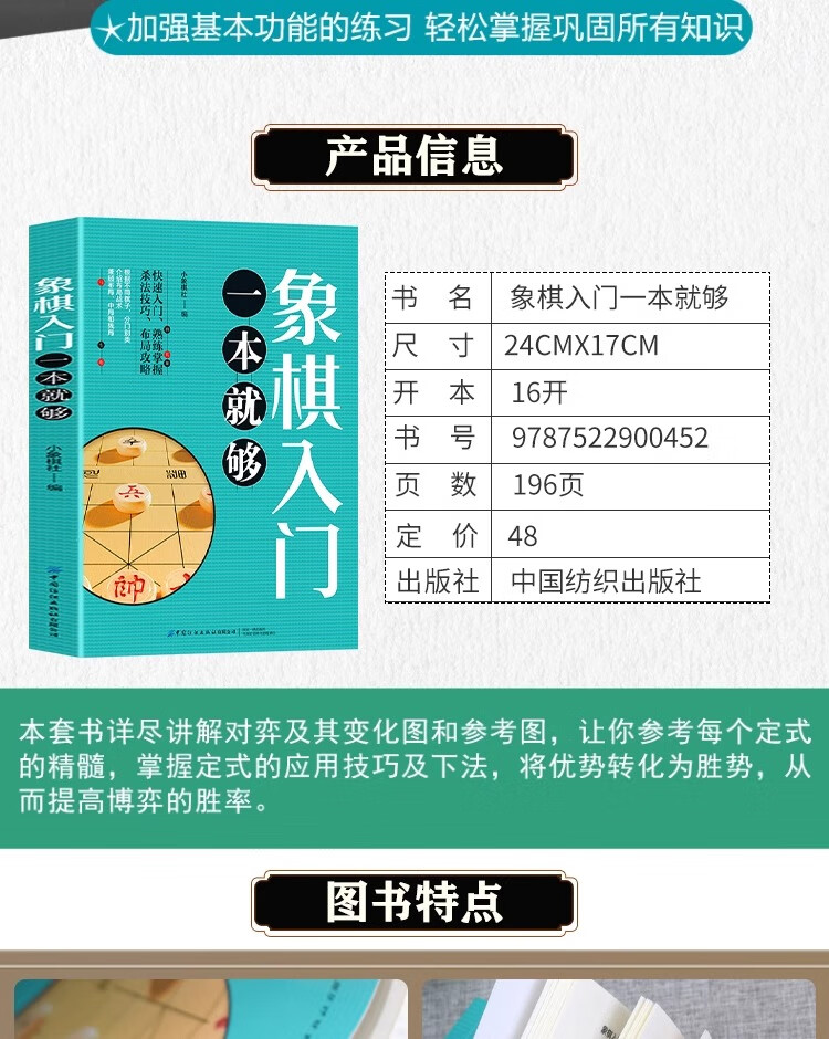 One book is enough for getting started with chess. Quick Start Little Chess Club. Tutorial materials. Proficient in killing techniques and layout strategies. Quick start skills tutorial book for chess. Chinese chess book. Complete book of introductory chess records. One book is enough for getting started with chess.