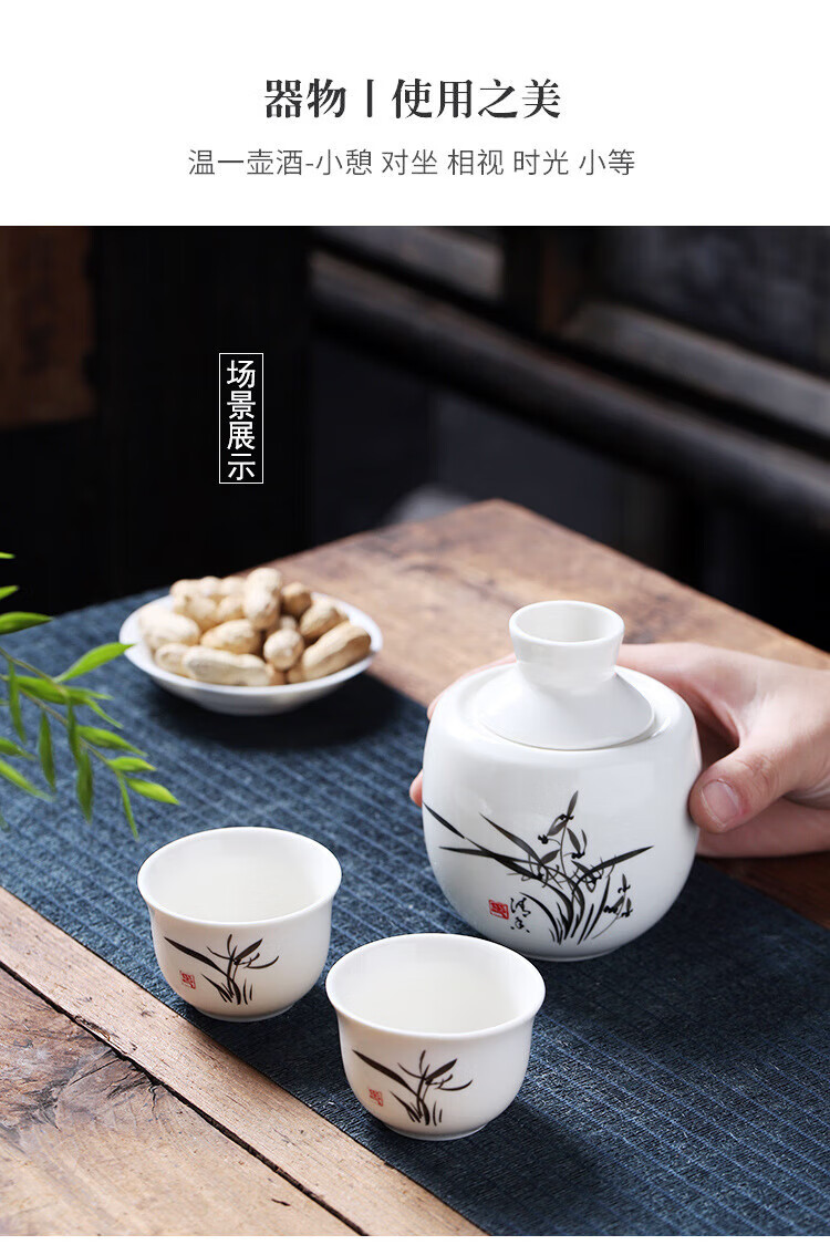 He Jian Gong wine warmer, old-fashioned Chinese-style ceramic hot pot, alcohol stove, heated wine warmer, wine-dividing rice wine cup set, Chinese-style liquor warmer set, 2 liang