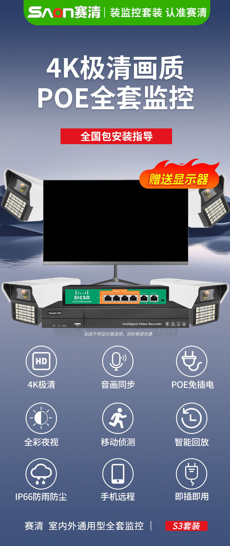 Kezitu surveillance system complete set of security camera wired set equipment HD hard disk video recorder camera POE switch solution comes with monitor Recommended home 30 days all-day loop recording 4k 1