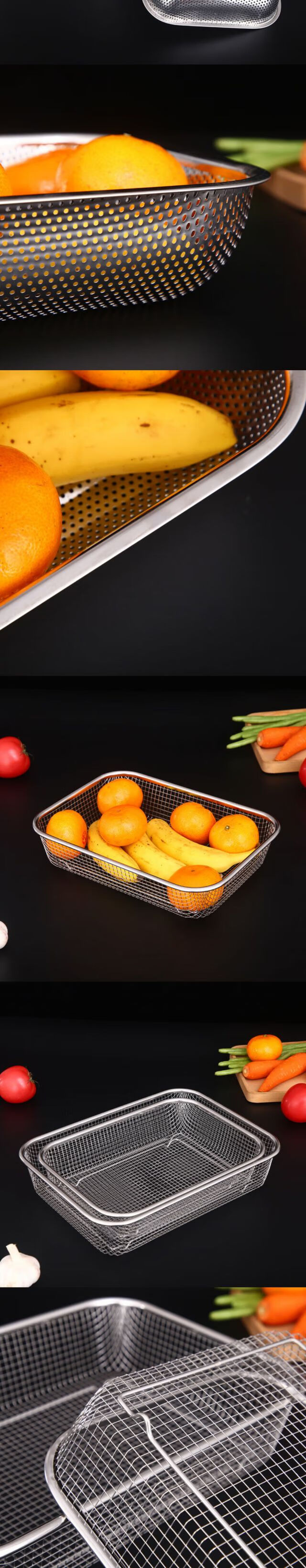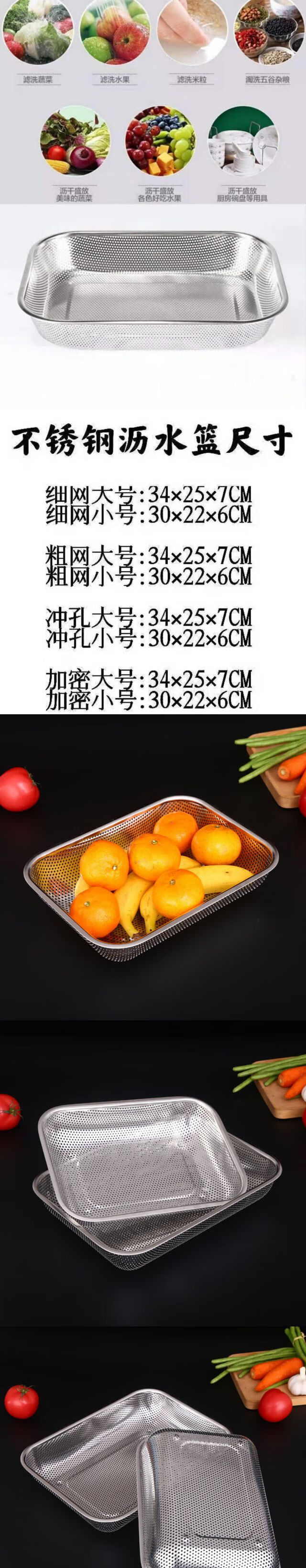 Xuan Ni Shi 304 rectangular 304 stainless steel drain basket bowl rack water control net fruit basket large hole mesh frame for washing vegetables coarse mesh 6MM large basket + tray / filter