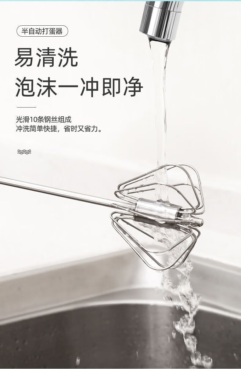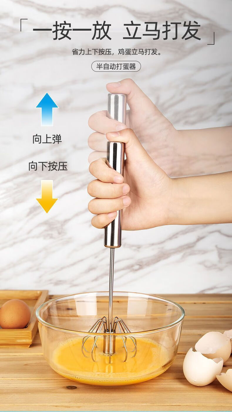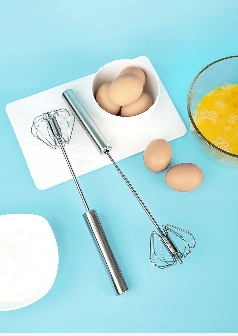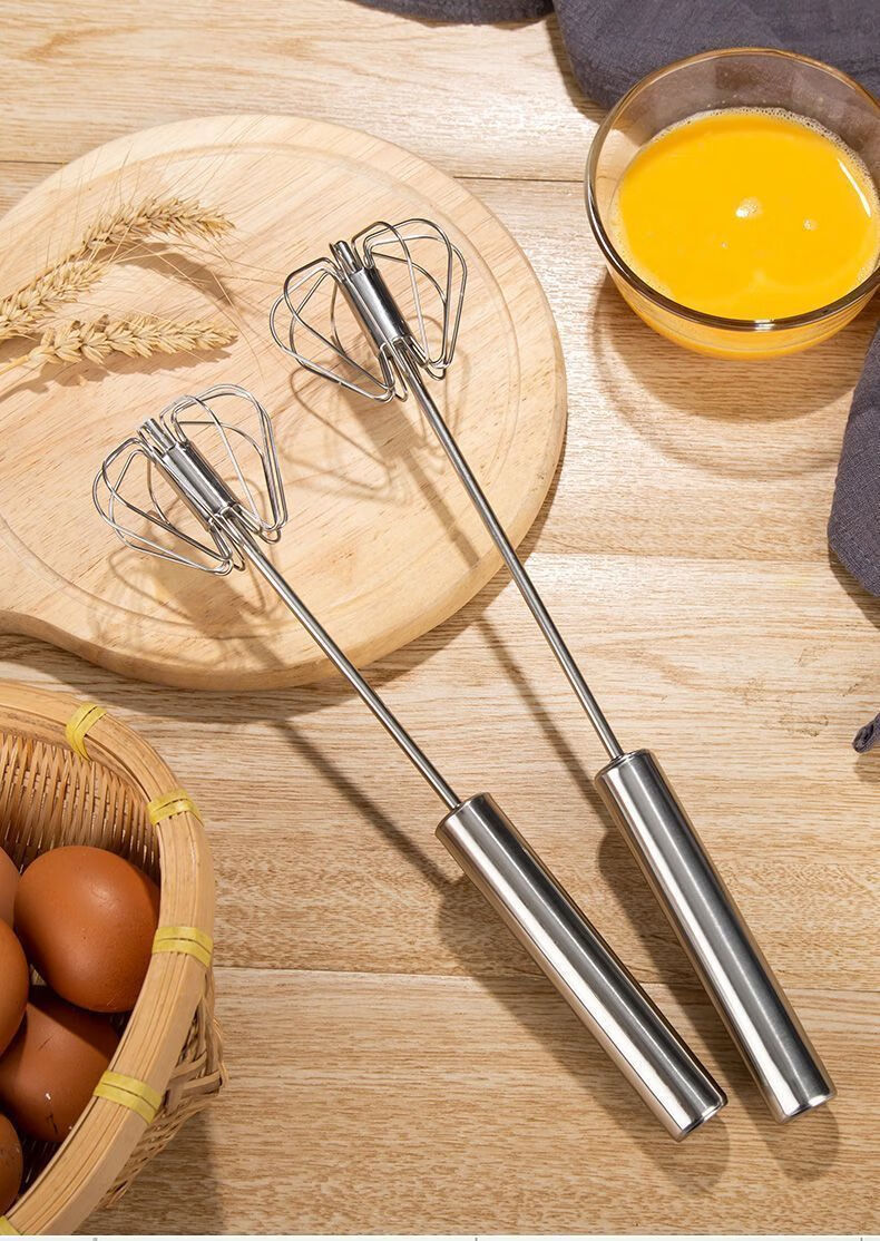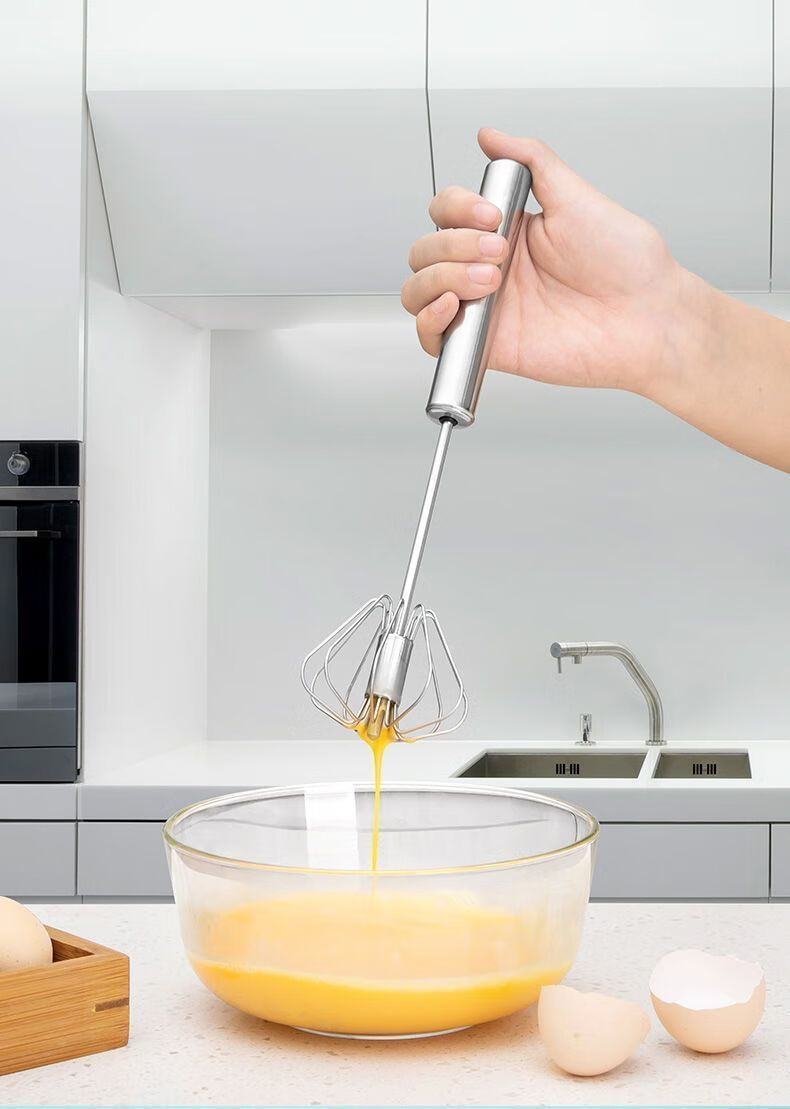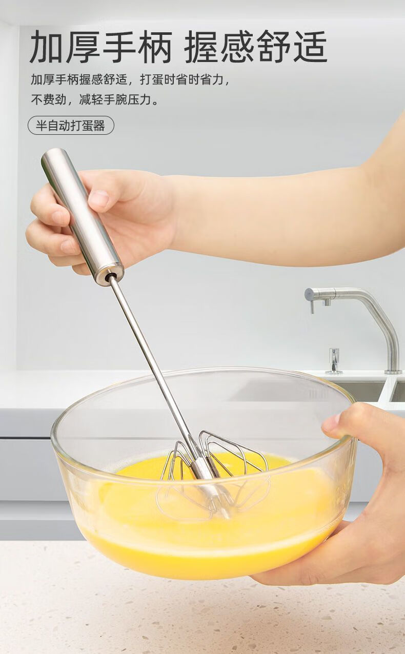 Baichao stainless steel hand-held egg whisk, home whipping semi-automatic cooking utensil, cream stirring egg whisk, reducing wrist pressure - 1 large size