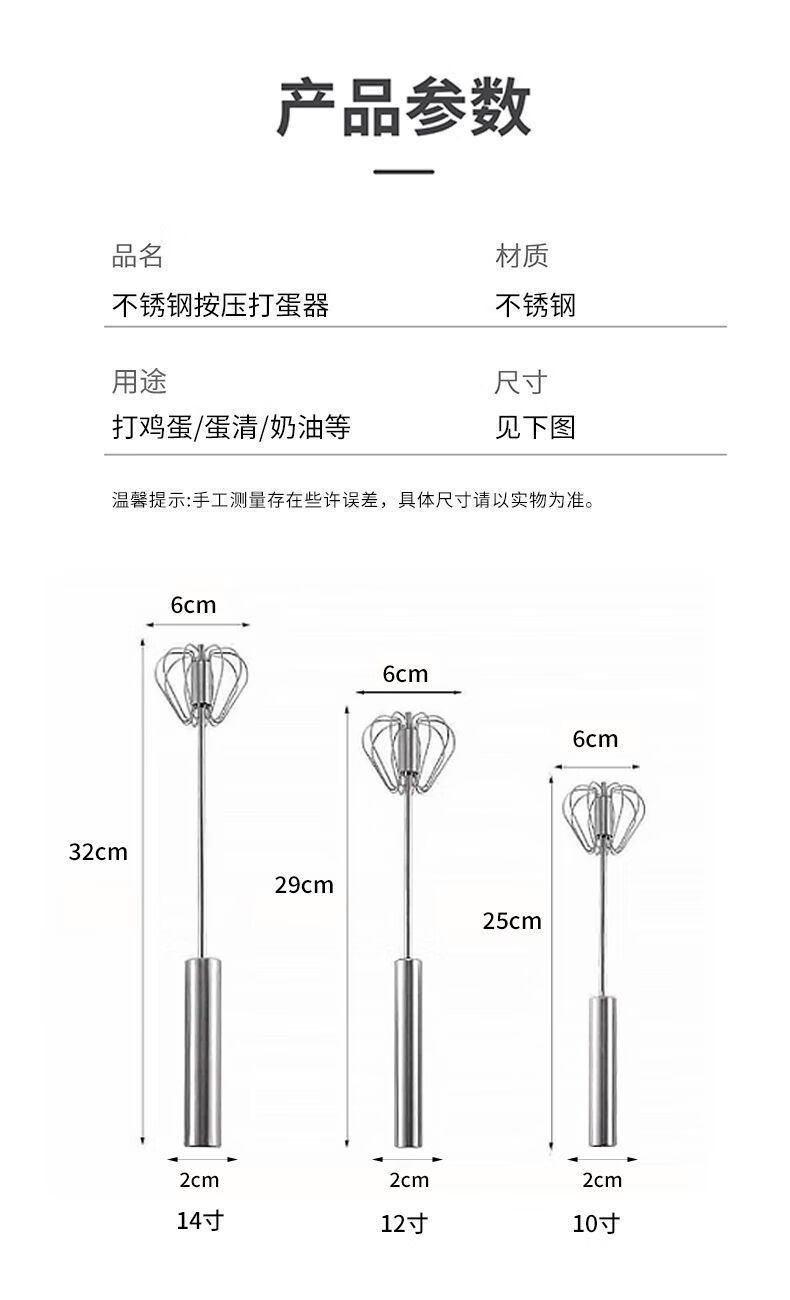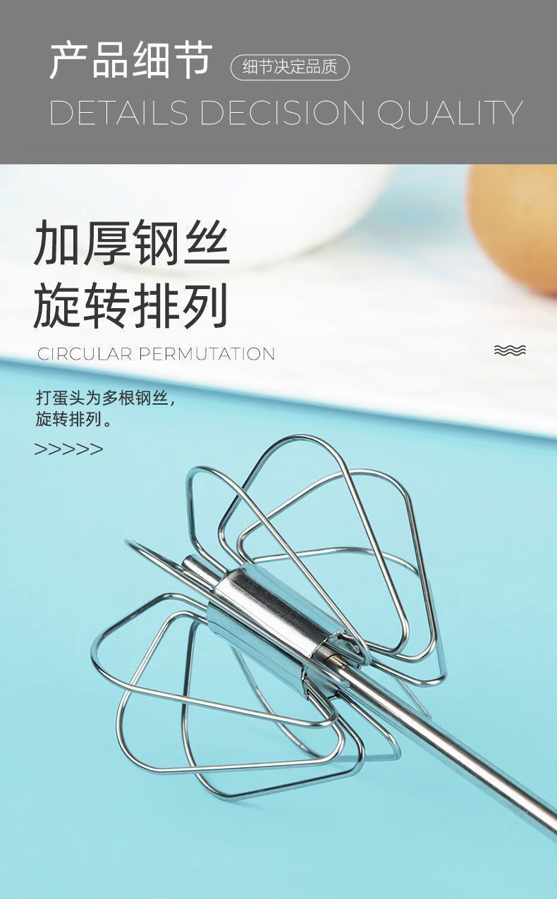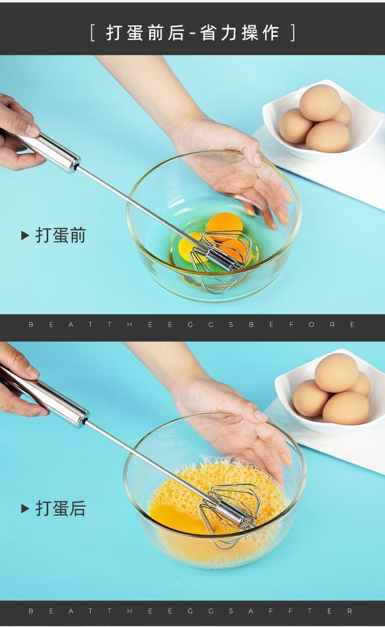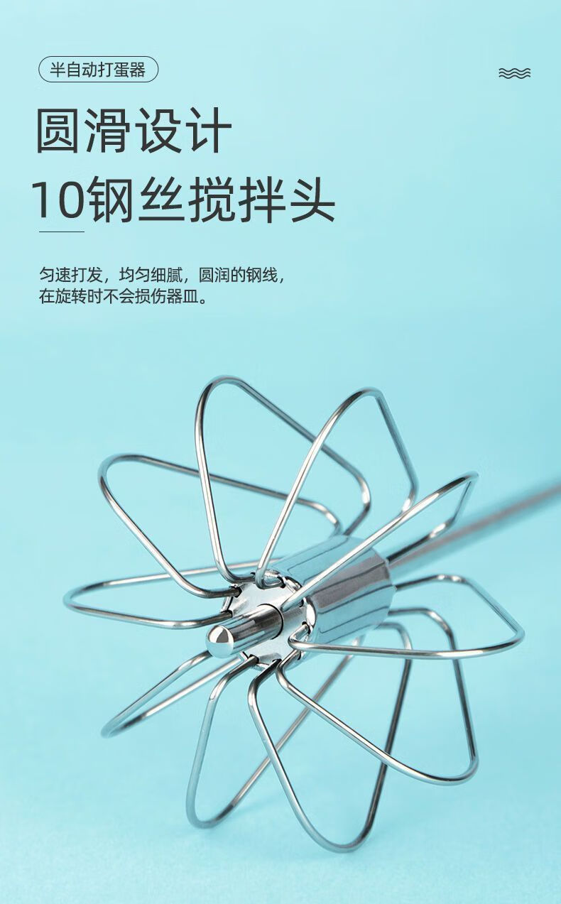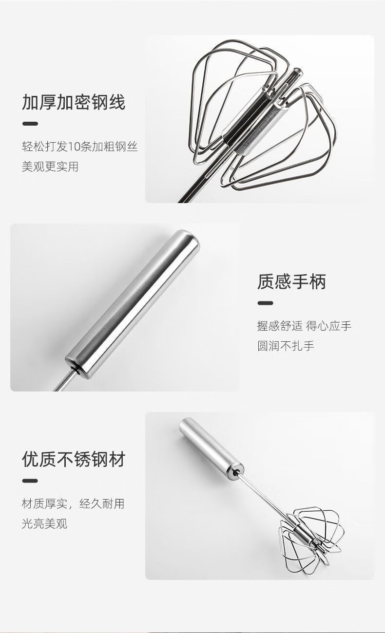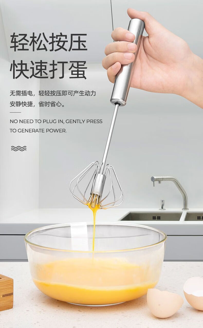Baichao stainless steel hand-held egg whisk, home whipping semi-automatic cooking utensil, cream stirring egg whisk, reducing wrist pressure - 1 large size