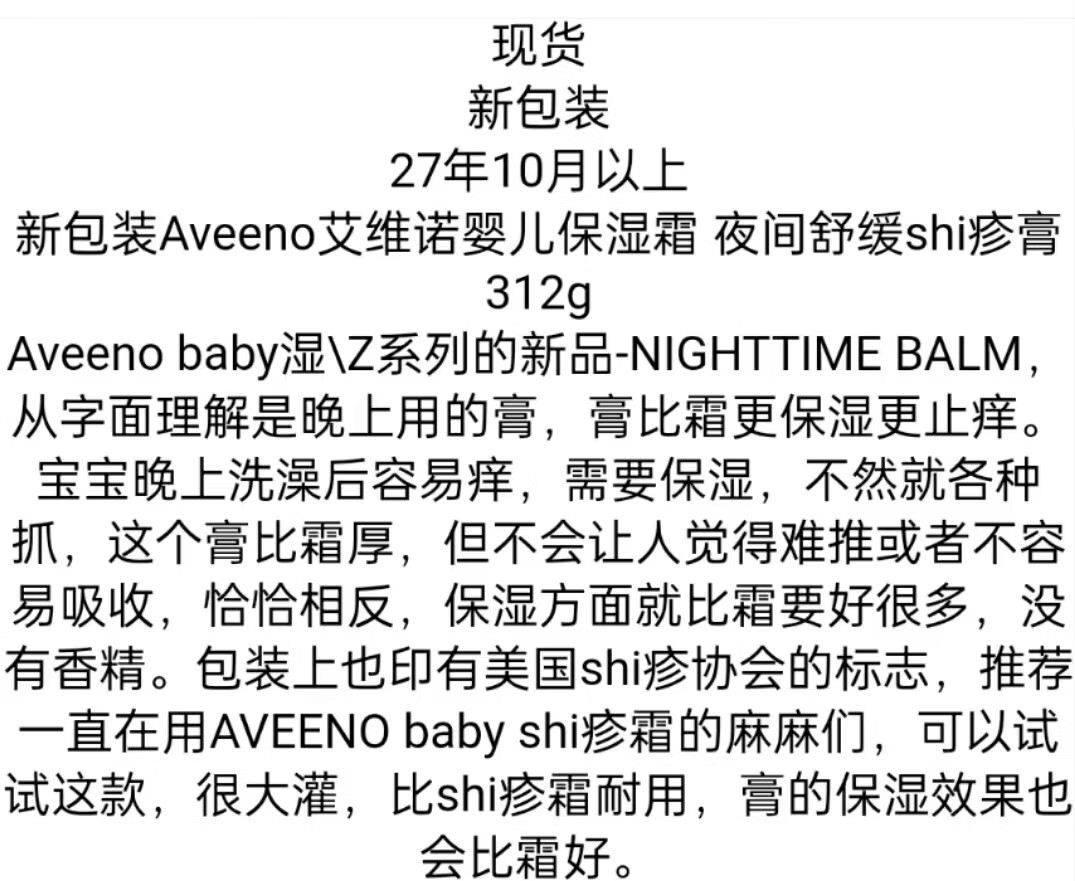 Aveeno American version native version American Aveeno baby moisturizing cream Aveeno emollient cream to relieve rash 312g American version Aveeno oatmeal moisturizing cream