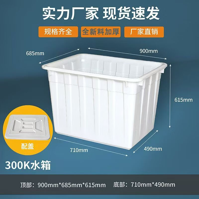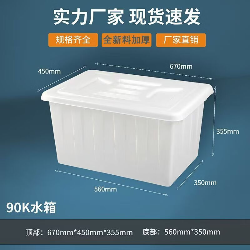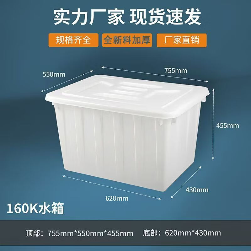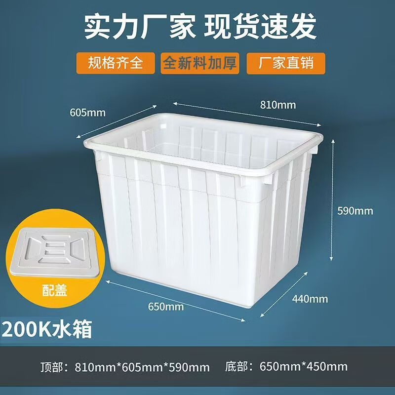 Thickened plastic water tank rectangular clothing factory new material turnover box aquatic product tank large bucket with lid breeding tank 120 water tank with lid white (red and blue optional)