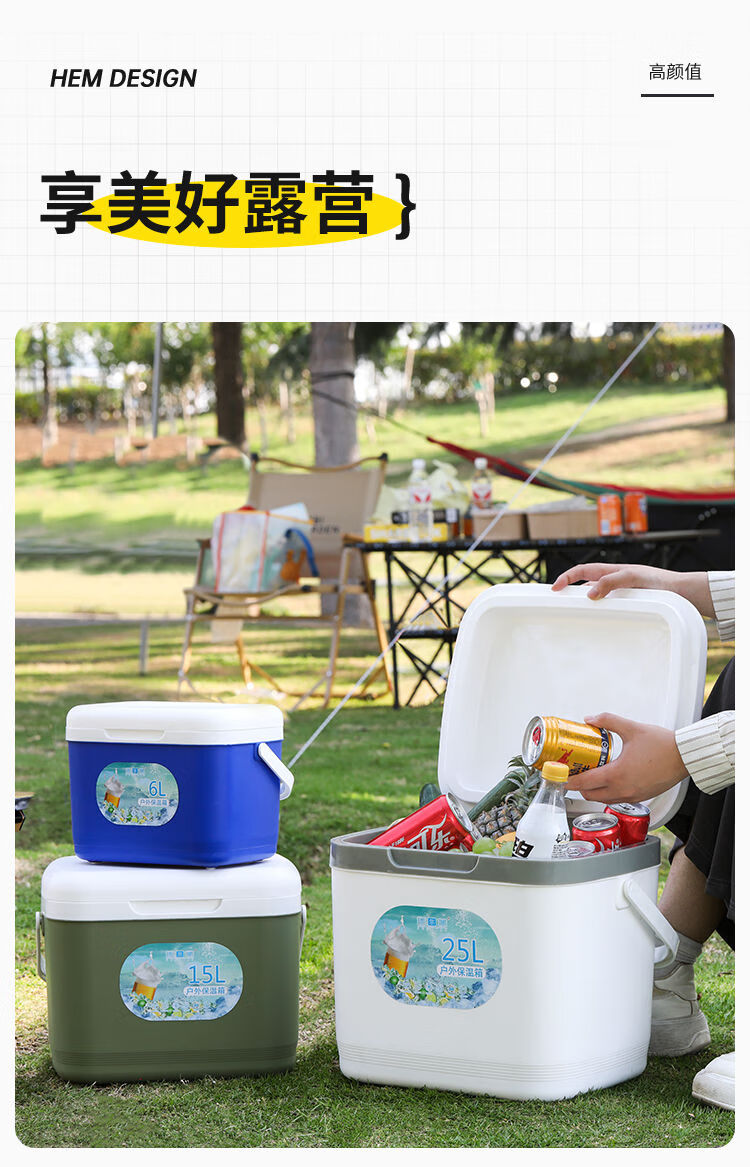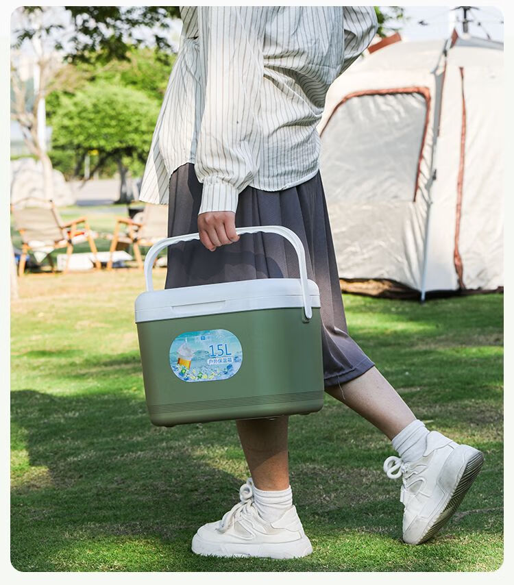 Thickened insulated box, commercial stall, vehicle-mounted, outdoor fresh-keeping, fishing and cold-keeping, portable camping cooler, household ice bucket 15 liters, free 8 ice bags + 2 ice plates, white