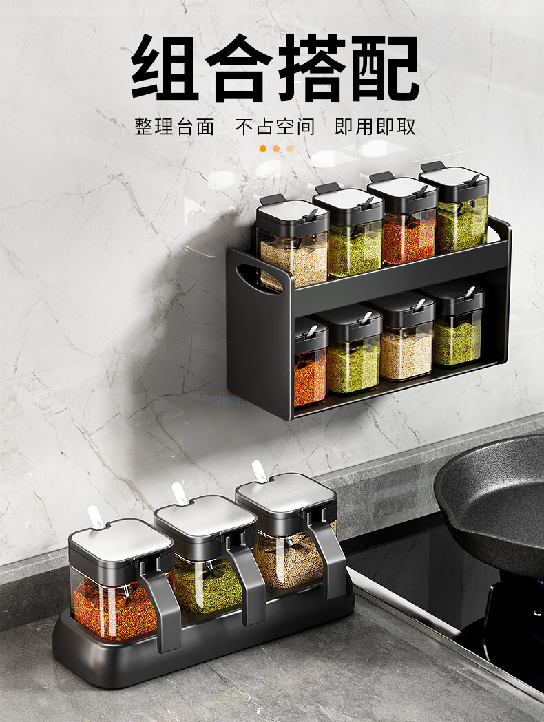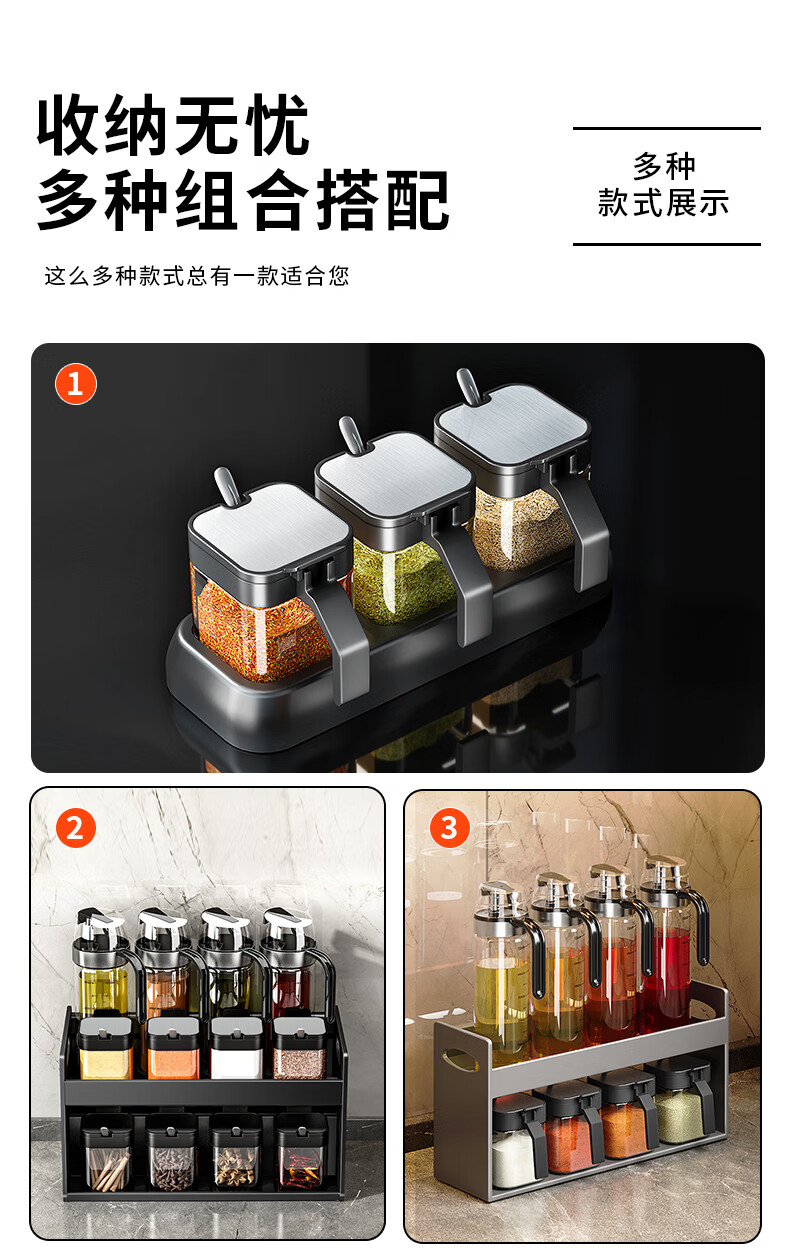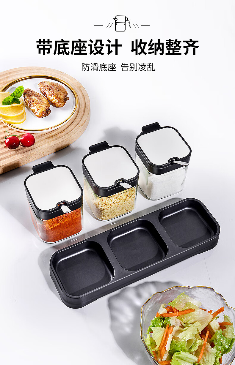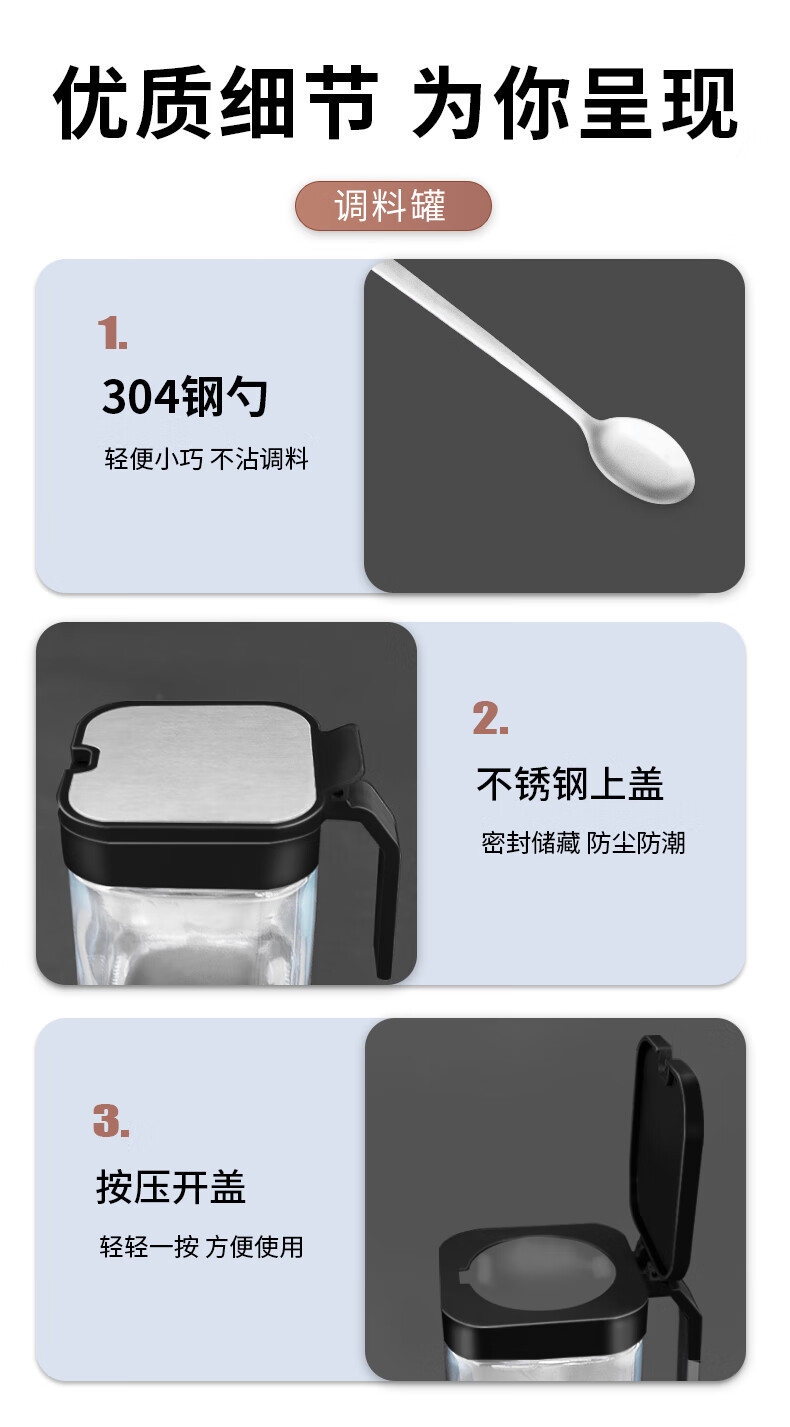 LNGA LANDGRE German imported quality seasoning box seasoning jar salt jar kitchen household salt seasoning jar storage box new stainless steel Dark Night Black Seasoning 9-piece set (3 seasoning jars + 3 oil pots +