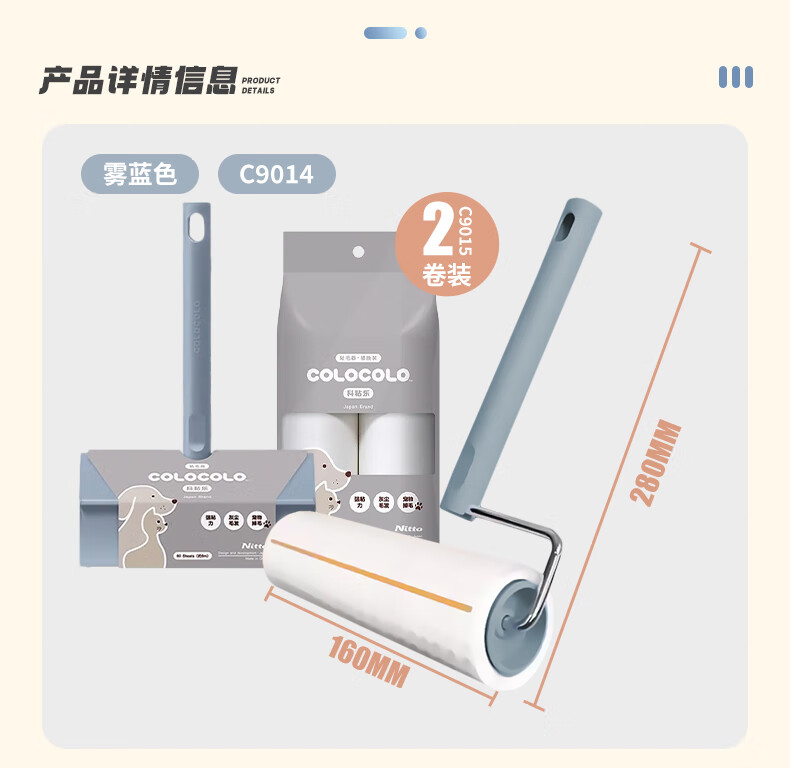 Ke Nianle series colorful all-purpose universal clothing lint remover dust removal lint roller fog blue (C9014)