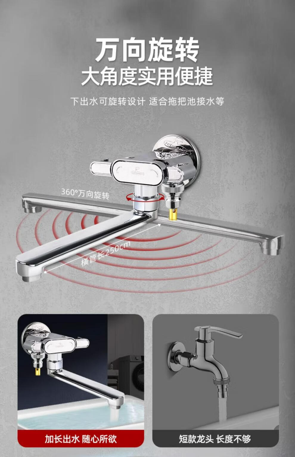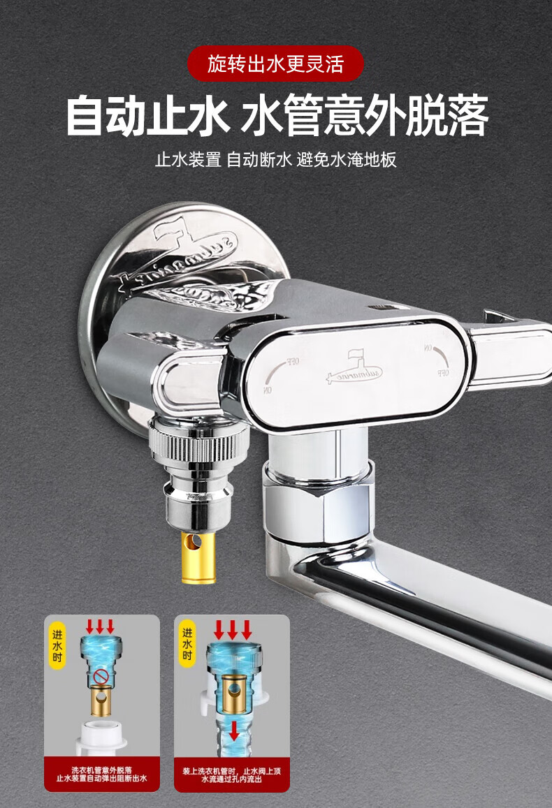 Submarine SUBMARINE balcony mop pool washing machine special elongated faucet with spray gun one in and two out universal rotation dual-use-balcony multi-function spray gun set
