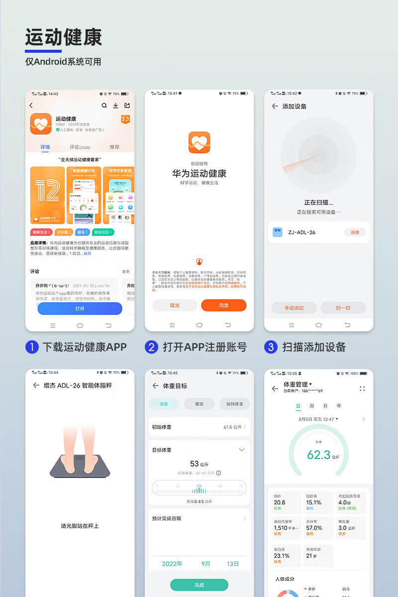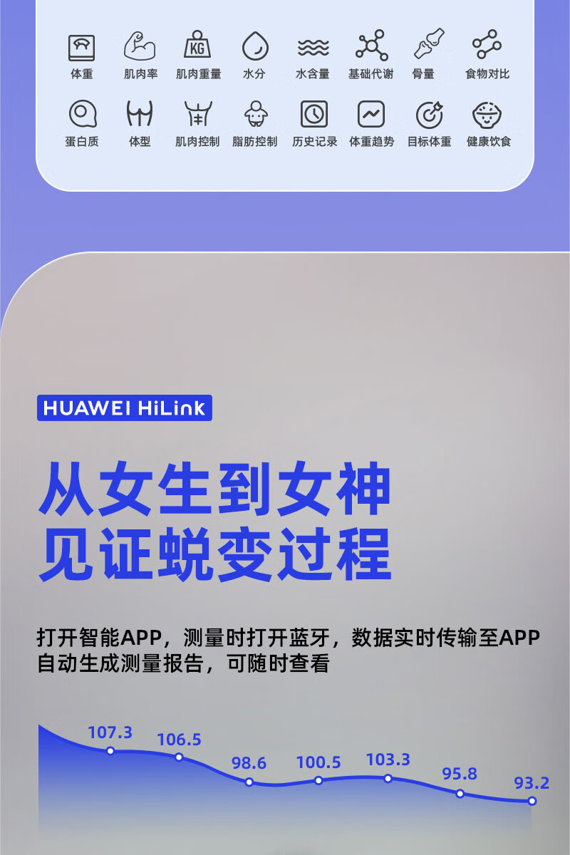 Supports Huawei HiLinK connection, smart body fat scale, electronic scale, human body home weight scale, human body scale, dedicated for weight loss and weighing, HUAWEI eco-certification, battery model - white