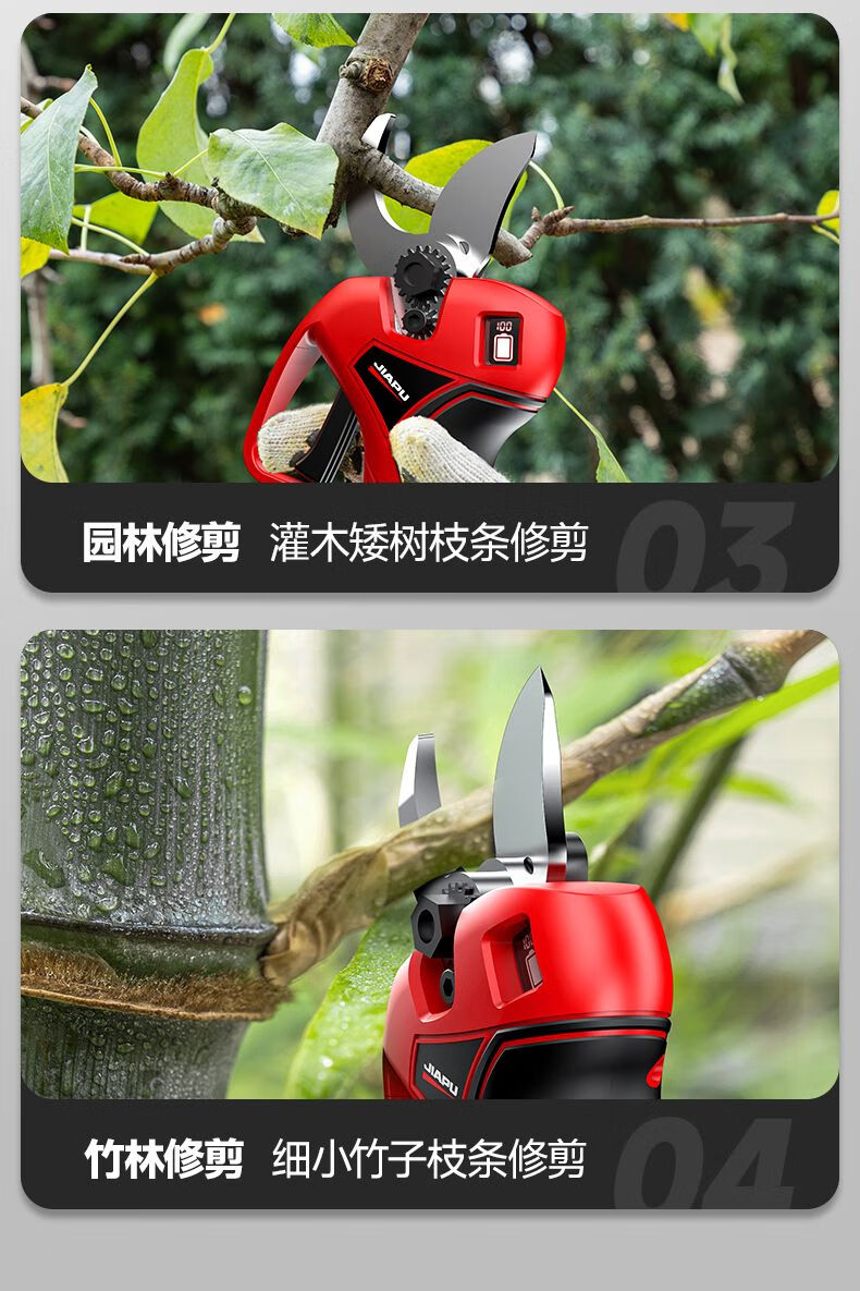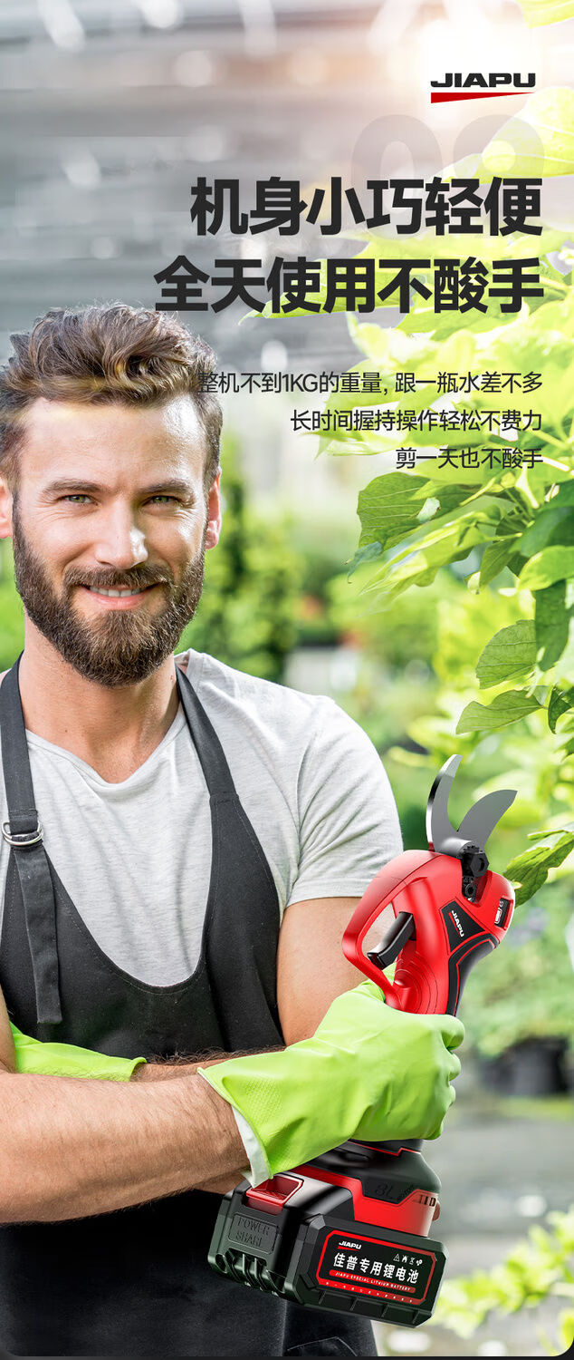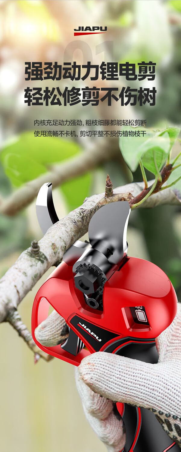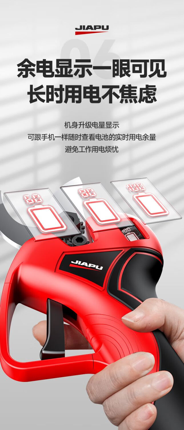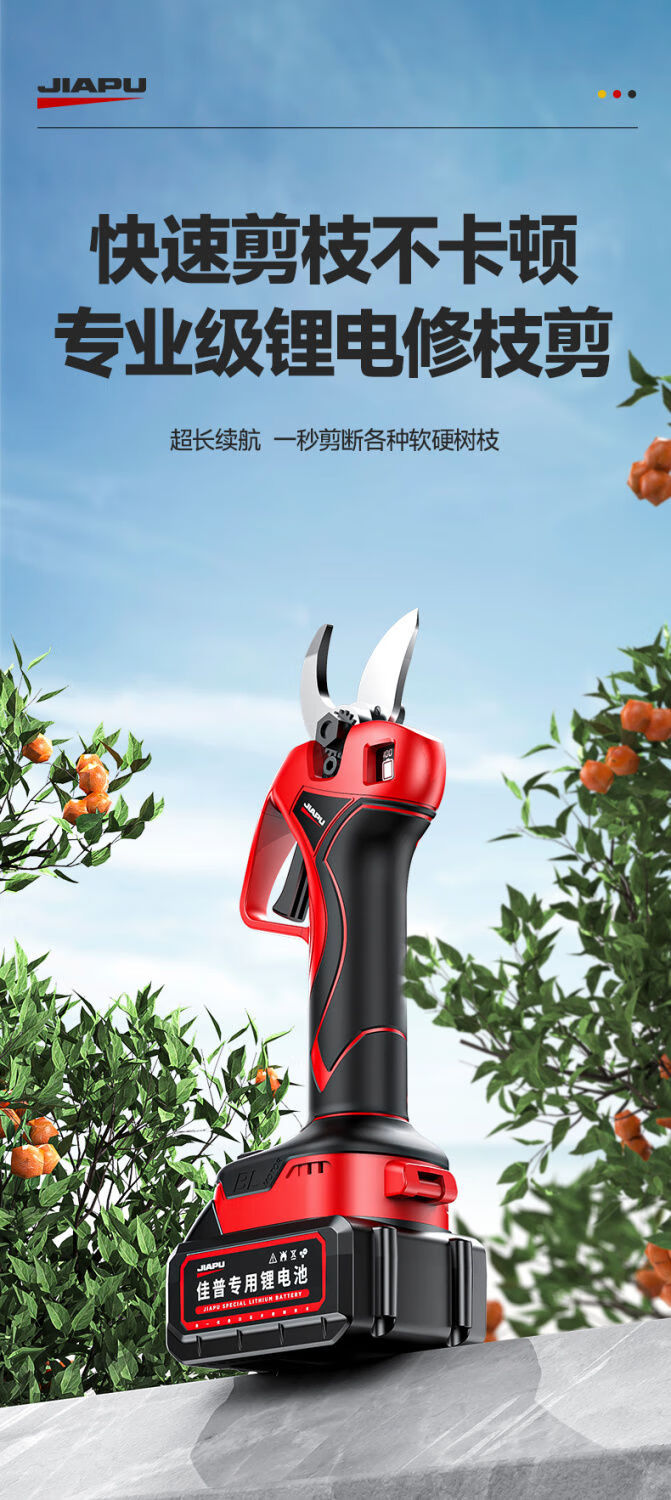 Jiap Electric Pruning Scissors Large Opening Fruit Tree Thick Branch Scissors Lithium Battery Rechargeable Landscaping Trimmer 7.0 Supreme LCD Model One-Power King + Titanium Steel Blade