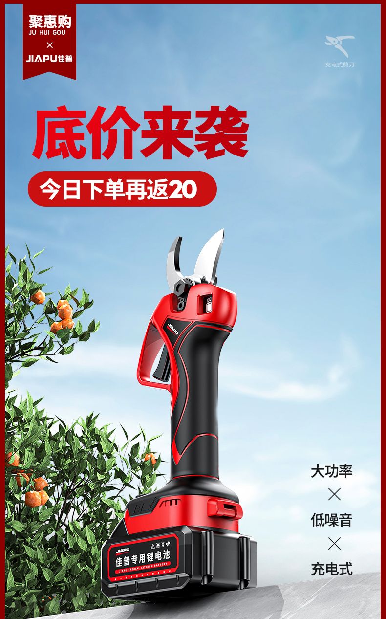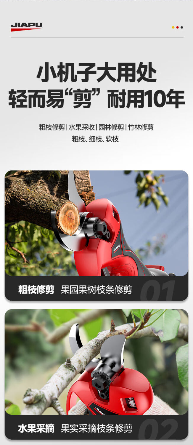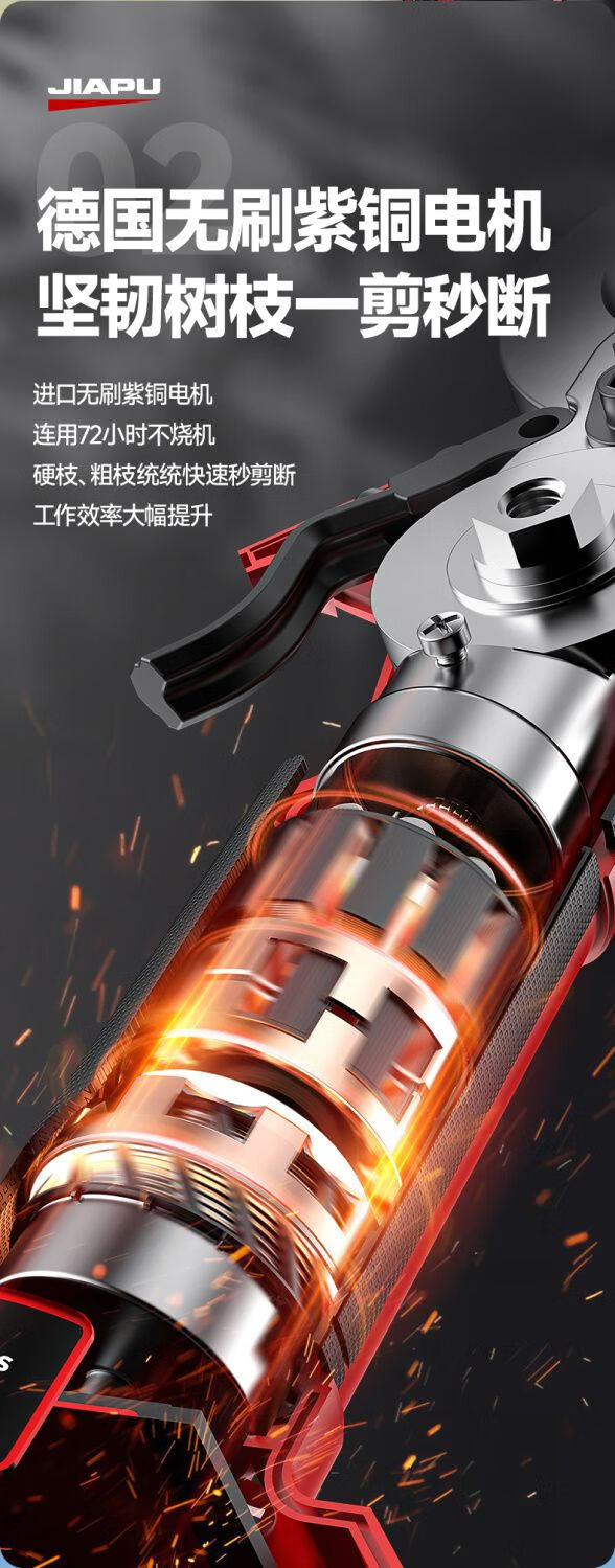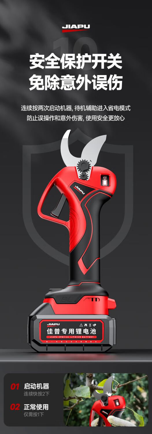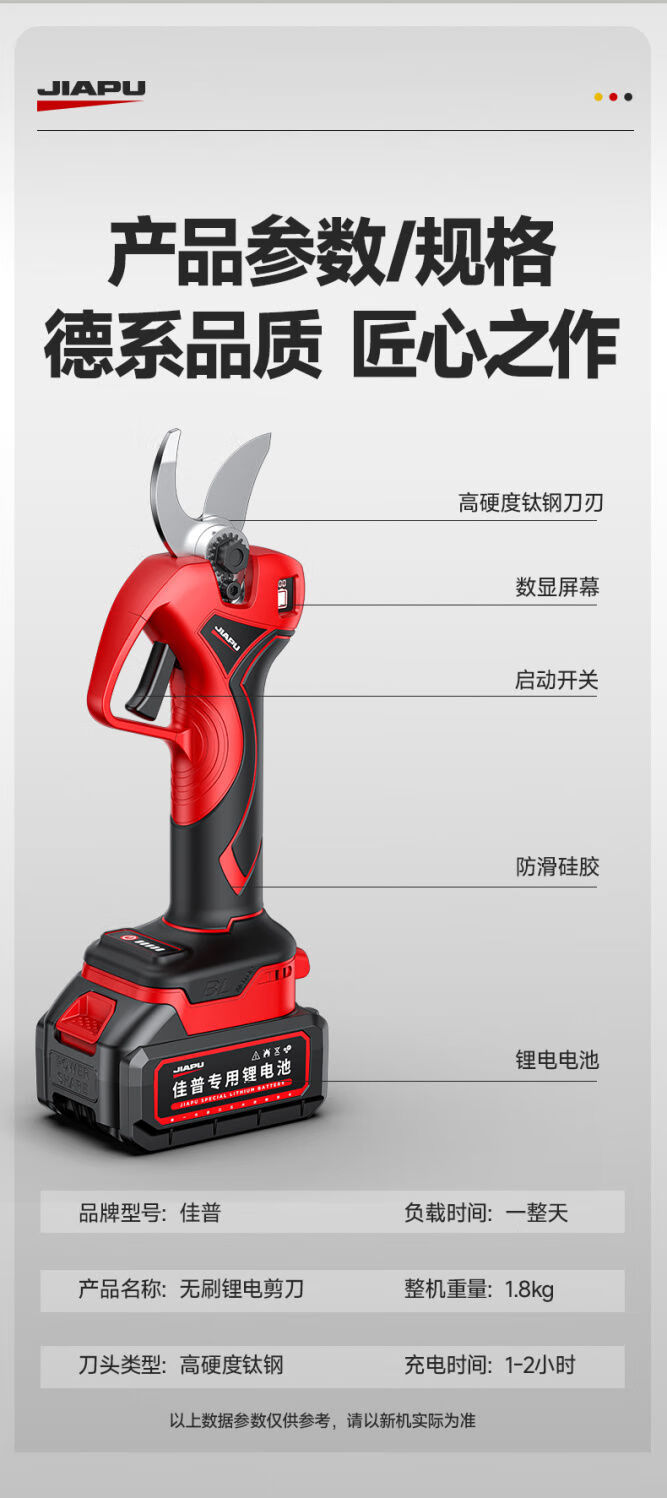 Jiap Electric Pruning Scissors Large Opening Fruit Tree Thick Branch Scissors Lithium Battery Rechargeable Landscaping Trimmer 7.0 Supreme LCD Model One-Power King + Titanium Steel Blade