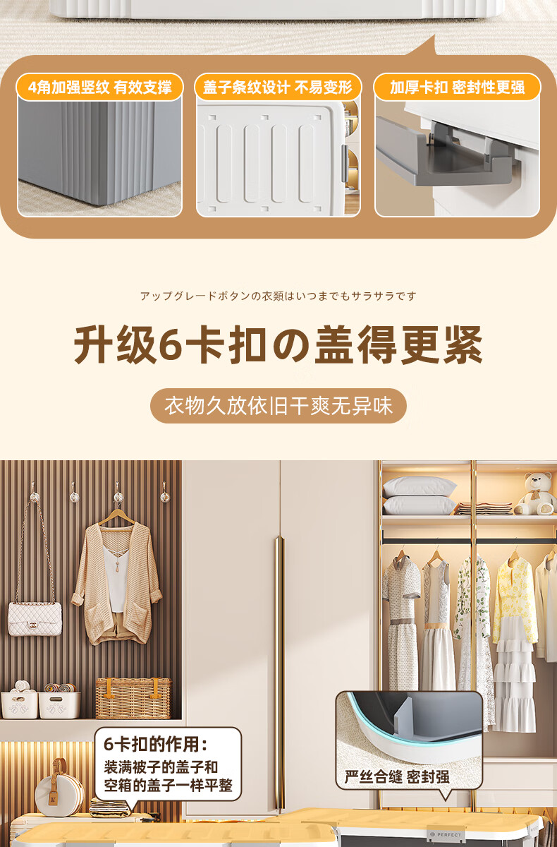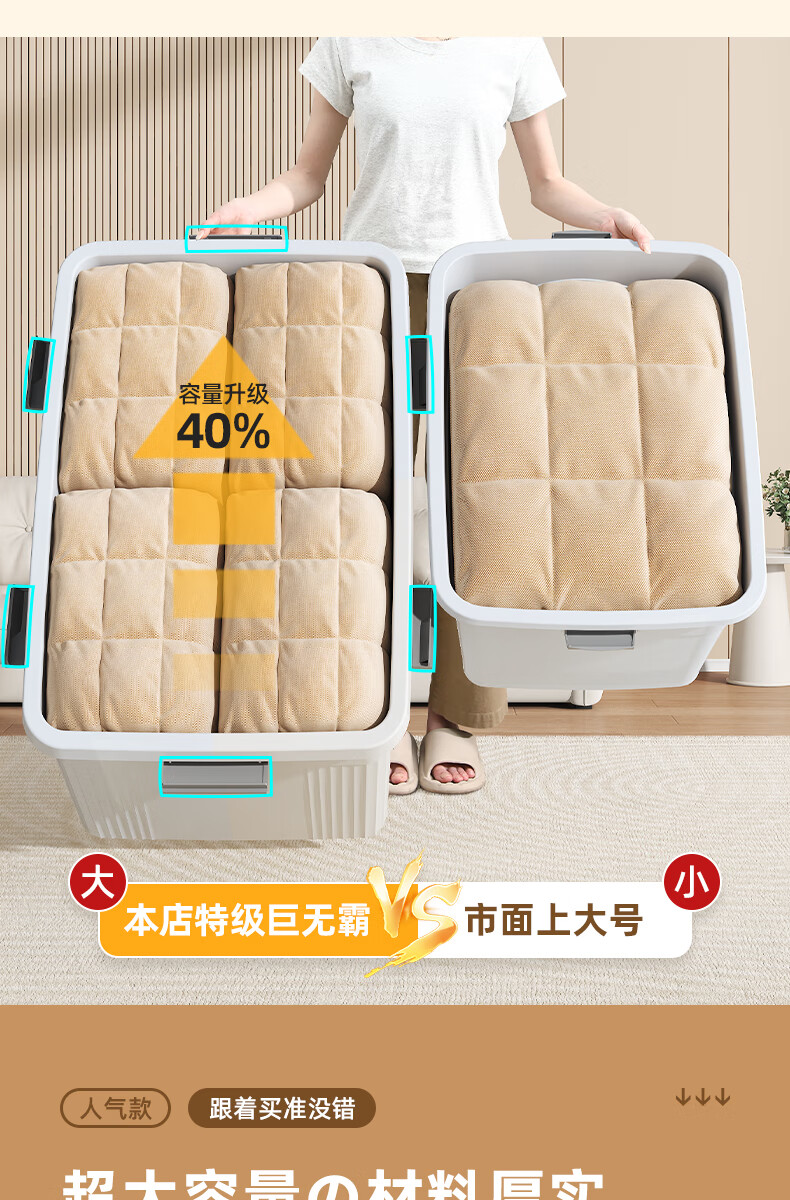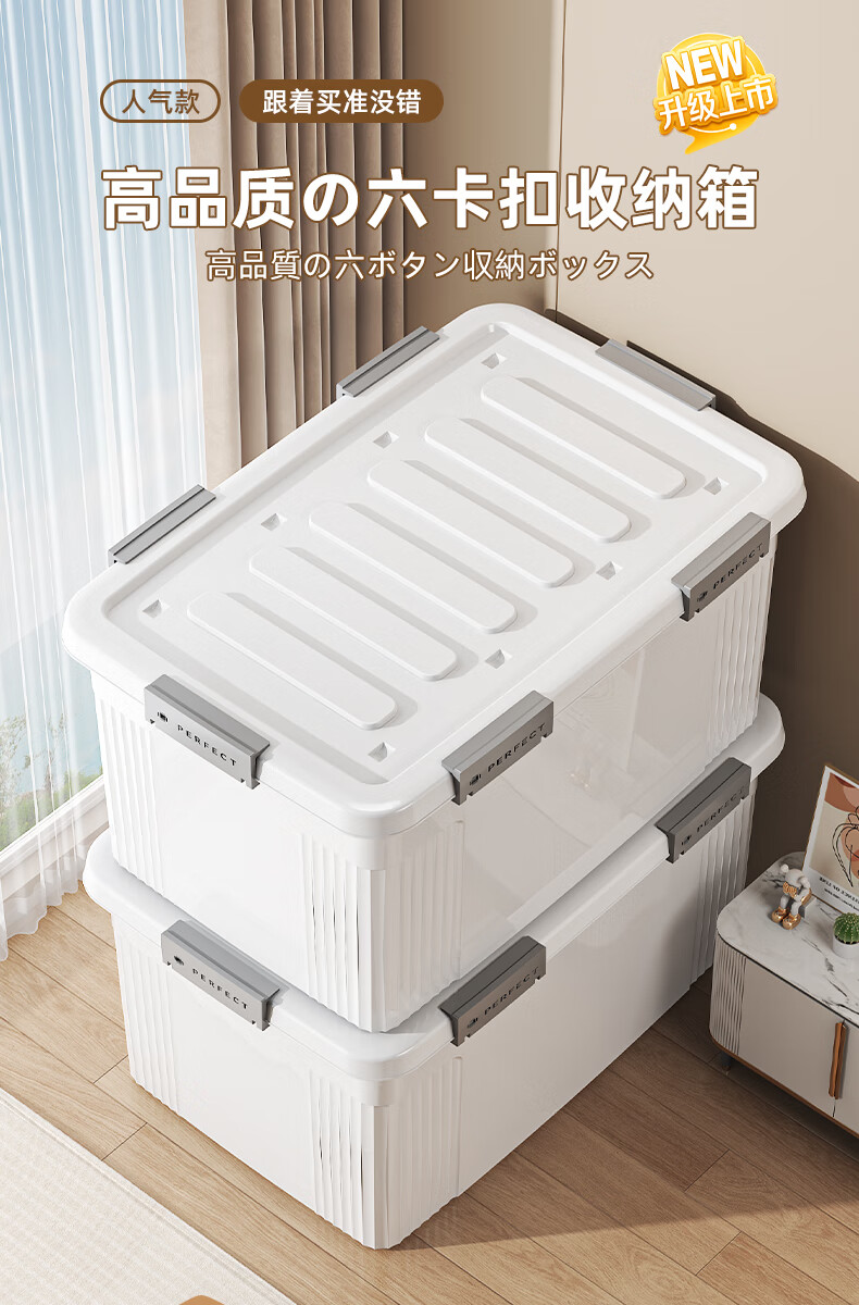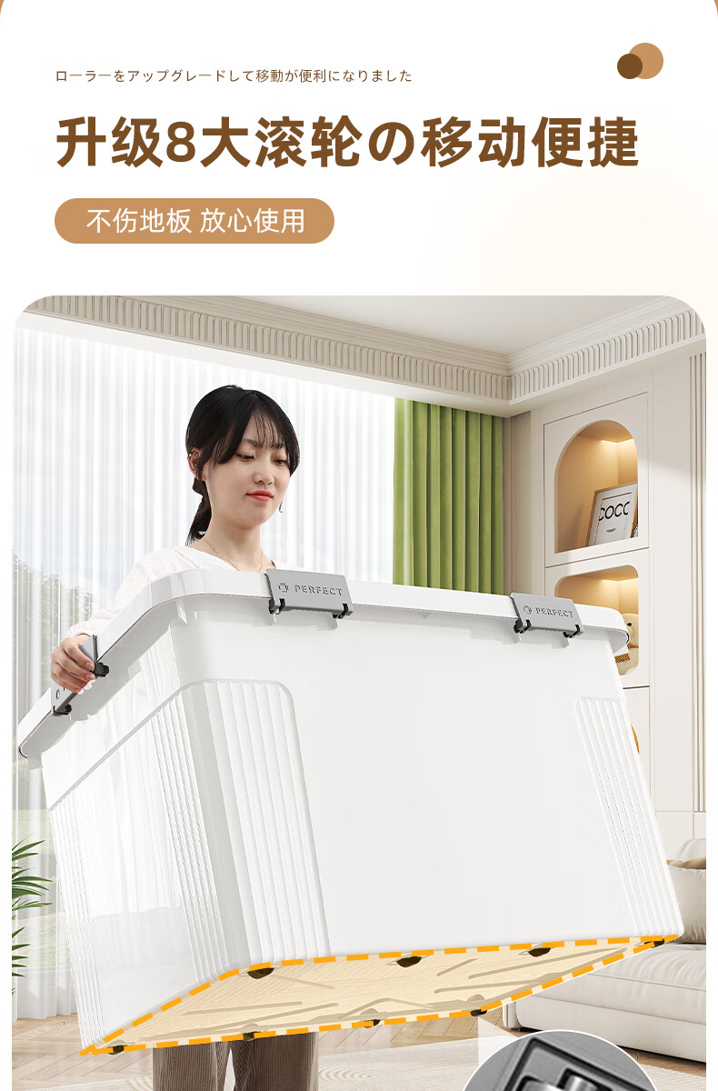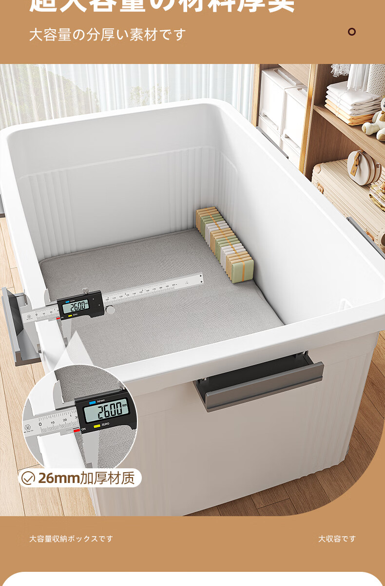 Younai storage box large capacity clothing storage box thickened moving box quilt storage box household extra large plastic pulley super giant cream white 84*60.5*51cm 6 buckles 8 wheels