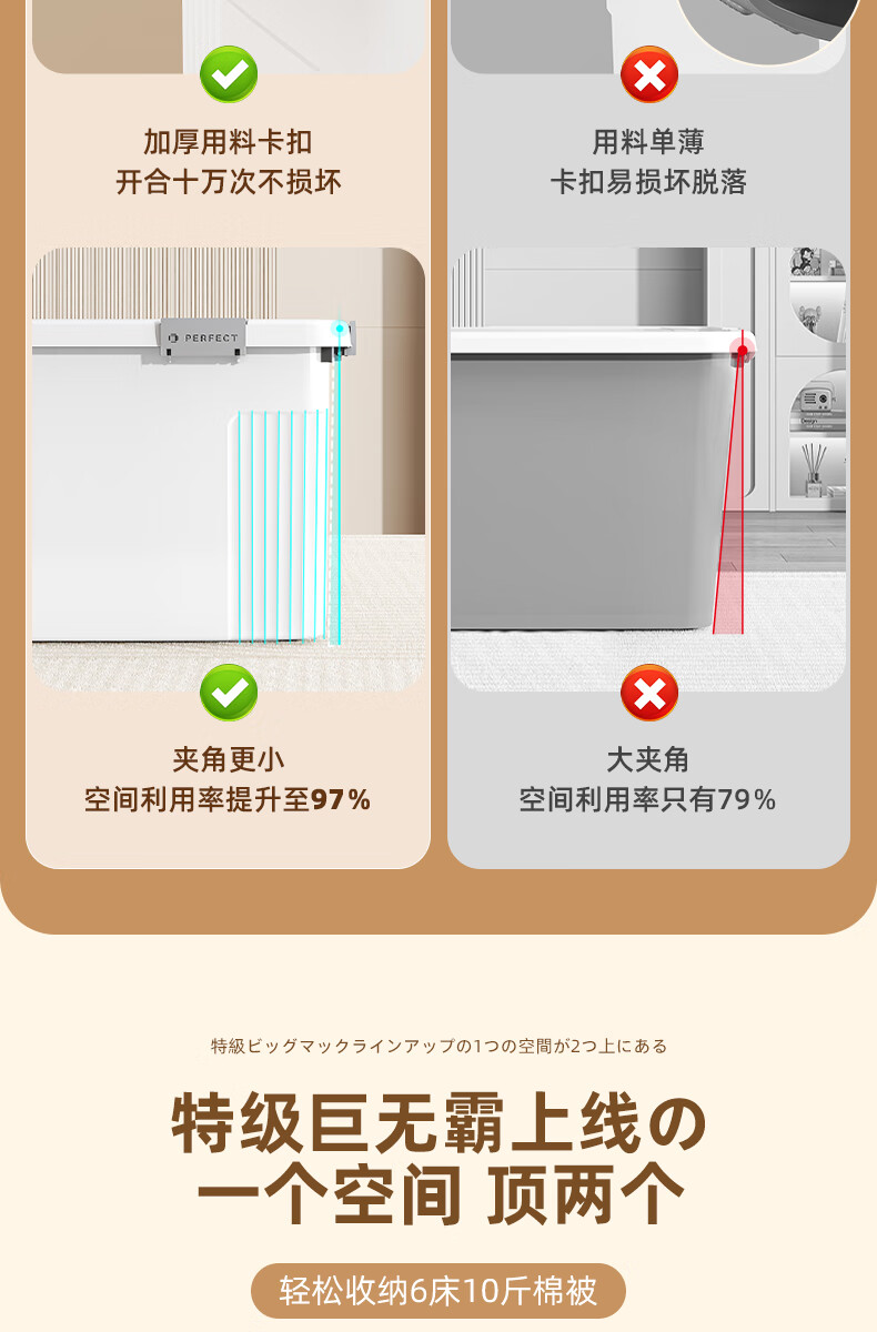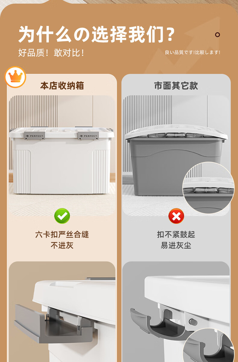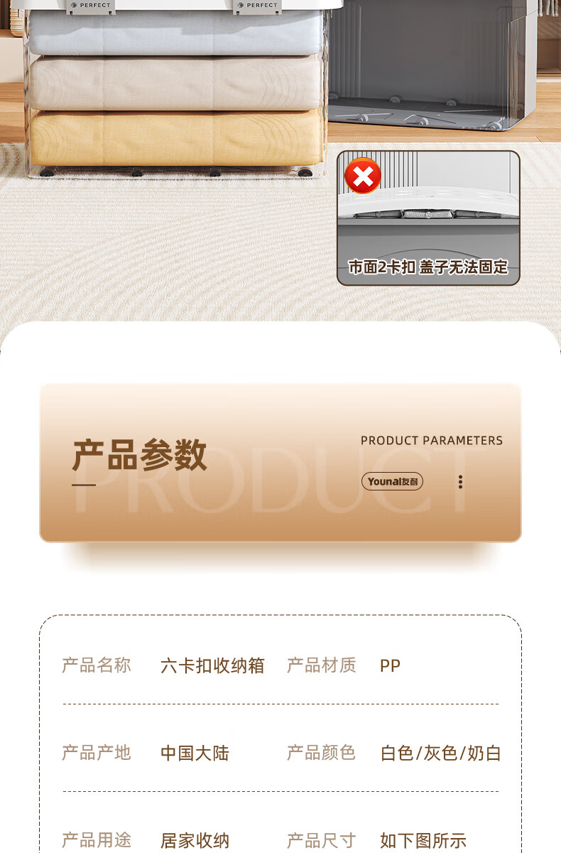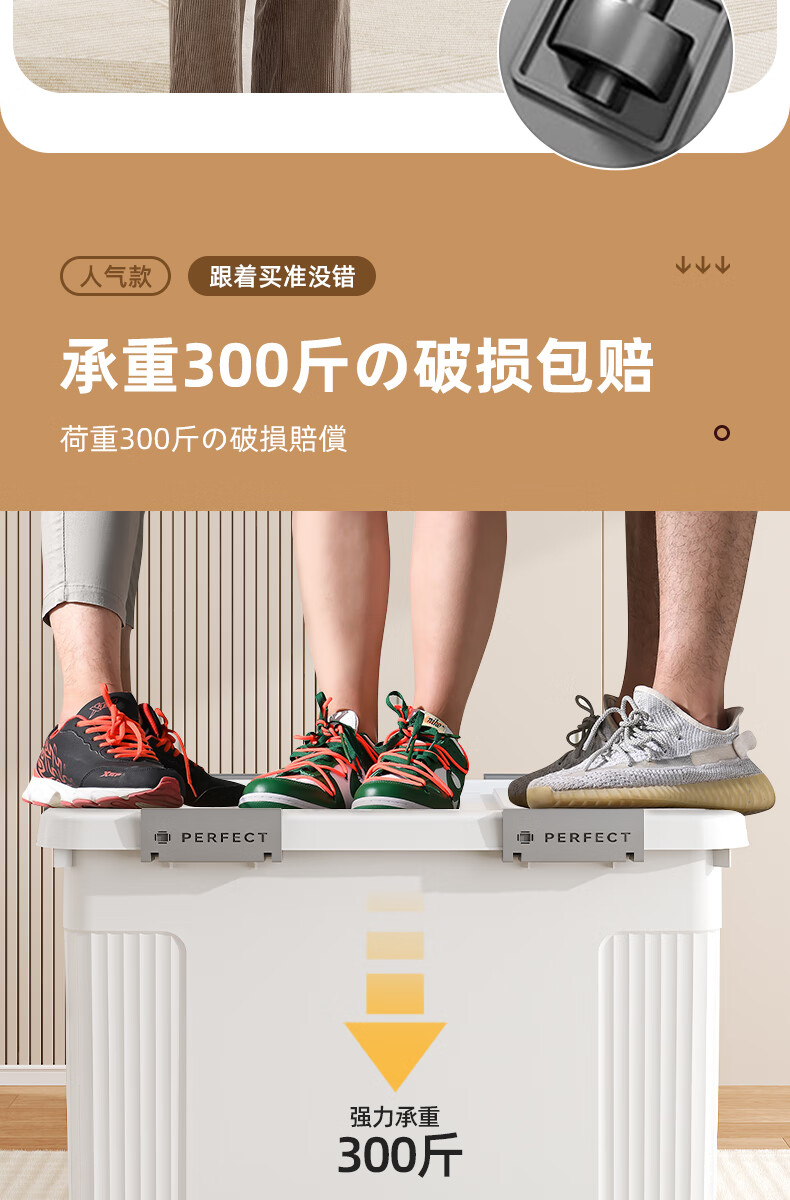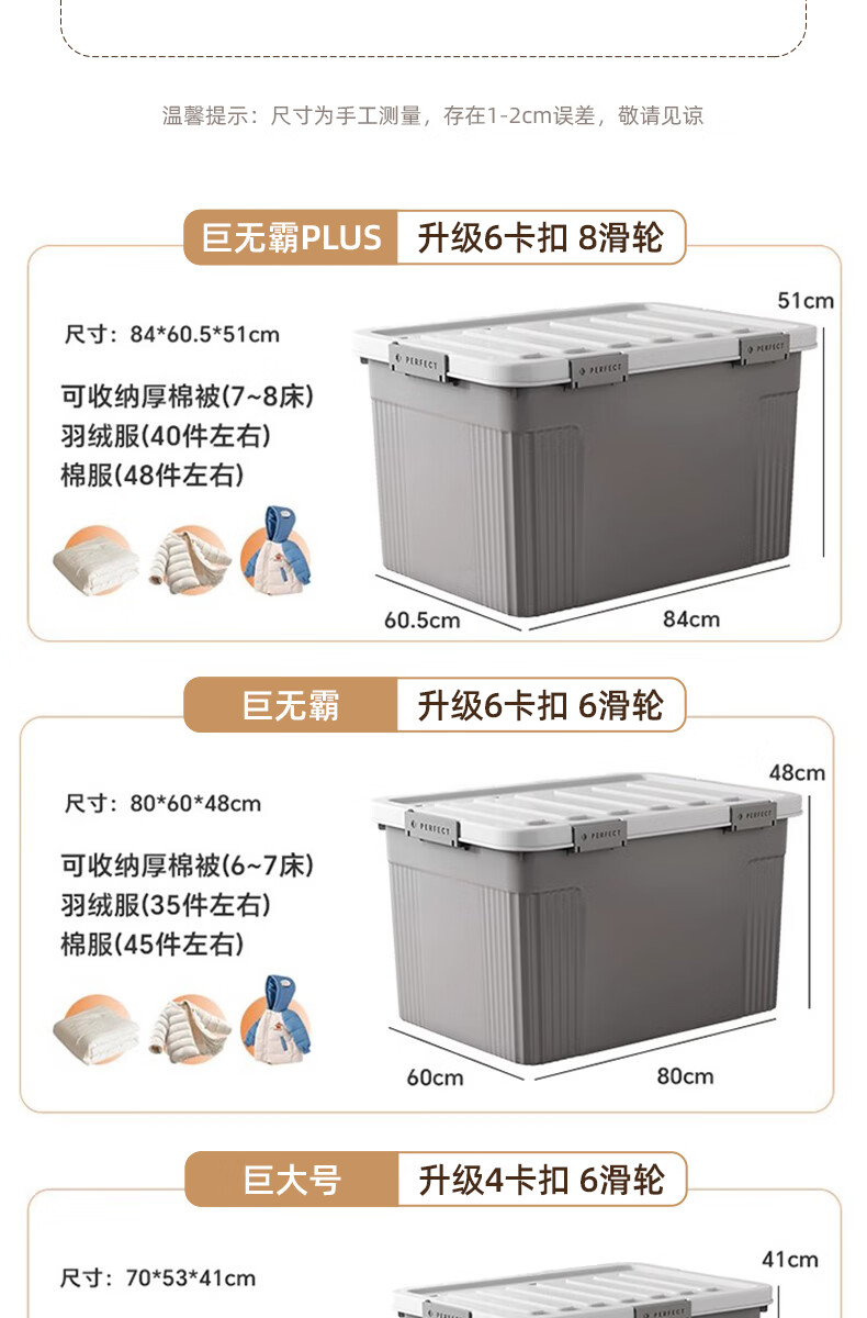 Younai storage box large capacity clothing storage box thickened moving box quilt storage box household extra large plastic pulley super giant cream white 84*60.5*51cm 6 buckles 8 wheels