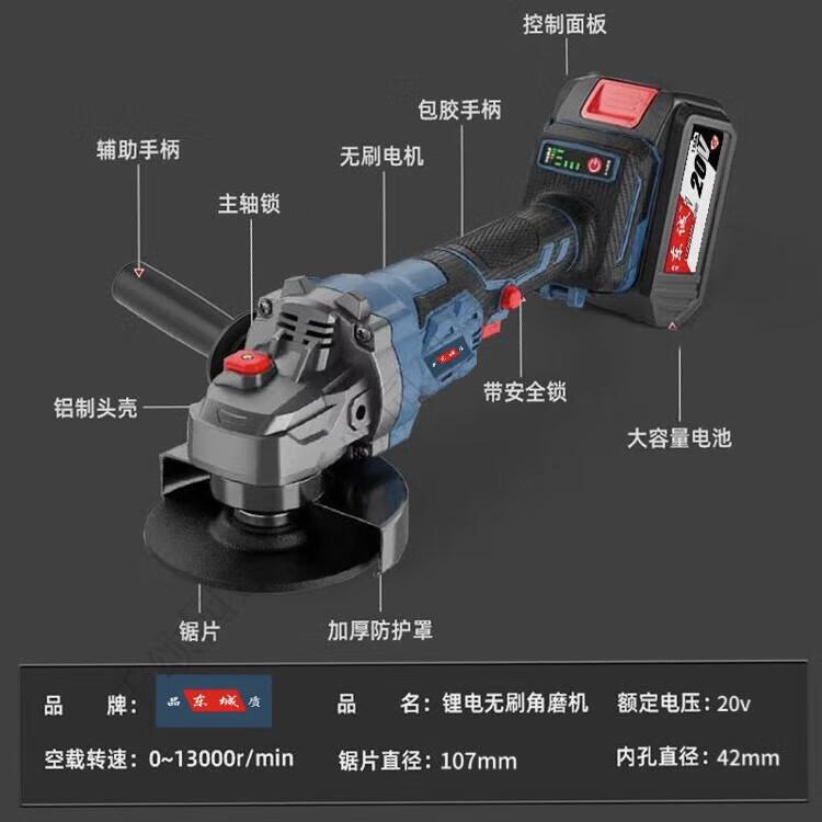 Dongcheng Dongcheng's angle grinder lithium battery brushless cutting machine grinding and polishing machine rechargeable hand grinder wireless grinder 4.0AH One battery and one charge Standard configuration - no saw blade