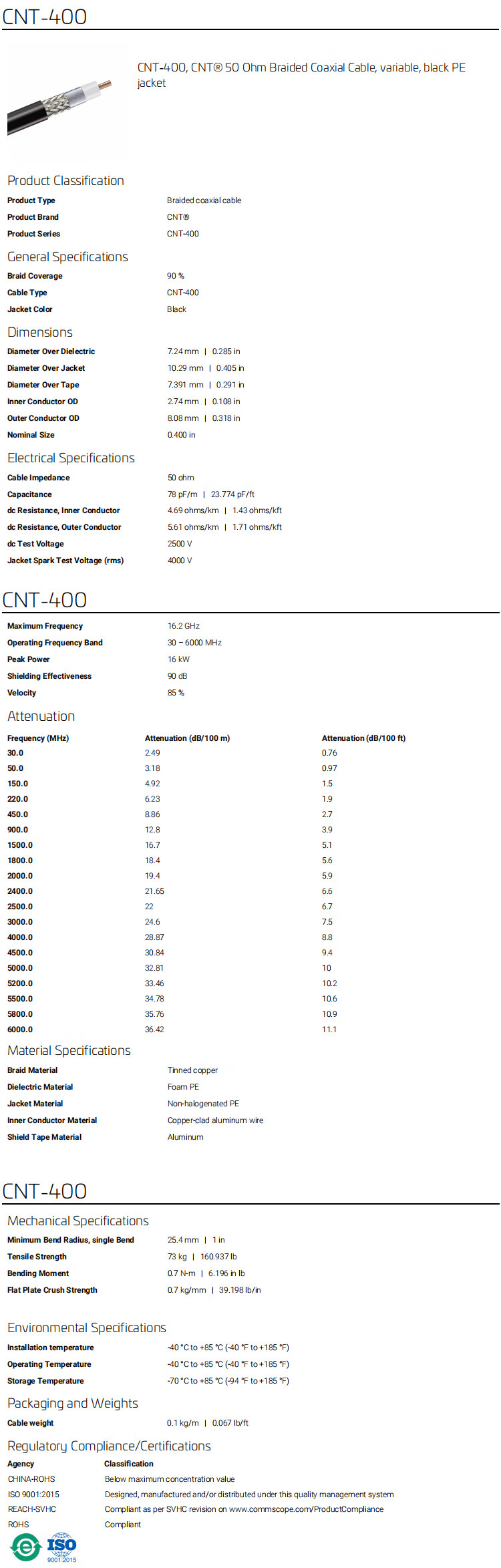 Oriental Xupu Andrew CNT400 low-loss connecting cable N-J/SMA-JW N-JW N bend male to SMA bend male 3G CNT400-N-J/SMA-JW 7m