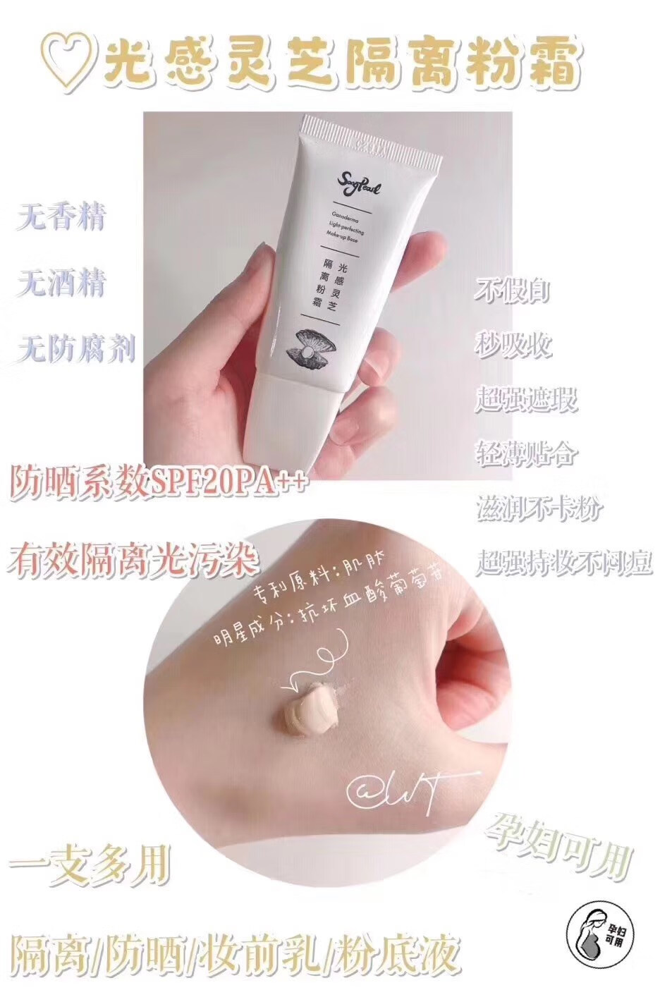 Ode to Pearls Official Ode to Pearls Illuminating Ganoderma Isolating Powder Cream Whitening Concealer Sunscreen Maternity Boosting Foundation Natural Color