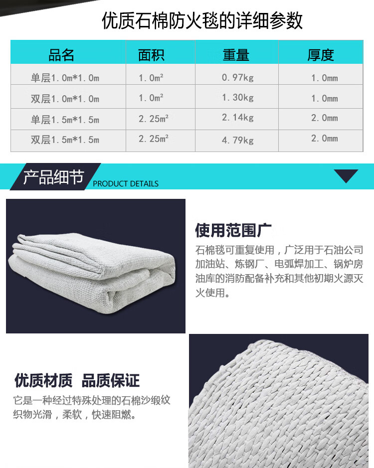 Asbestos fire blanket 1.5m*1.5m fire certified gas station double layer thickened national standard fire blanket industrial felt Single layer asbestos blanket 1.5m*1.5m (thickened) with edge