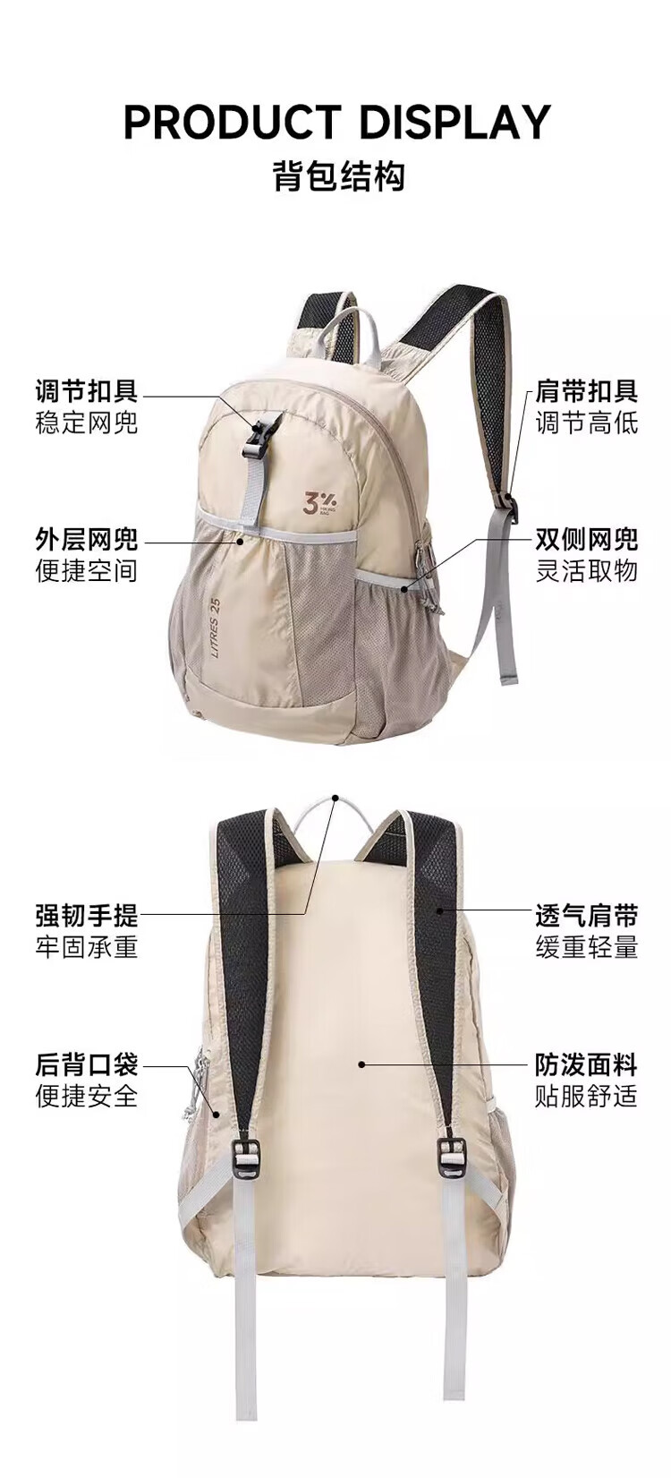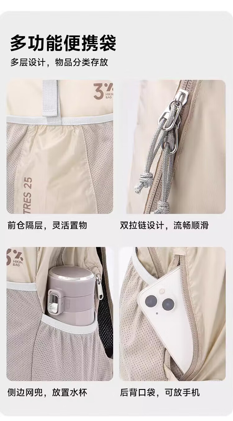 Fan Shengyu Mountaineering Bag Travel Bag Outdoor Foldable Backpack Men's and Women's School Bag Mountaineering Equipment Professional Lightweight Backpack Hiking Lightweight Foldable Mountaineering Bag Khaki