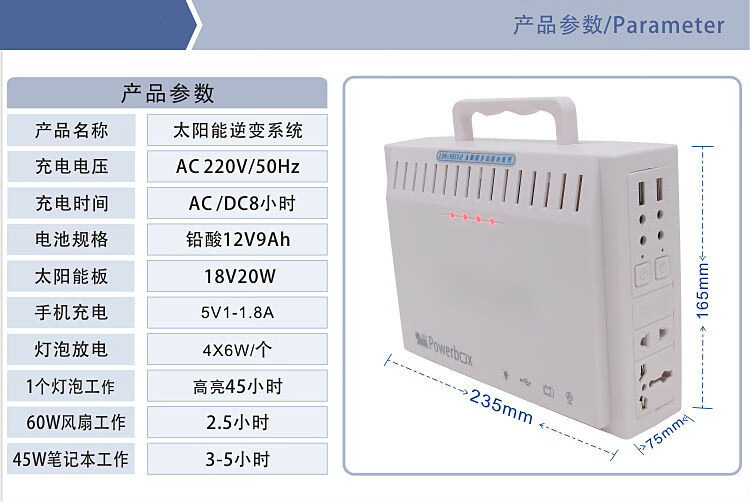 Fang Xiaotai solar generator home 220V with fan camera 4 bulbs rechargeable LM-9012 official standard upgrade 120W