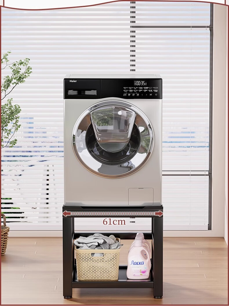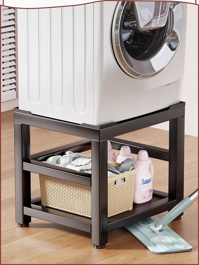 Wooden grid small washing machine base bathroom small heightening rack underwear mini rack floor pad height shelf black rack + blackboard double layer model