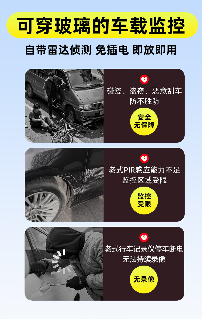 Coolpad car camera parking monitoring 24-hour mobile phone remote high-definition night vision wireless plug-in-free compact car monitor 4G radar version + free 1-year data + plug-in-free + no network available