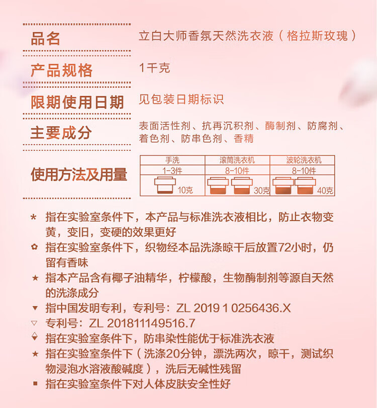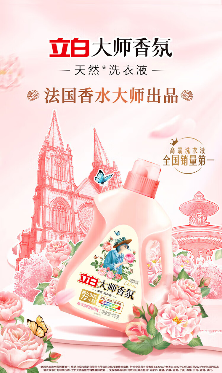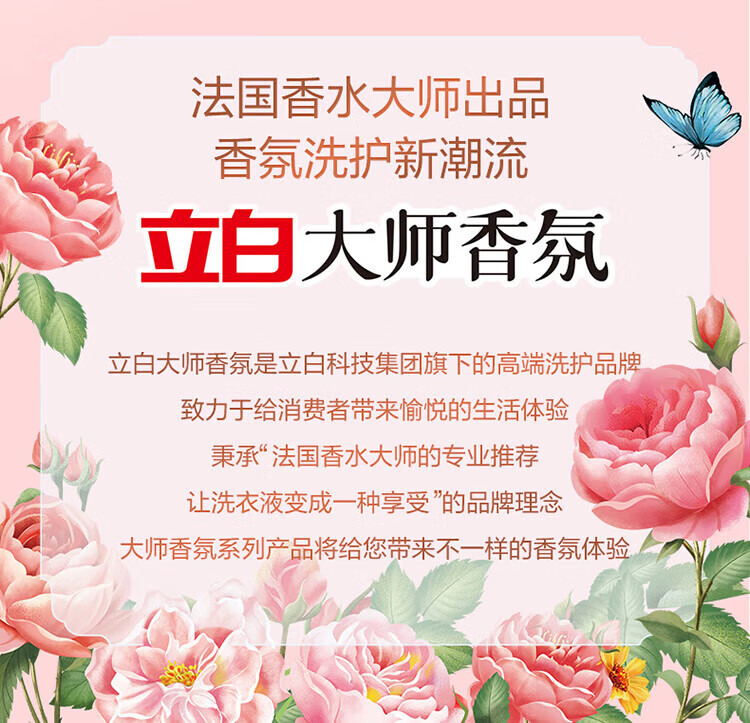 Liby Master Fragrance Laundry Detergent, long-lasting fragrance, colorful, smooth and protective, hand washable, machine washable, low foaming, easy to rinse, home use, Master Fragrance Laundry Detergent 1kg*2 bottles
