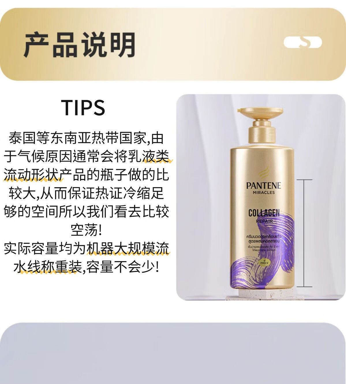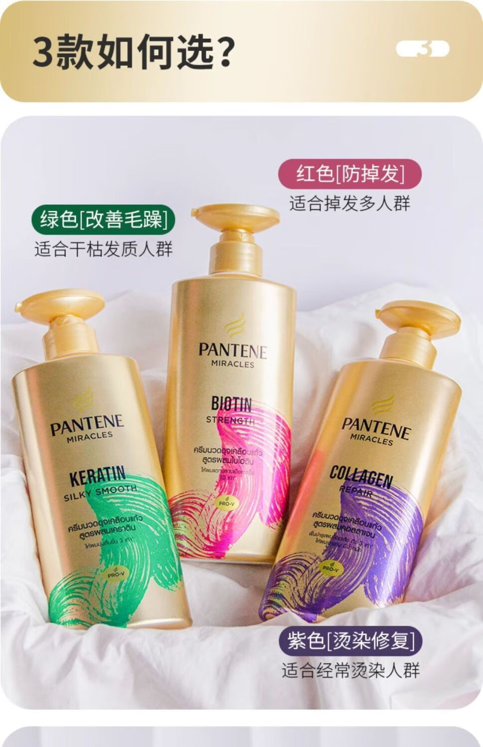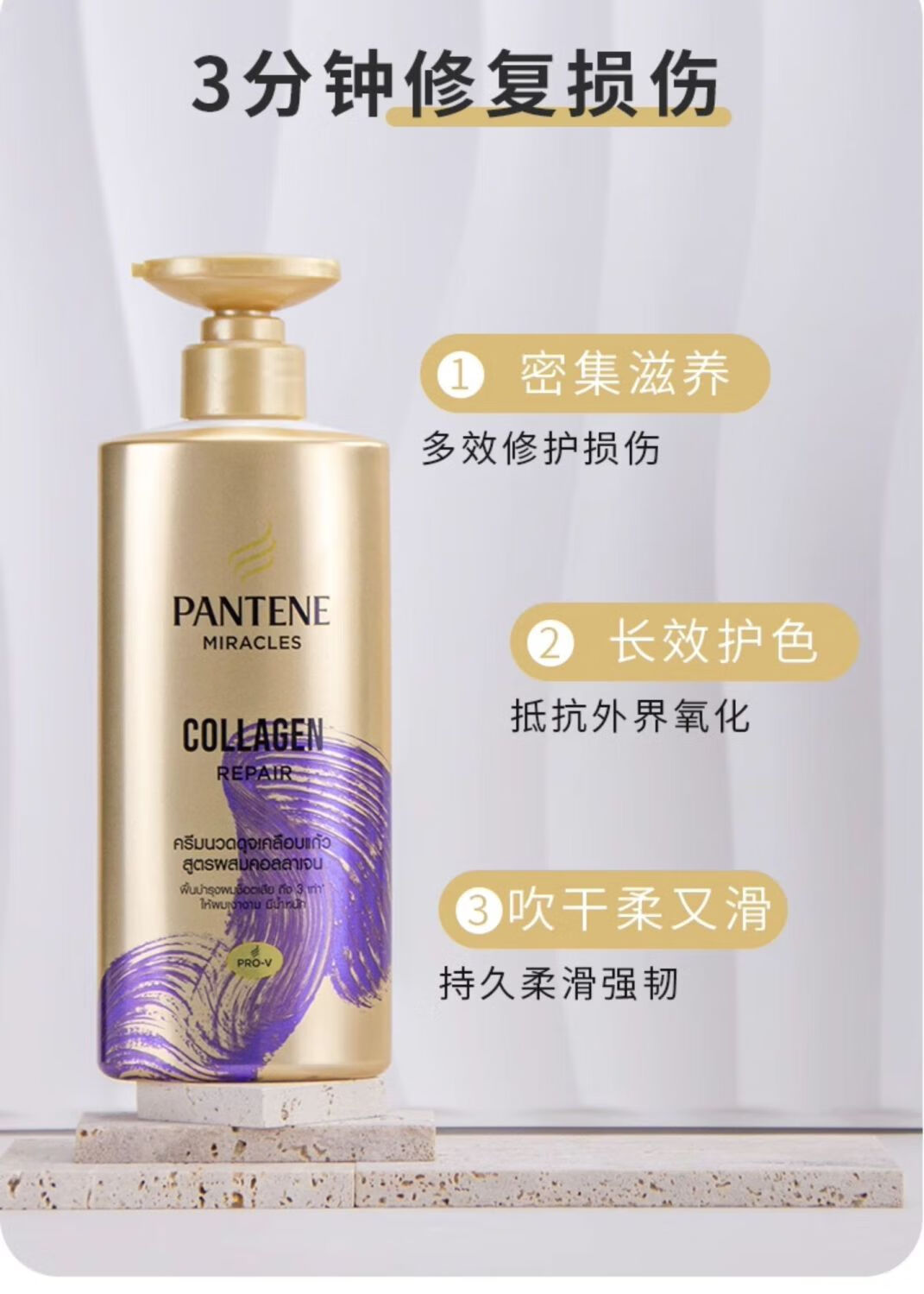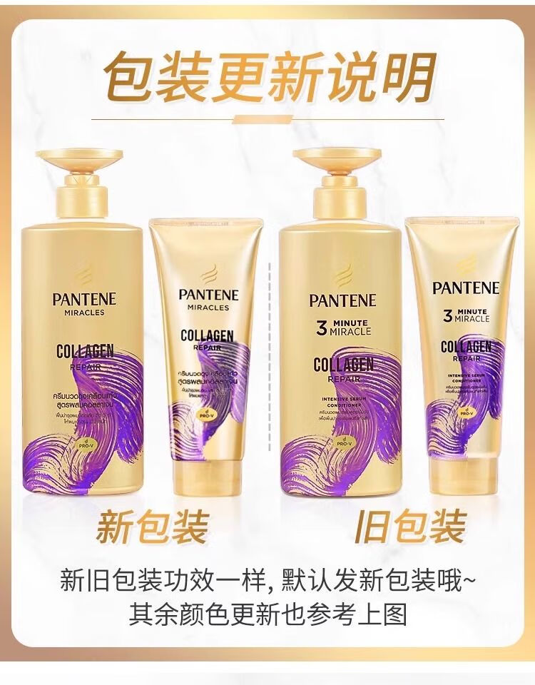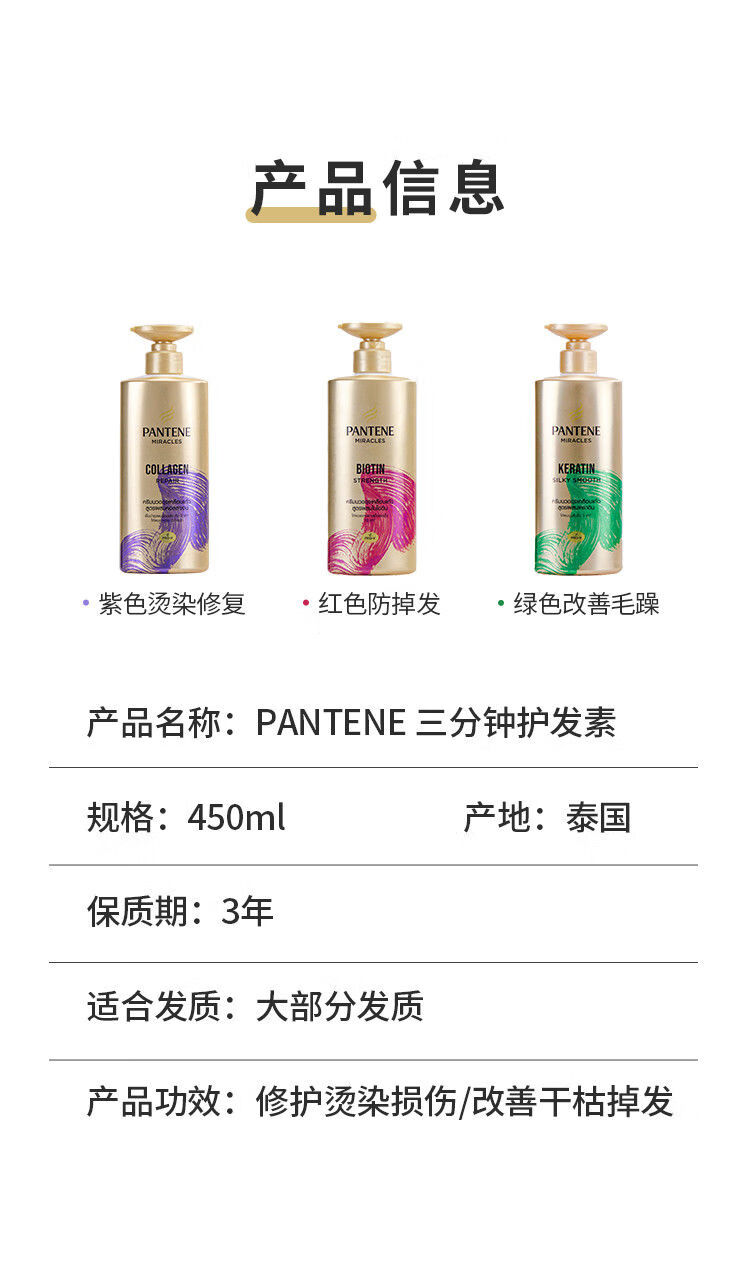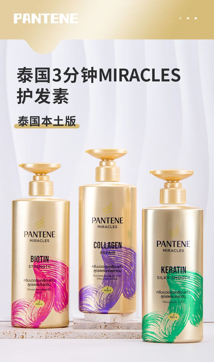 Pantene Three-Minute Miracle Conditioner contains amino acids, multi-effect damage repair hair quality, improves frizz and dryness, imported from the original Miracle Collagen Repair Conditioner 450ml