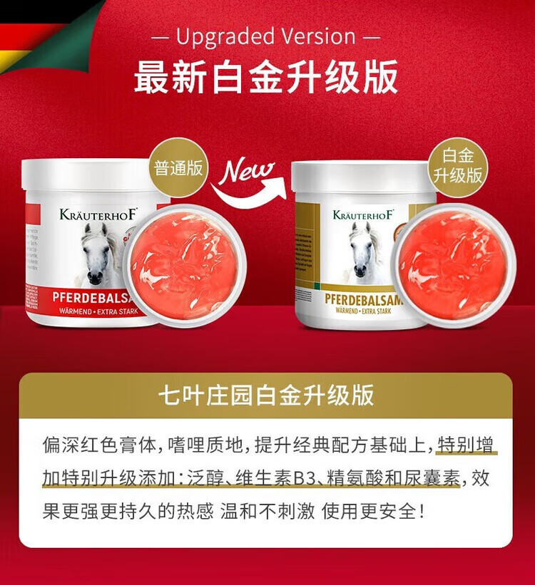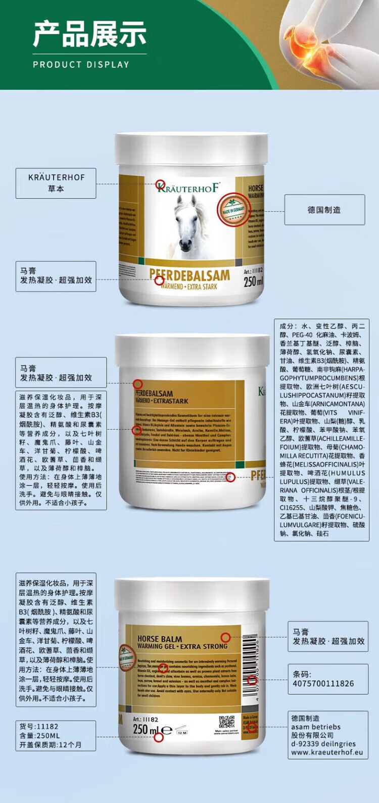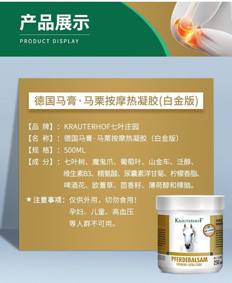 Krauterhof upgraded platinum version of German horse ointment horse chestnut ointment massage hot gel horse ointment ointment rheumatism joint ointment to relieve muscle soreness classic version 100ml
