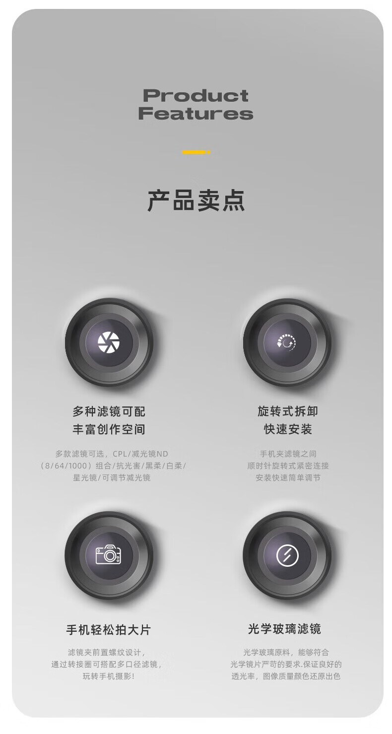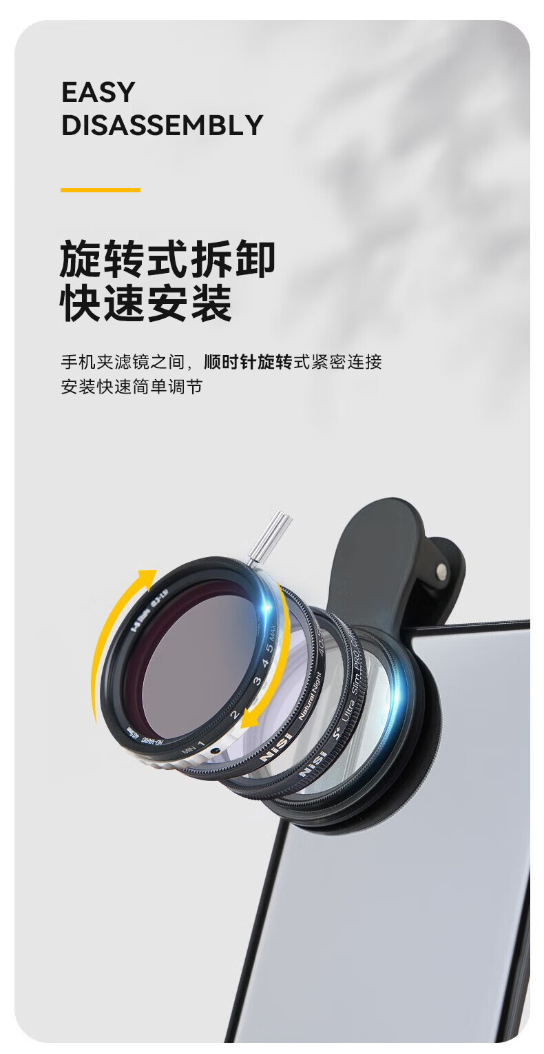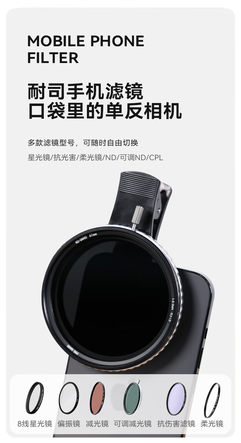 NiSi mobile phone polarizer cpl polarizer black soft filter white soft focus lens adjustable nd light filter adjustable starlight lens HD outdoor vlog Xiaomi 15ultra photography set true color CPL polarizer (including mobile phone clip) 52mm