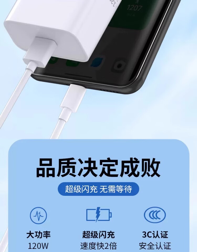 JD Express 120W charger suitable for OPPOReno12/11/10/9/8Pro super flash charging oppofindX7/X6 charging head 10A fast charging Type-C single pack (excellent product) 1 meter fast charging cable