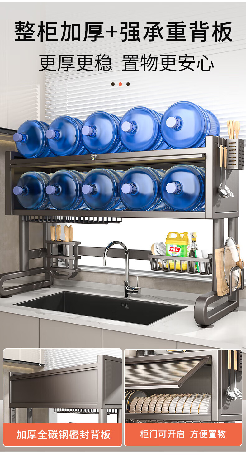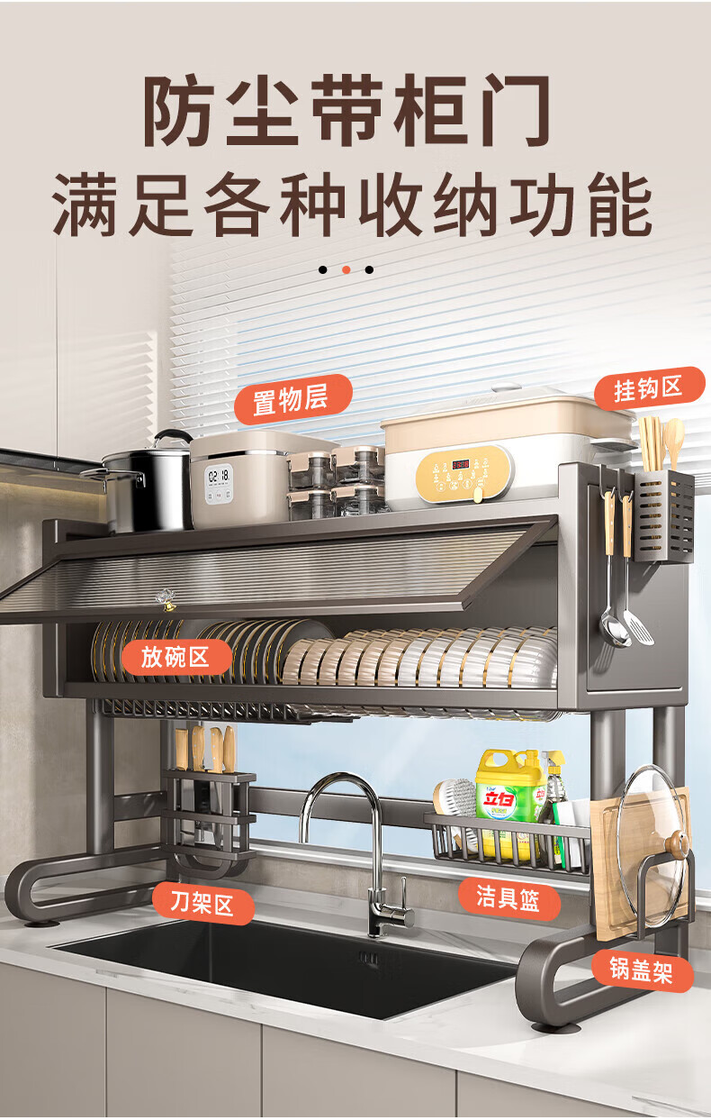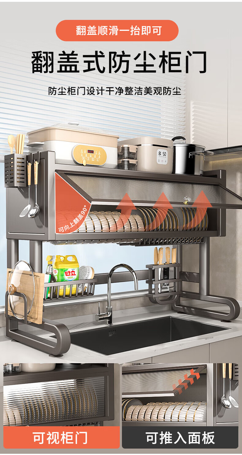 Benwang (BW) kitchen sink rack multi-functional drain rack dishwasher sink dust-proof cupboard knife chopstick barrel chopping board storage rack gun gray 75cm luxury 6-piece complete set
