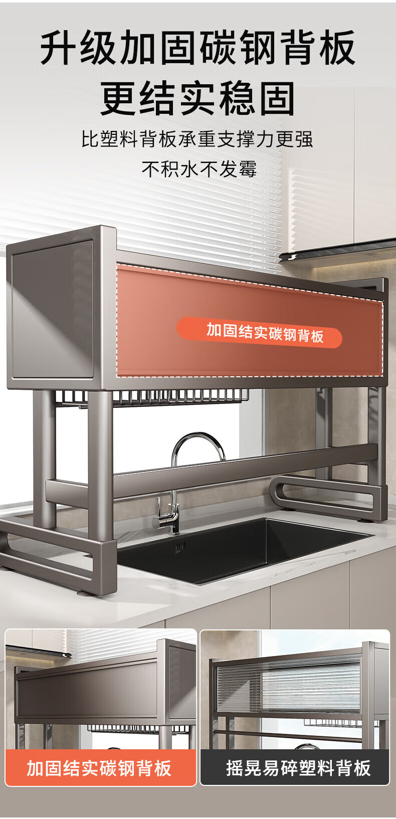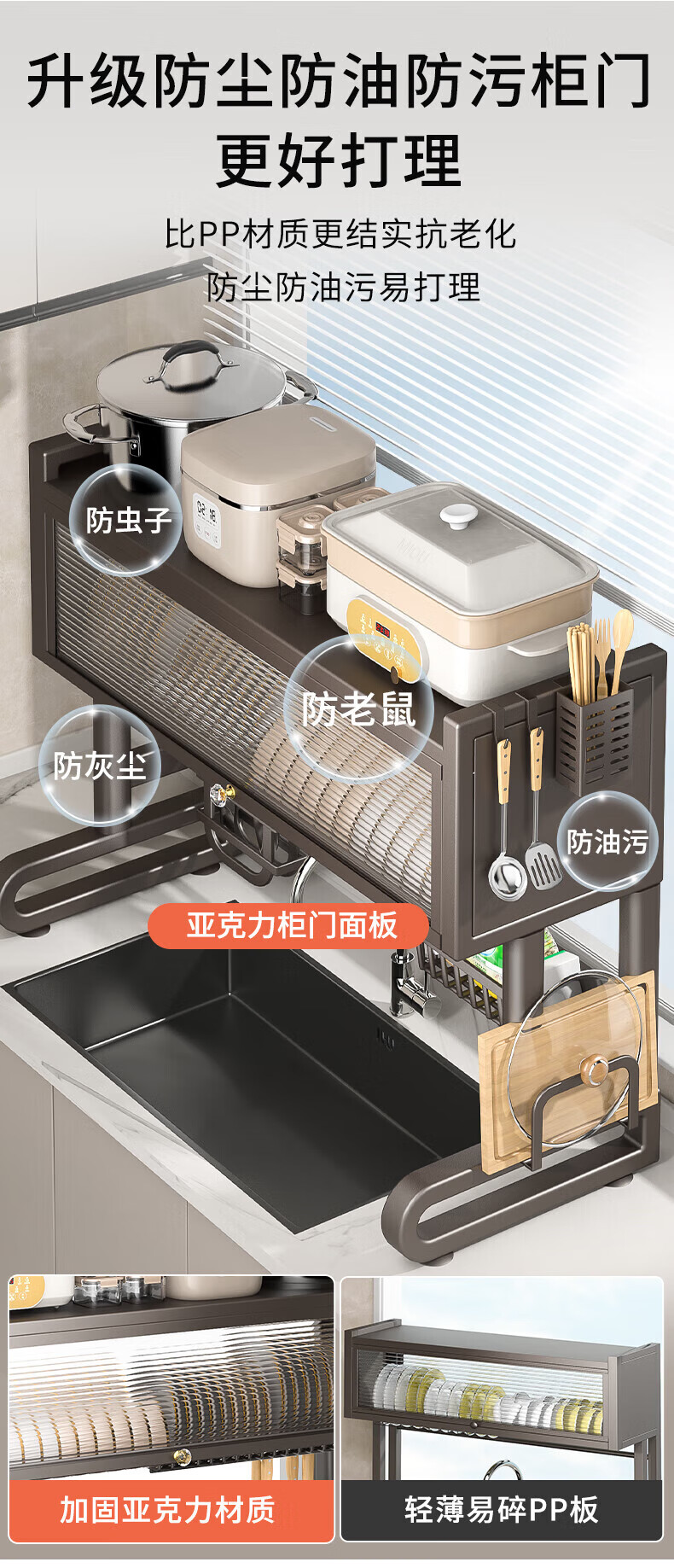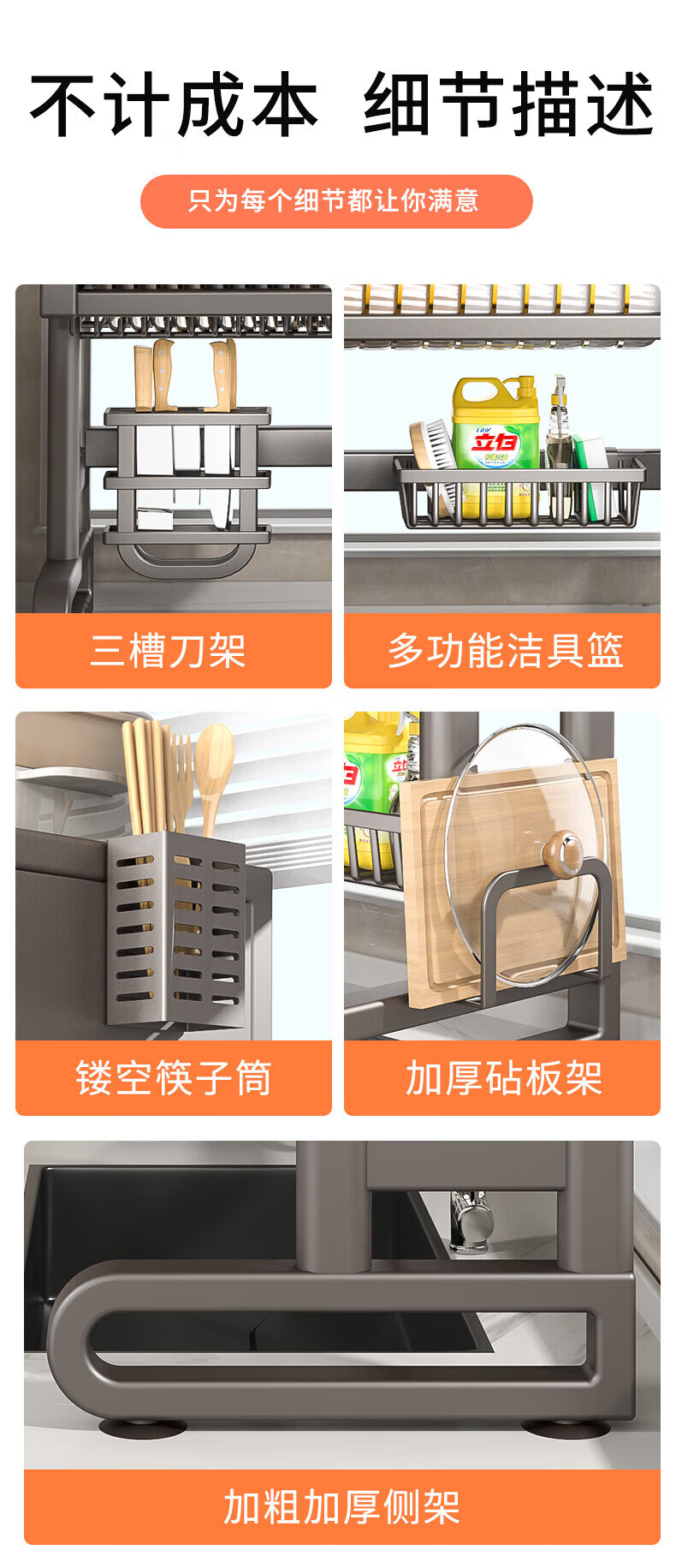Benwang (BW) kitchen sink rack multi-functional drain rack dishwasher sink dust-proof cupboard knife chopstick barrel chopping board storage rack gun gray 75cm luxury 6-piece complete set