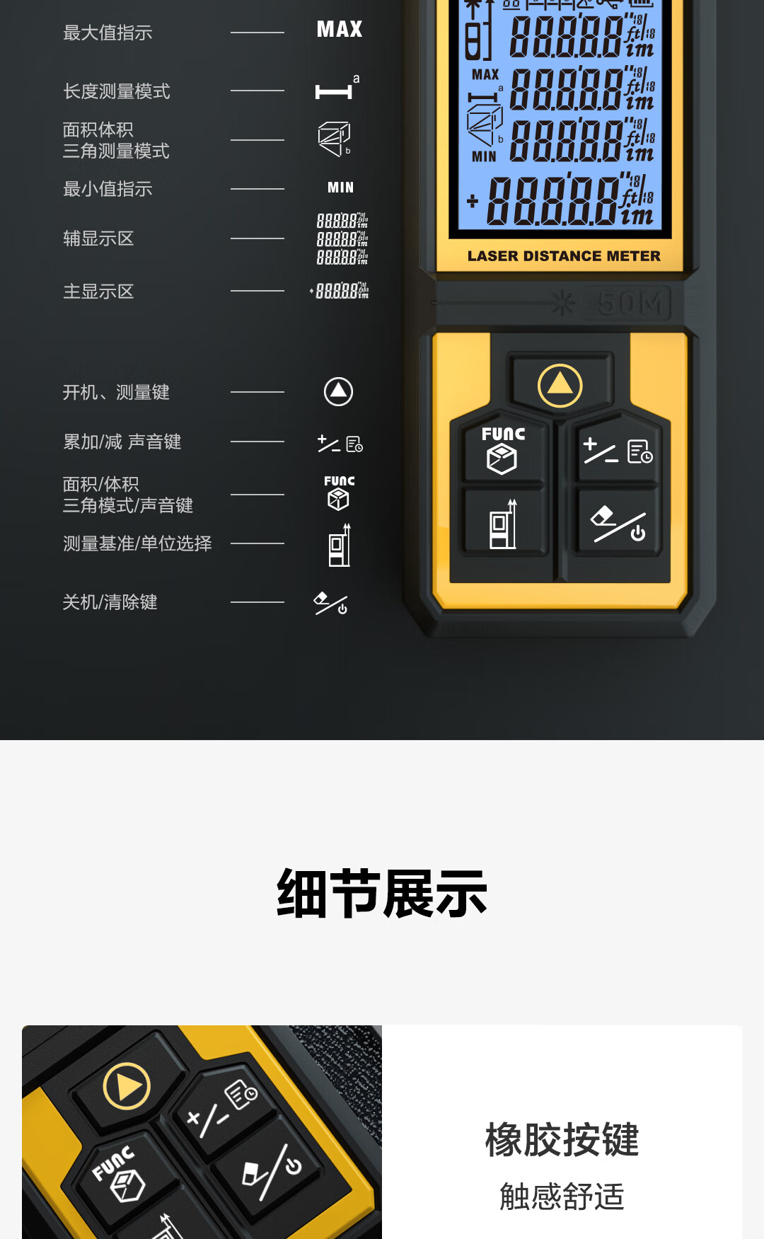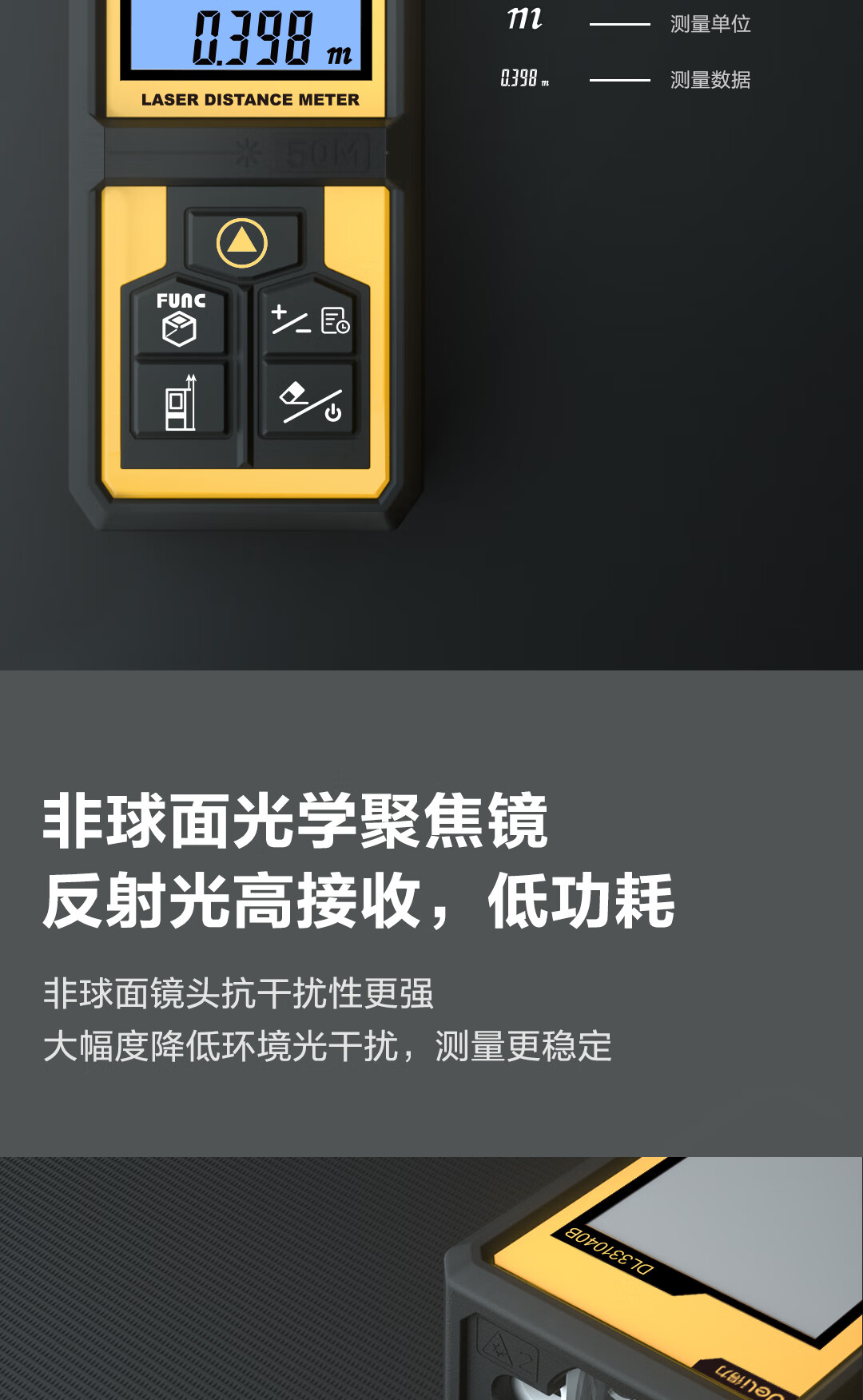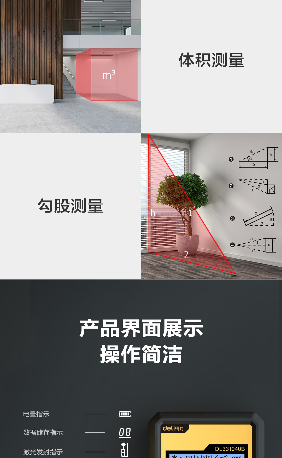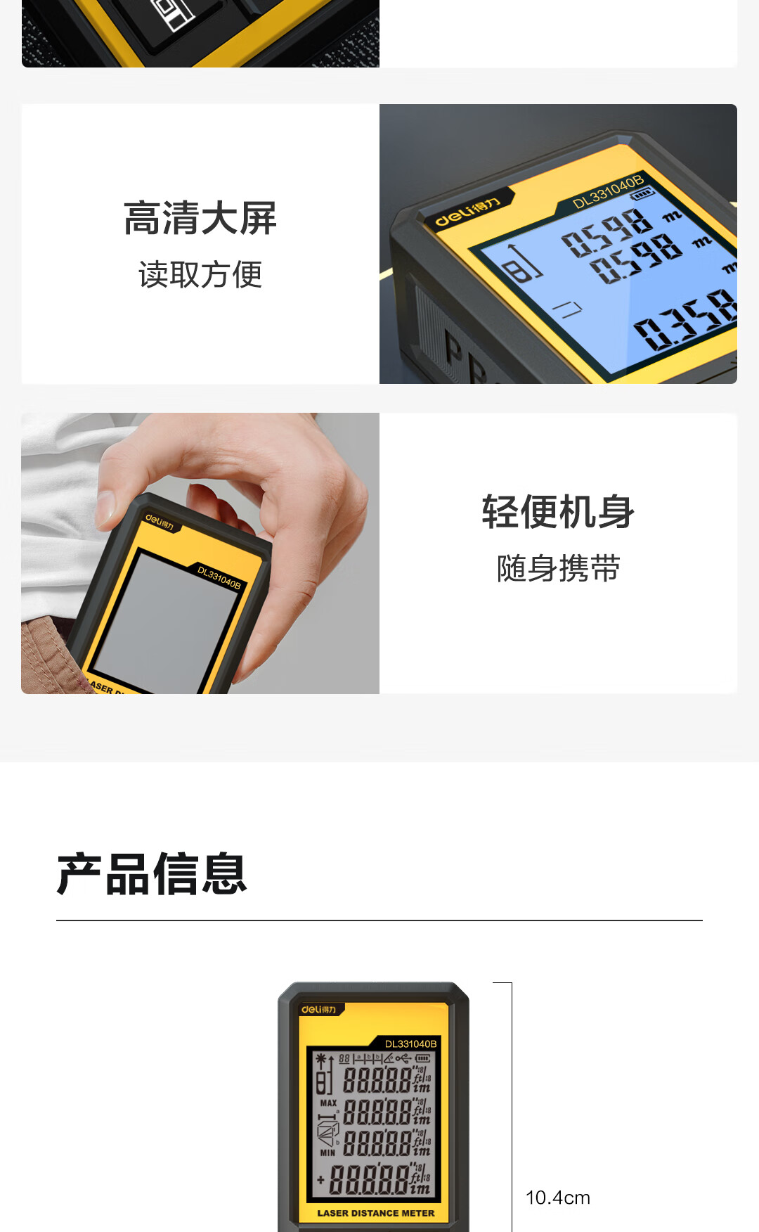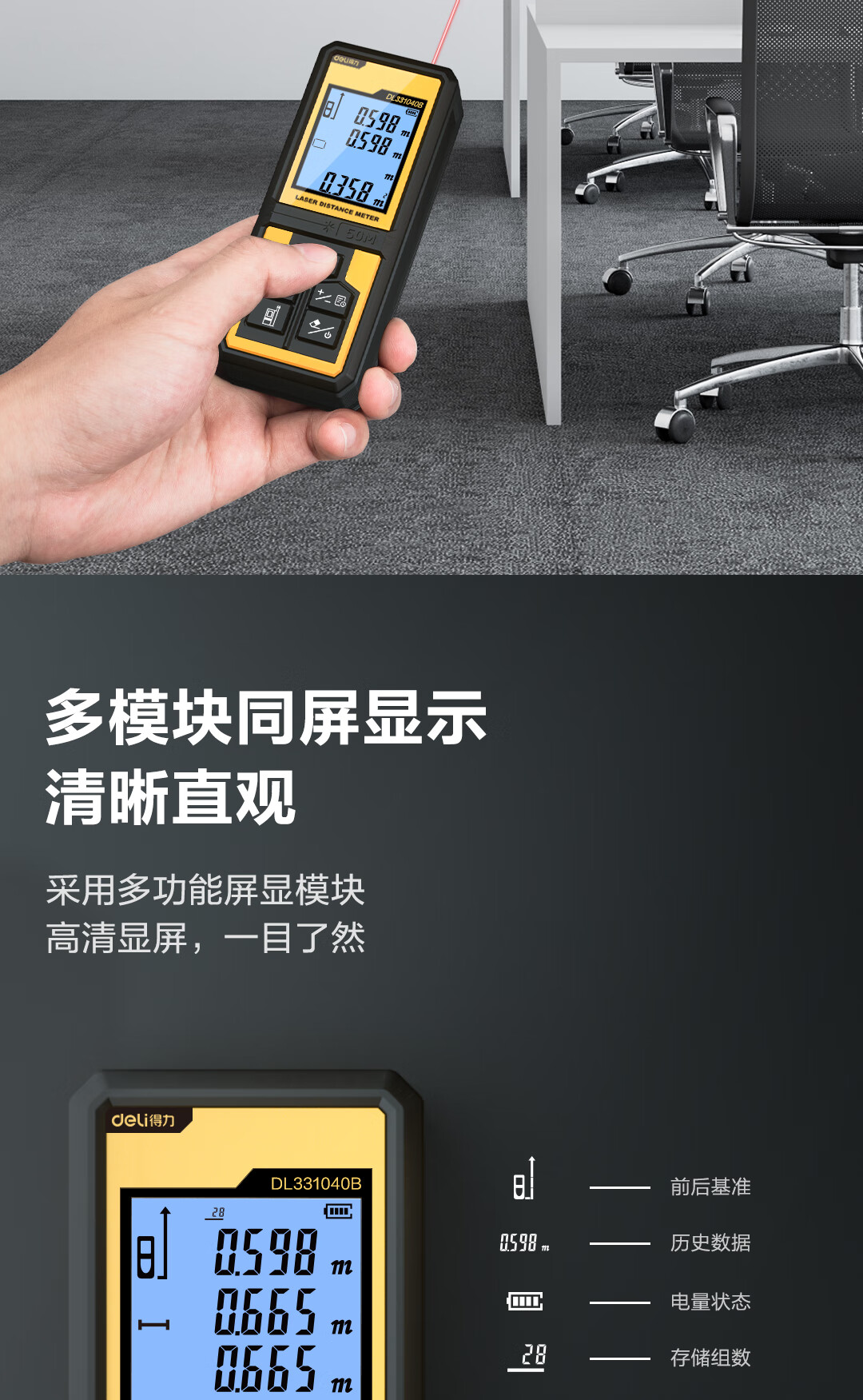 Deli handheld laser distance meter, infrared high-precision measuring instrument, long-distance room measuring instrument, laser ruler, electronic ruler, rechargeable model - 40 meters - mini portable model DL331230