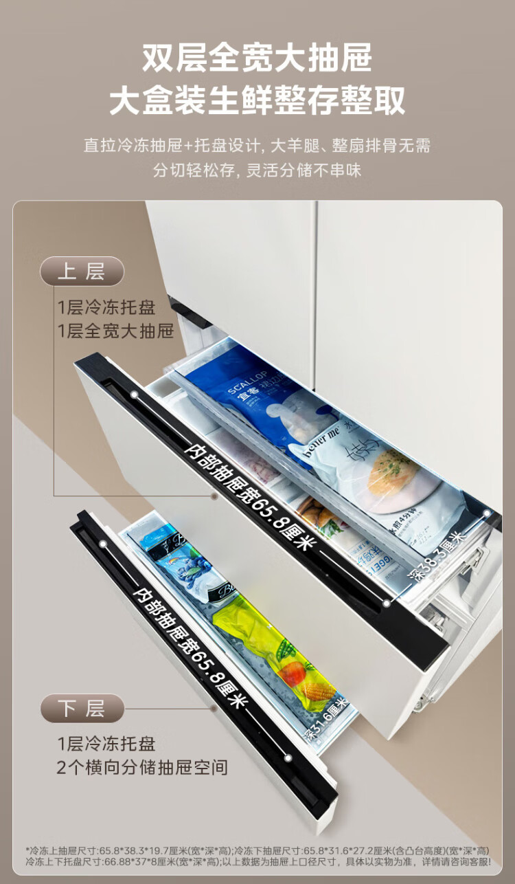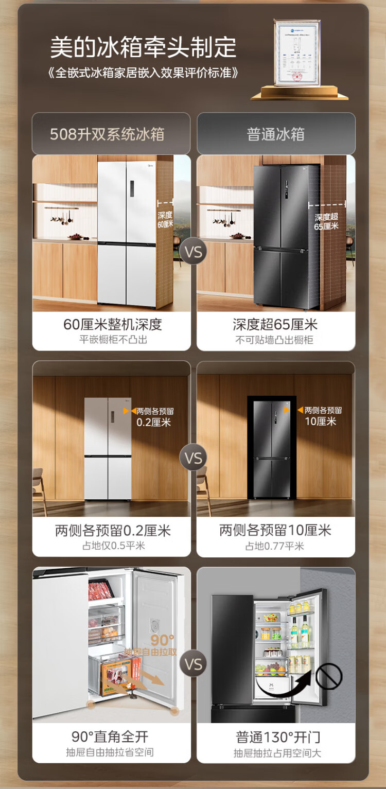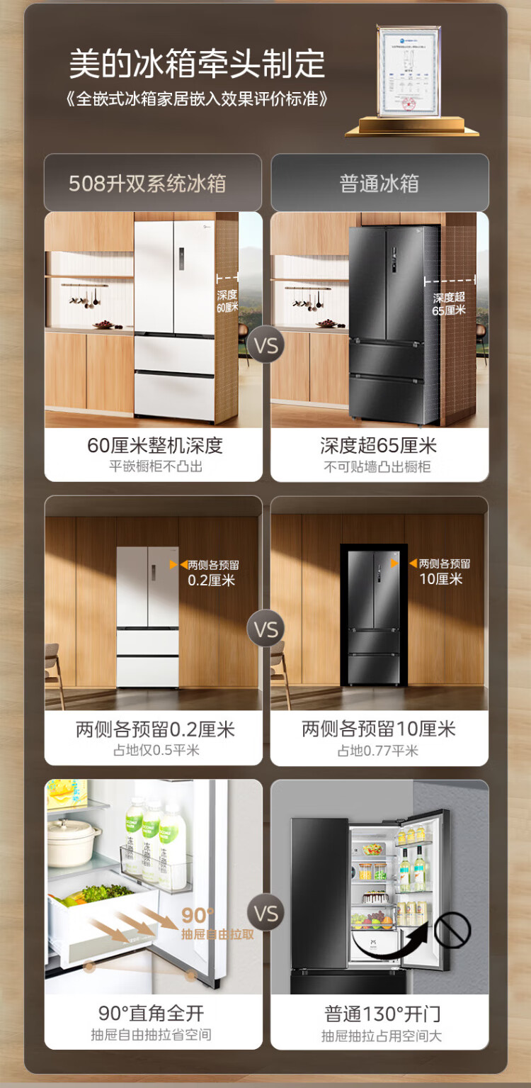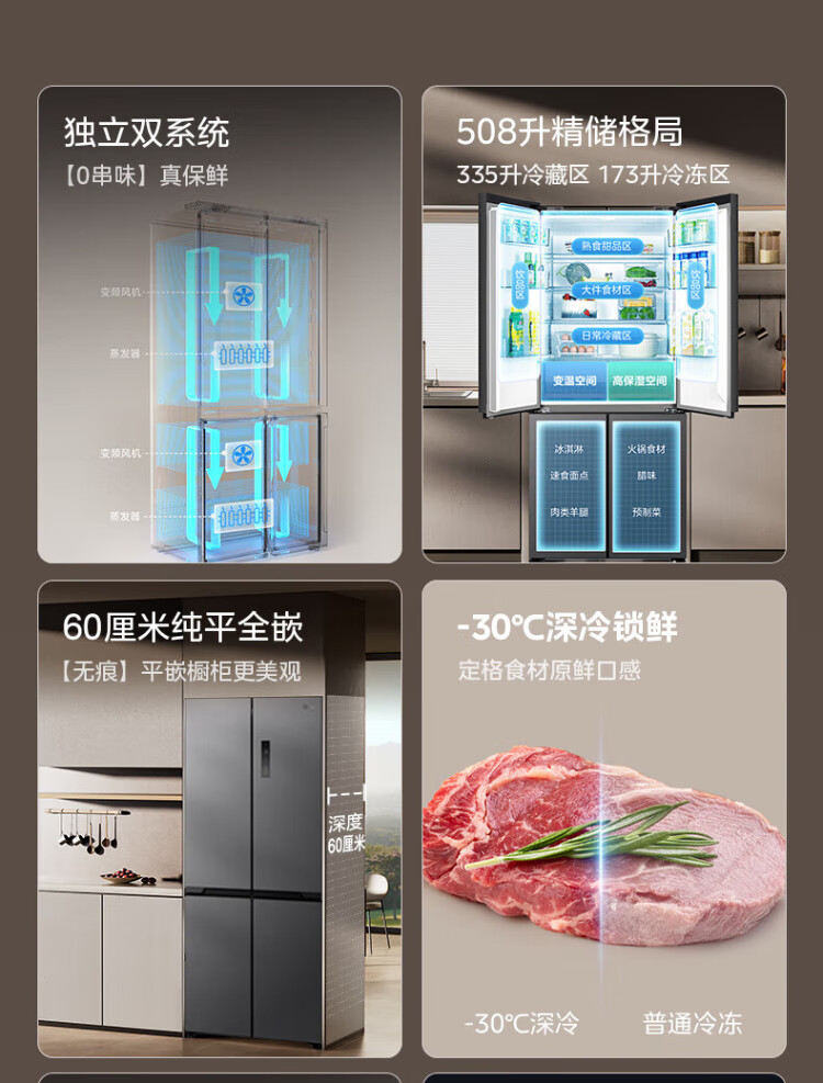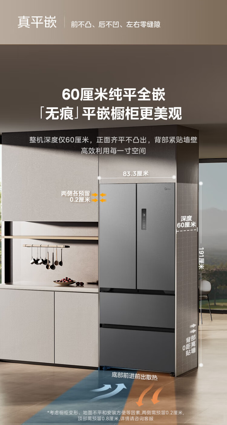 Midea 508 French style refrigerator multi-door Zhenxiang series M60 dual system double cycle ultra-thin flat bottom cooling cross four-door household refrigerator BCD-508WUFPZM(E) French丨embedded dual system丨Stardust White