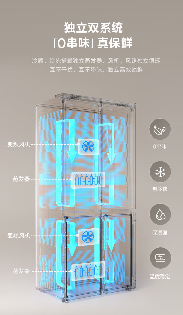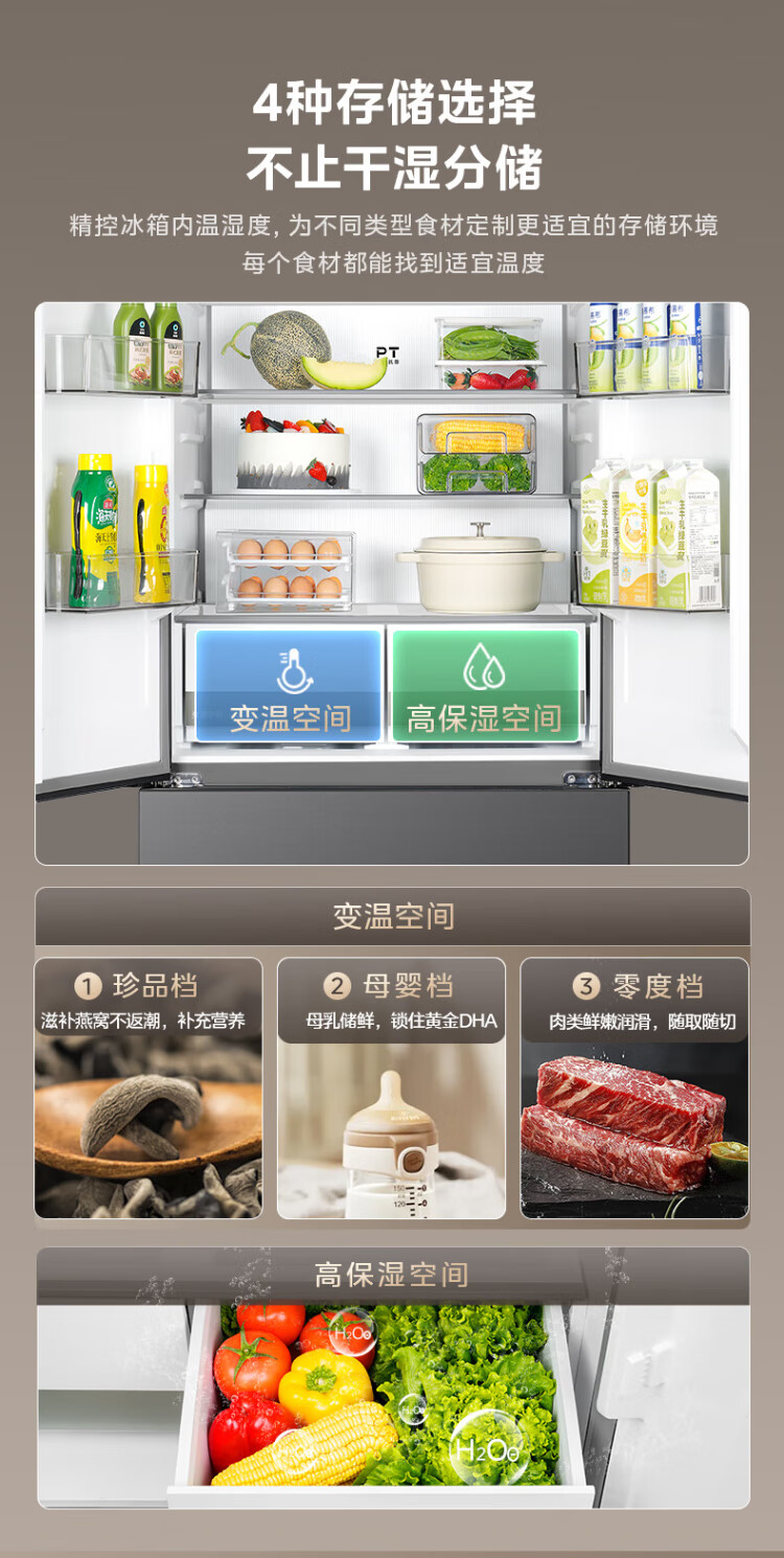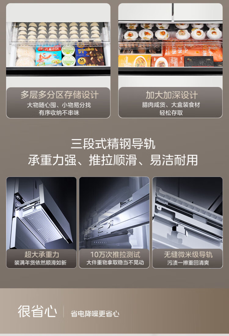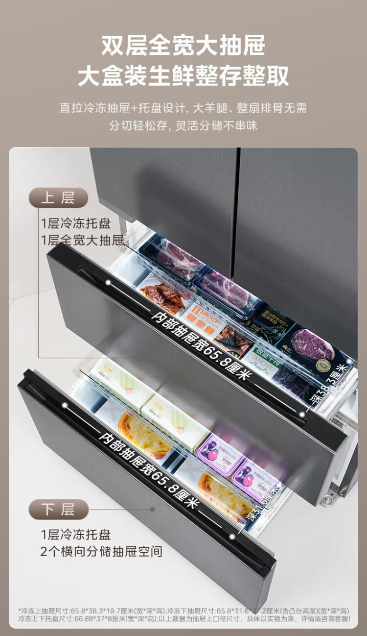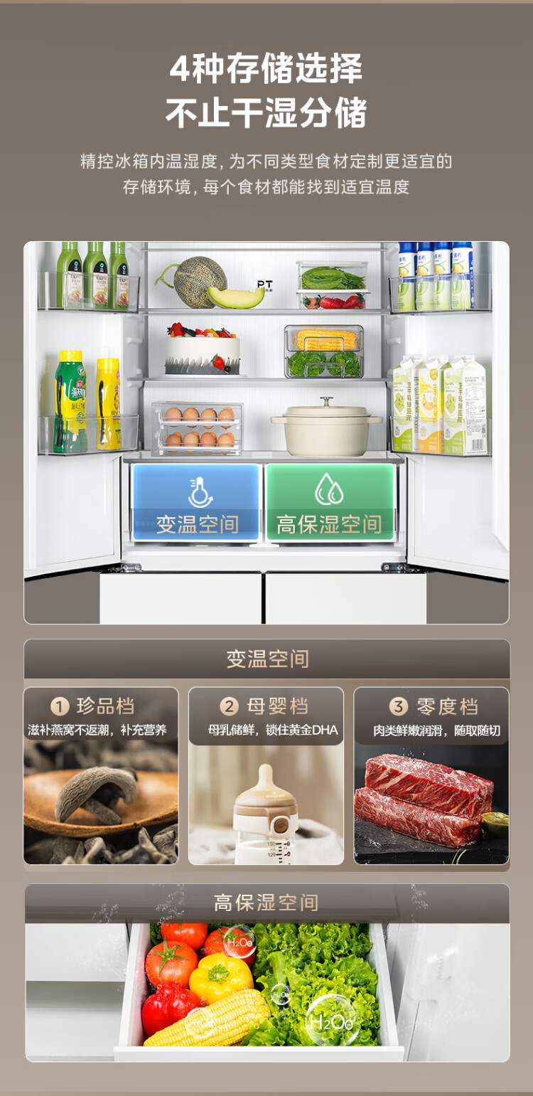 Midea 508 French style refrigerator multi-door Zhenxiang series M60 dual system double cycle ultra-thin flat bottom cooling cross four-door household refrigerator BCD-508WUFPZM(E) French丨embedded dual system丨Stardust White