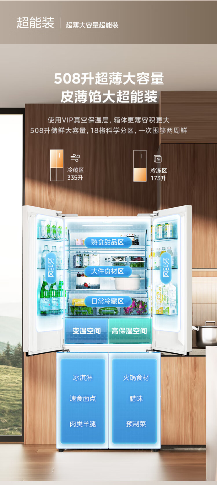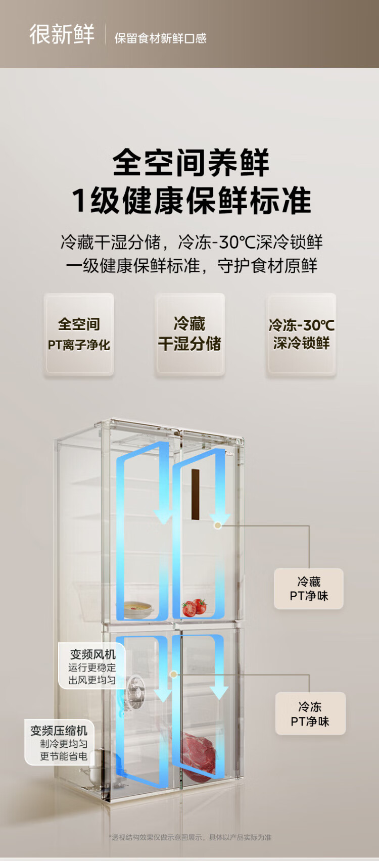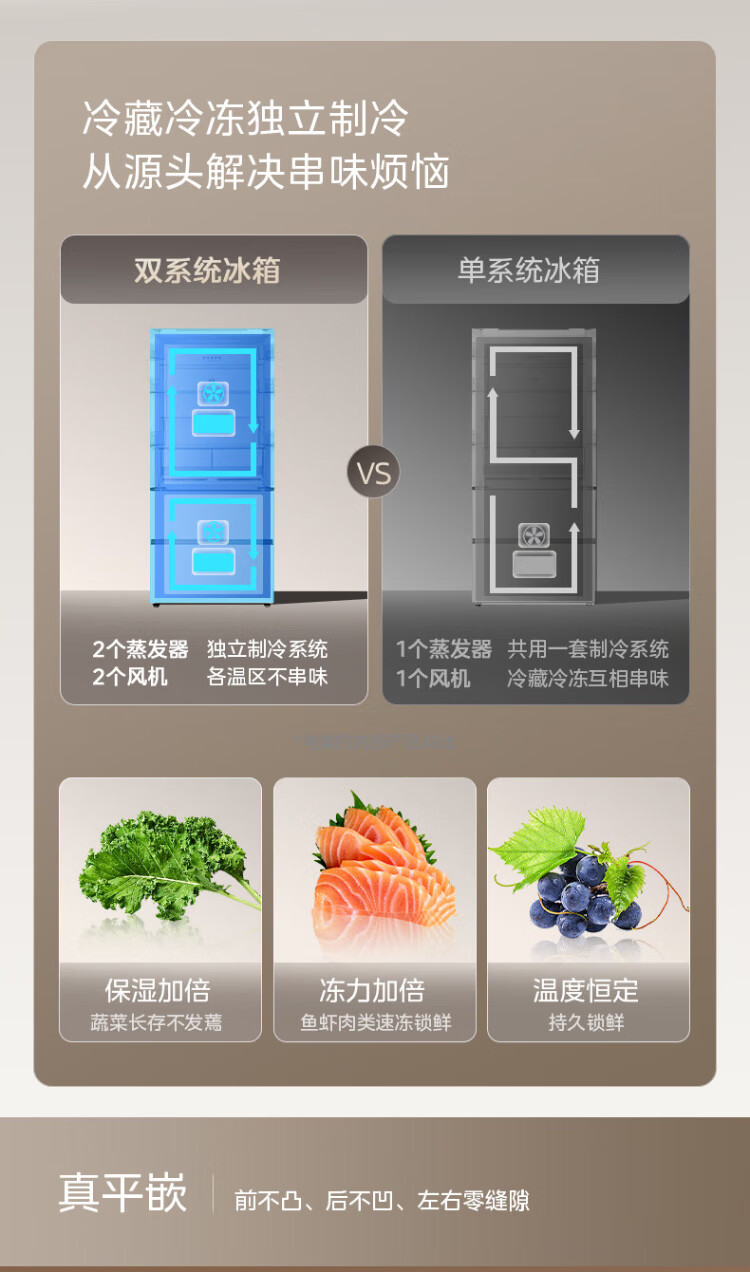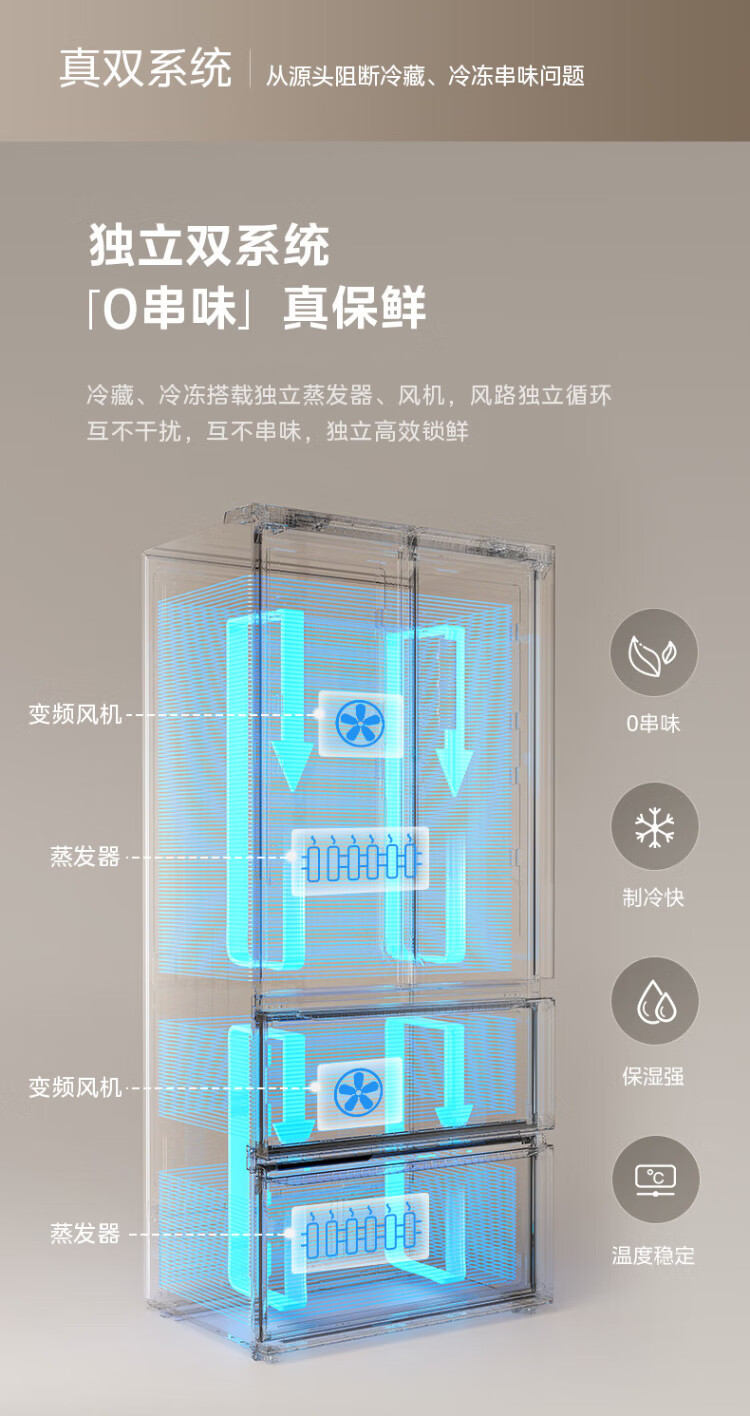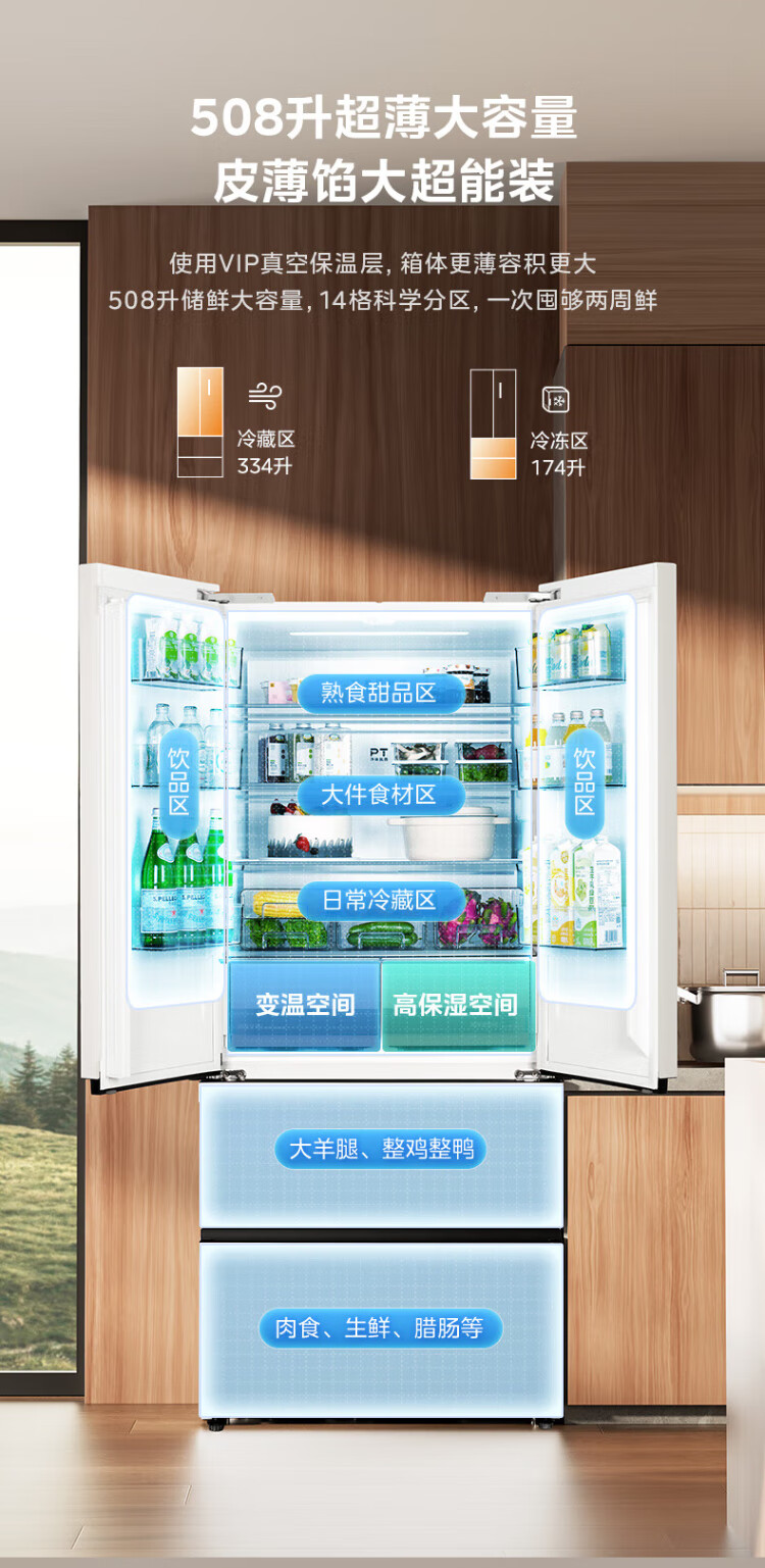 Midea 508 French style refrigerator multi-door Zhenxiang series M60 dual system double cycle ultra-thin flat bottom cooling cross four-door household refrigerator BCD-508WUFPZM(E) French丨embedded dual system丨Stardust White