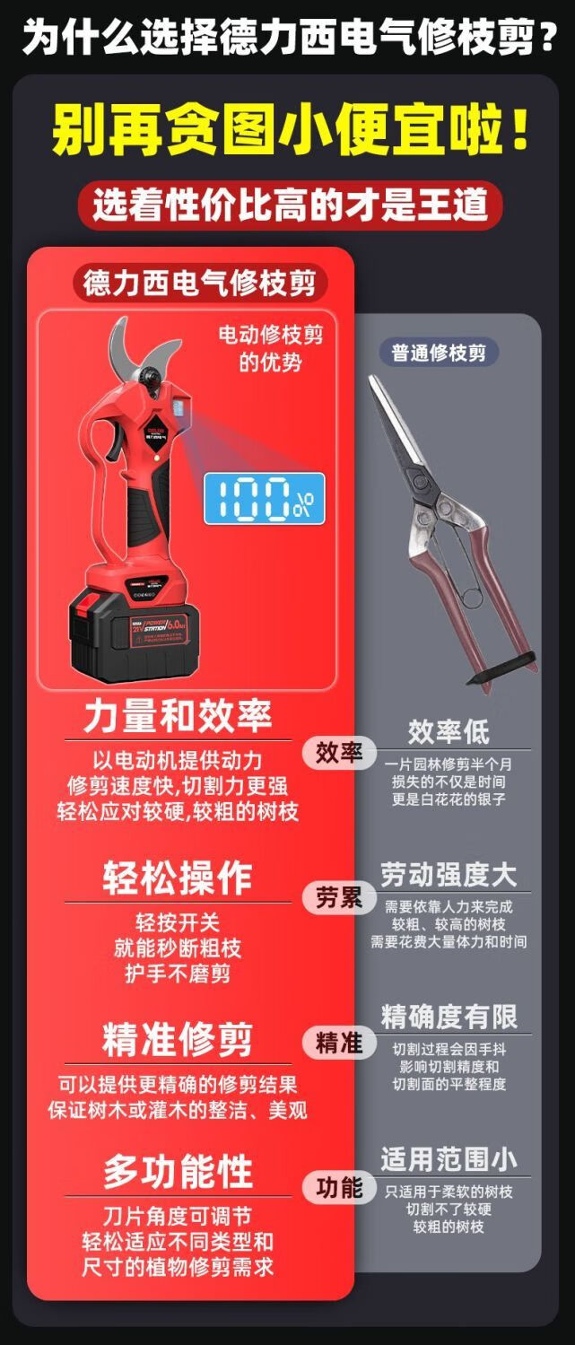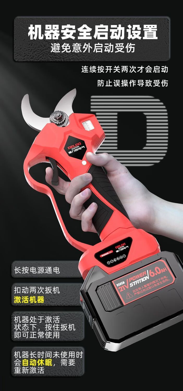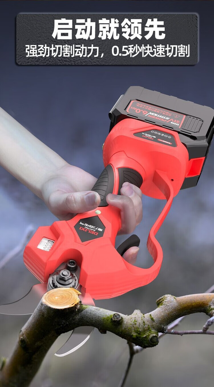 DELIXI ELECTRIC Electric Scissors Rechargeable Electric Scissors Fruit Tree Pruning Branch Pruning Shears Electric Pruning Machine Artifact V70 21V High Configuration 2.0Ah Single Electric