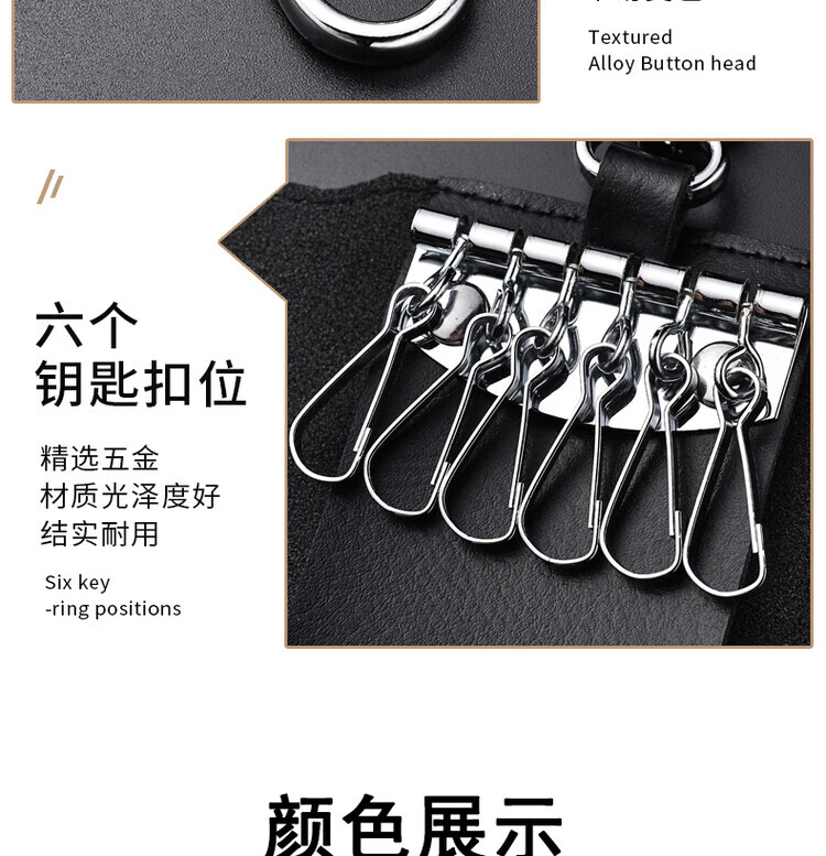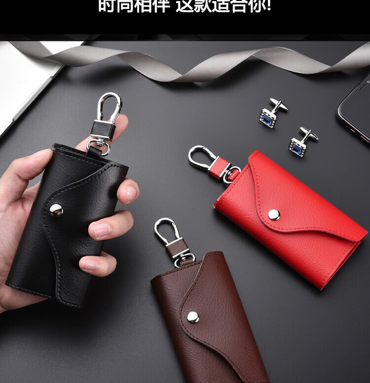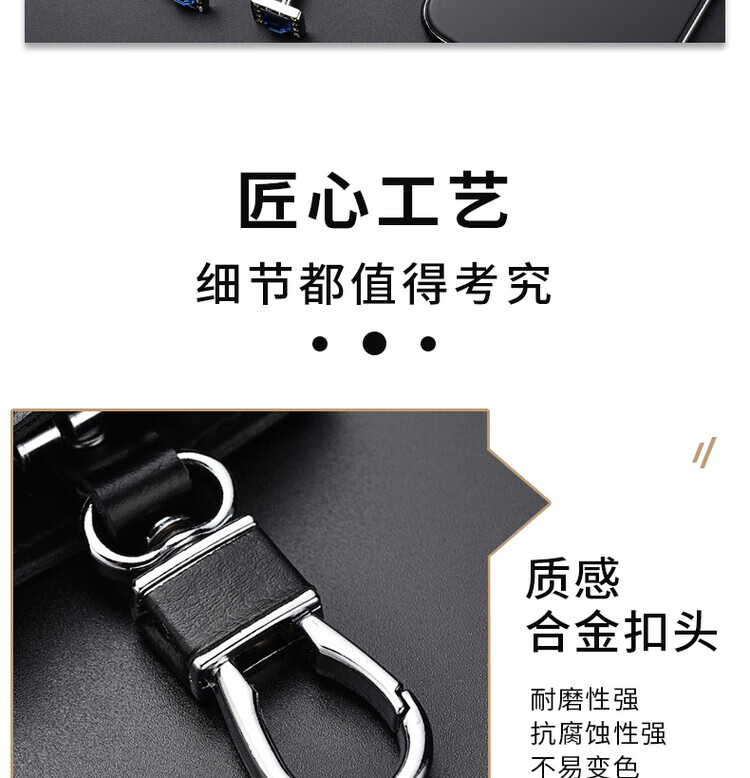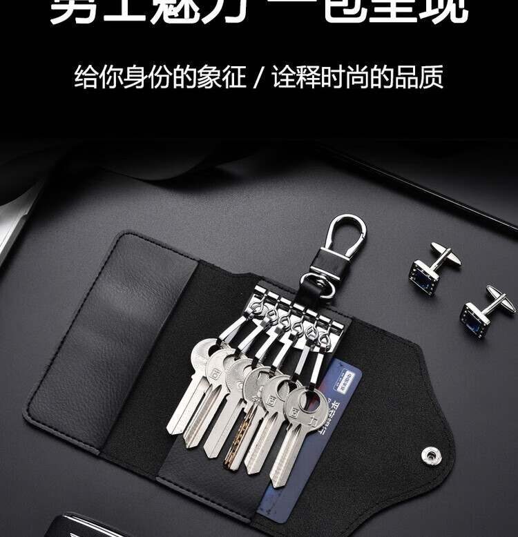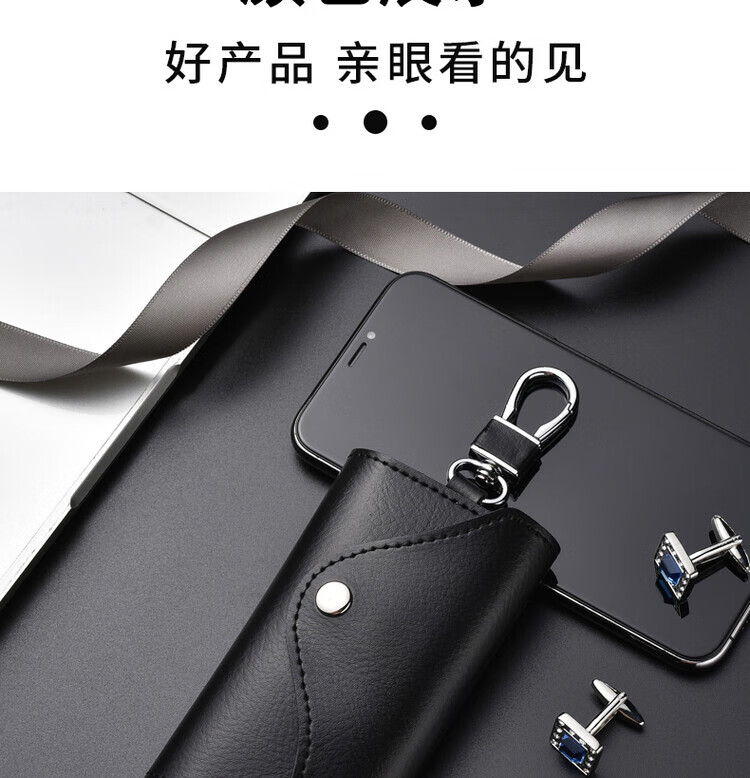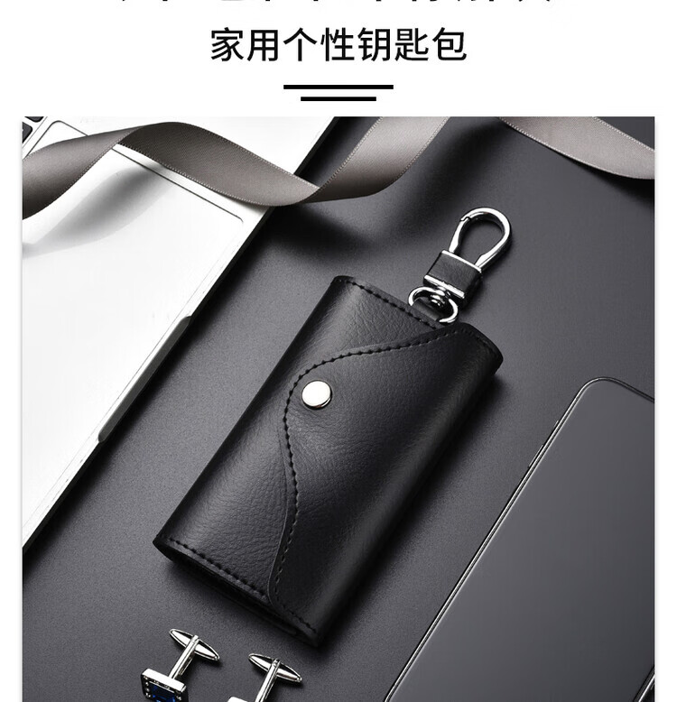 Dingtianliying genuine leather key bag large capacity clutch bag men's leather waist hanging key bag women's multi-functional key chain hanging buckle version - black