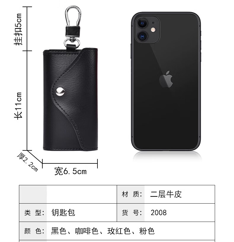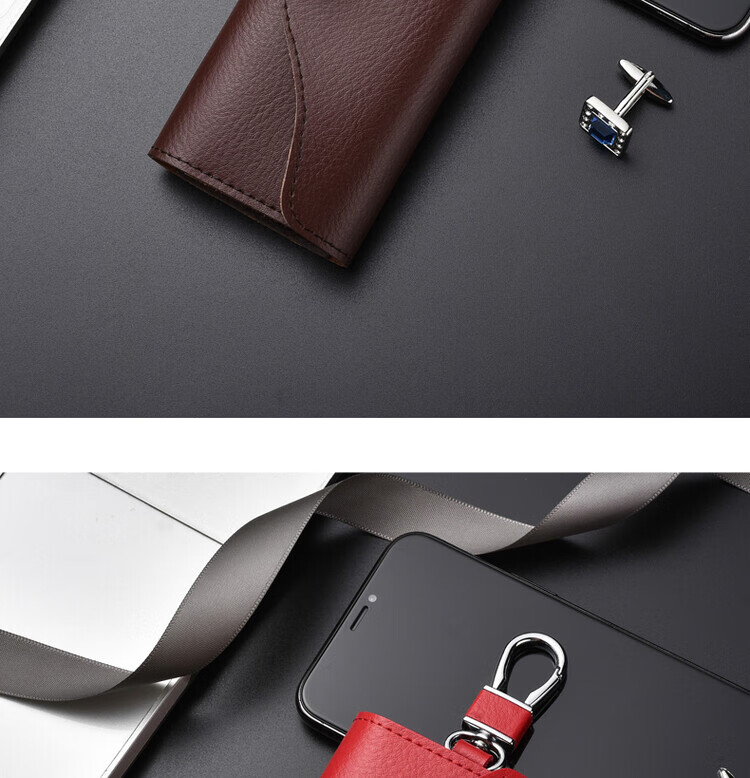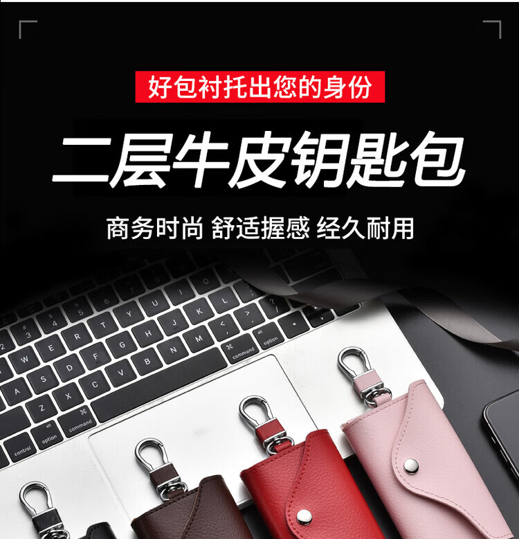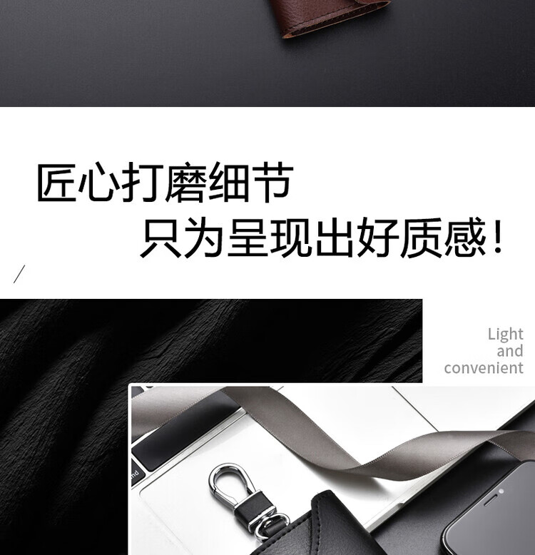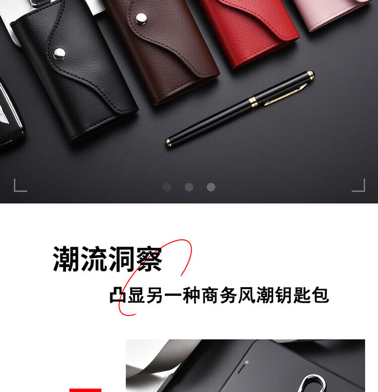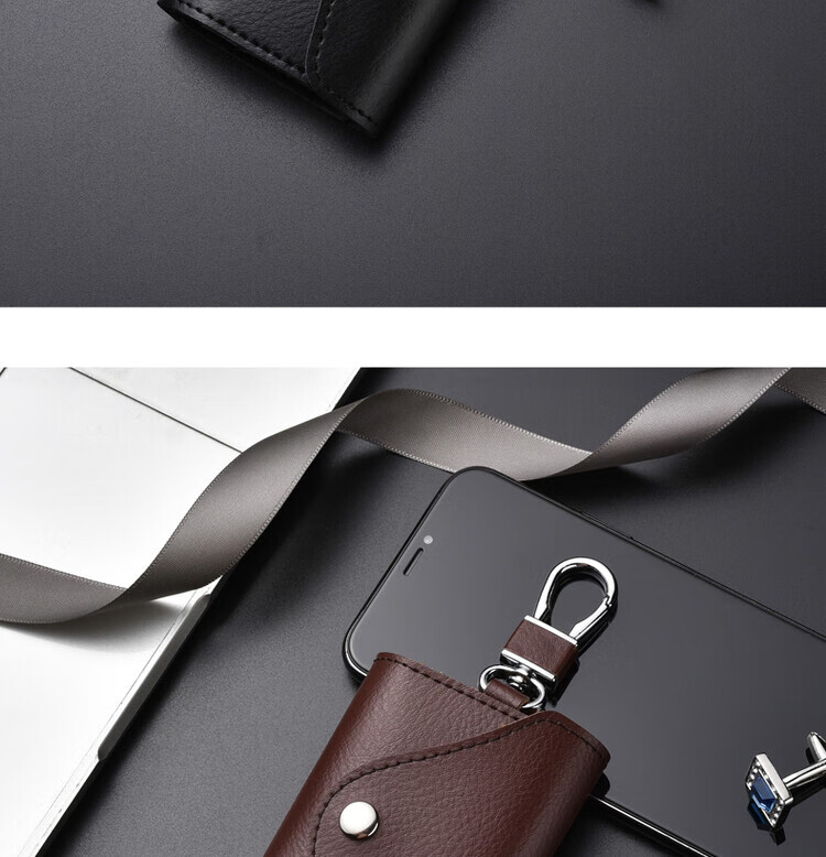 Dingtianliying genuine leather key bag large capacity clutch bag men's leather waist hanging key bag women's multi-functional key chain hanging buckle version - black