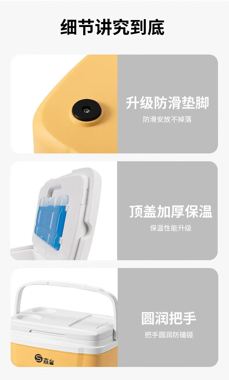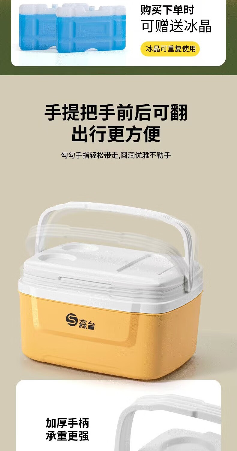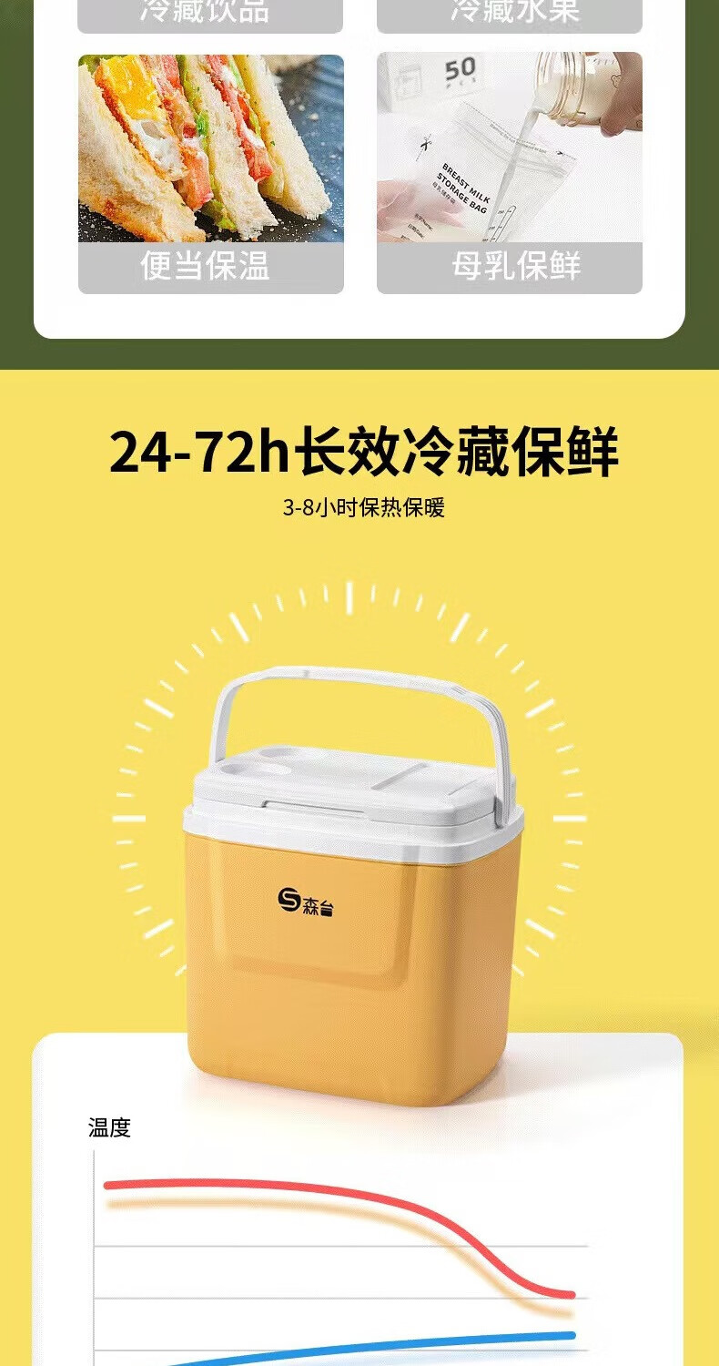 Sentai Insulated Box Refrigerator Home Car Outdoor Refrigerator Portable Cold Keeping Picnic Fishing Commercial Stall Ice Bucket 8L EPS Original-Lemon Yellow Keeps Cold 24h