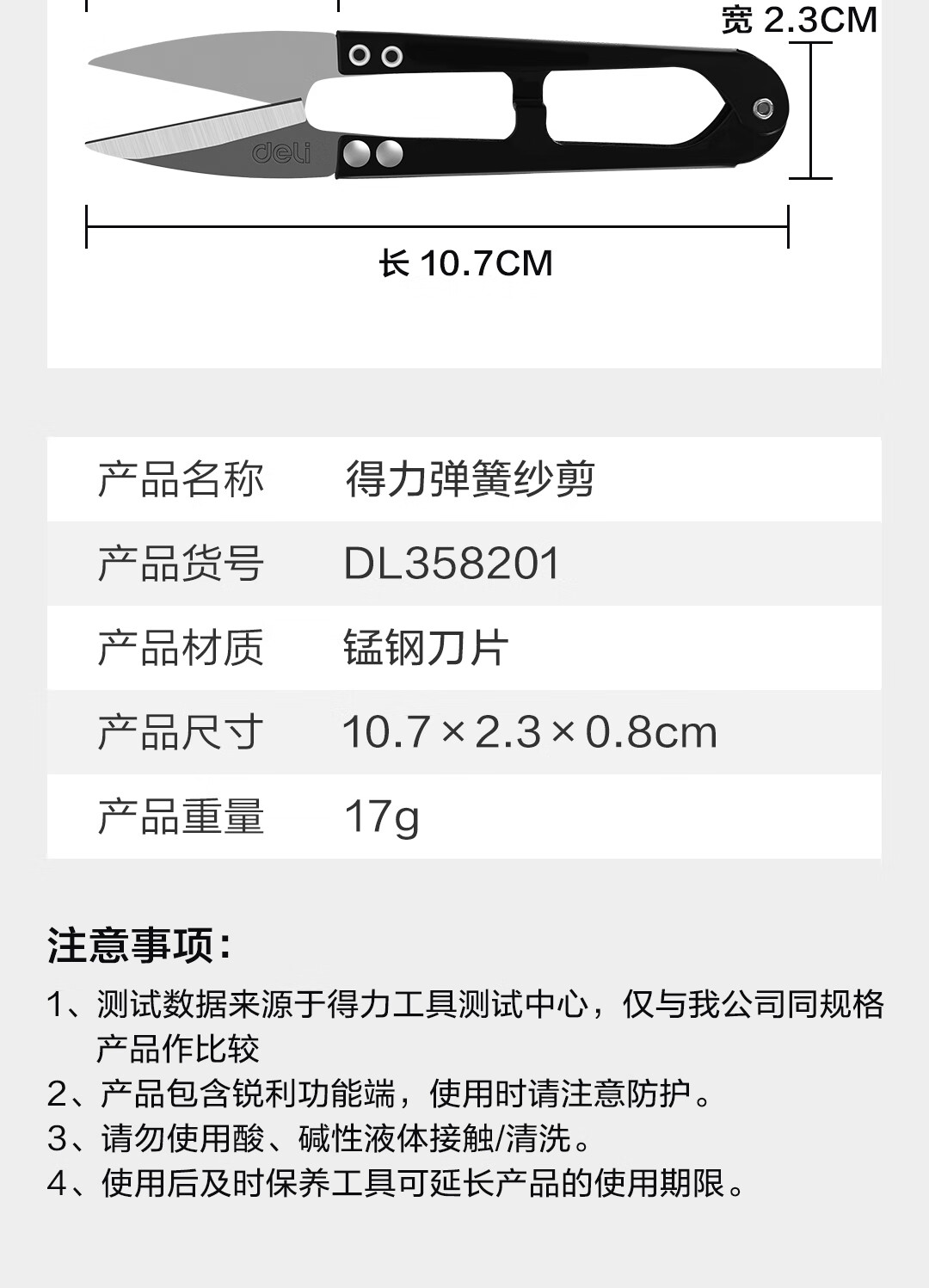 Deli (deli) spring yarn scissors small scissors small household sewing scissors to cut thread U-shaped embroidery tailor scissors Deli spring yarn scissors 1 pair - DL358201