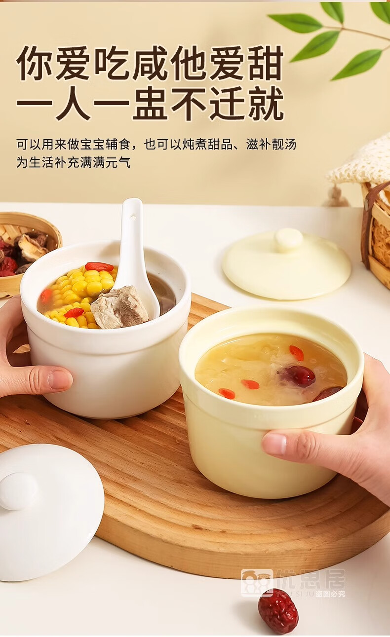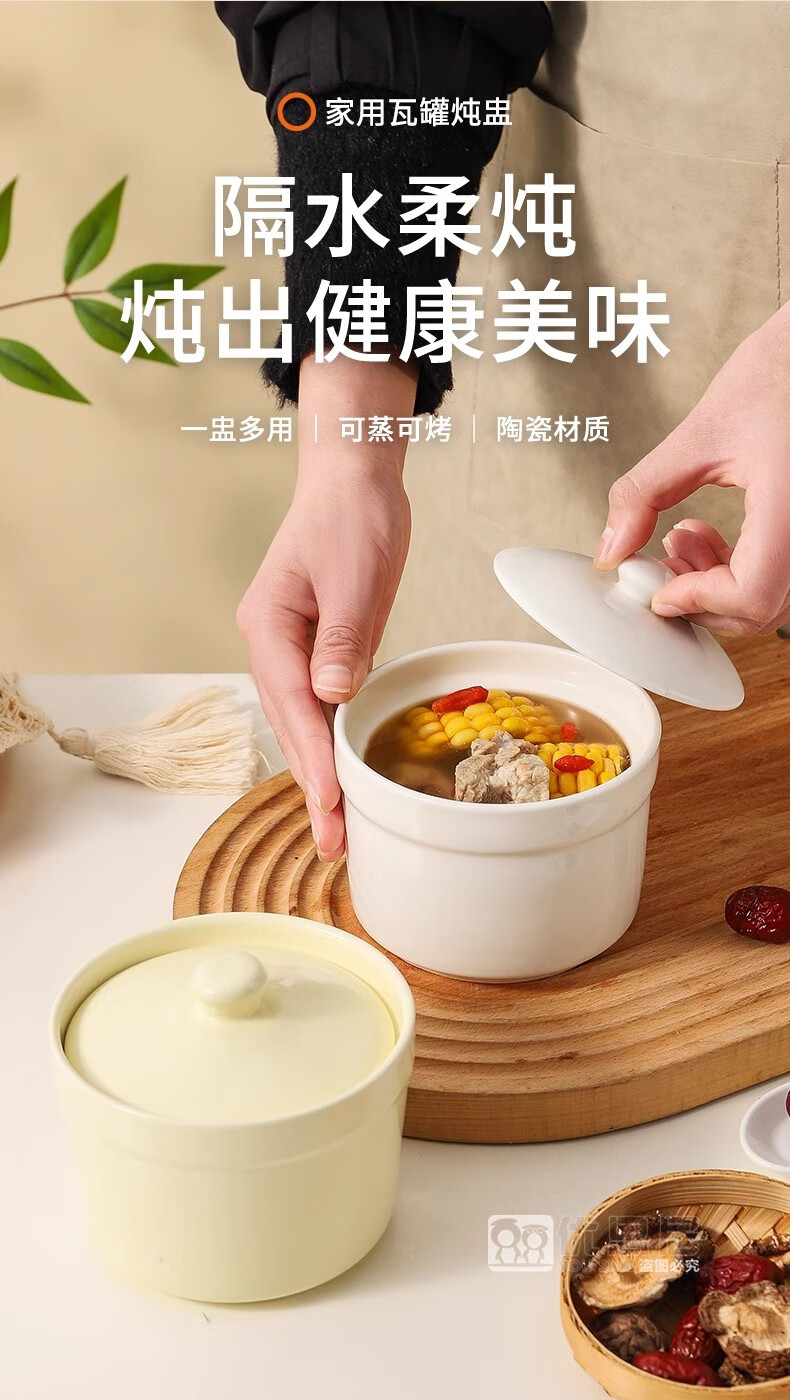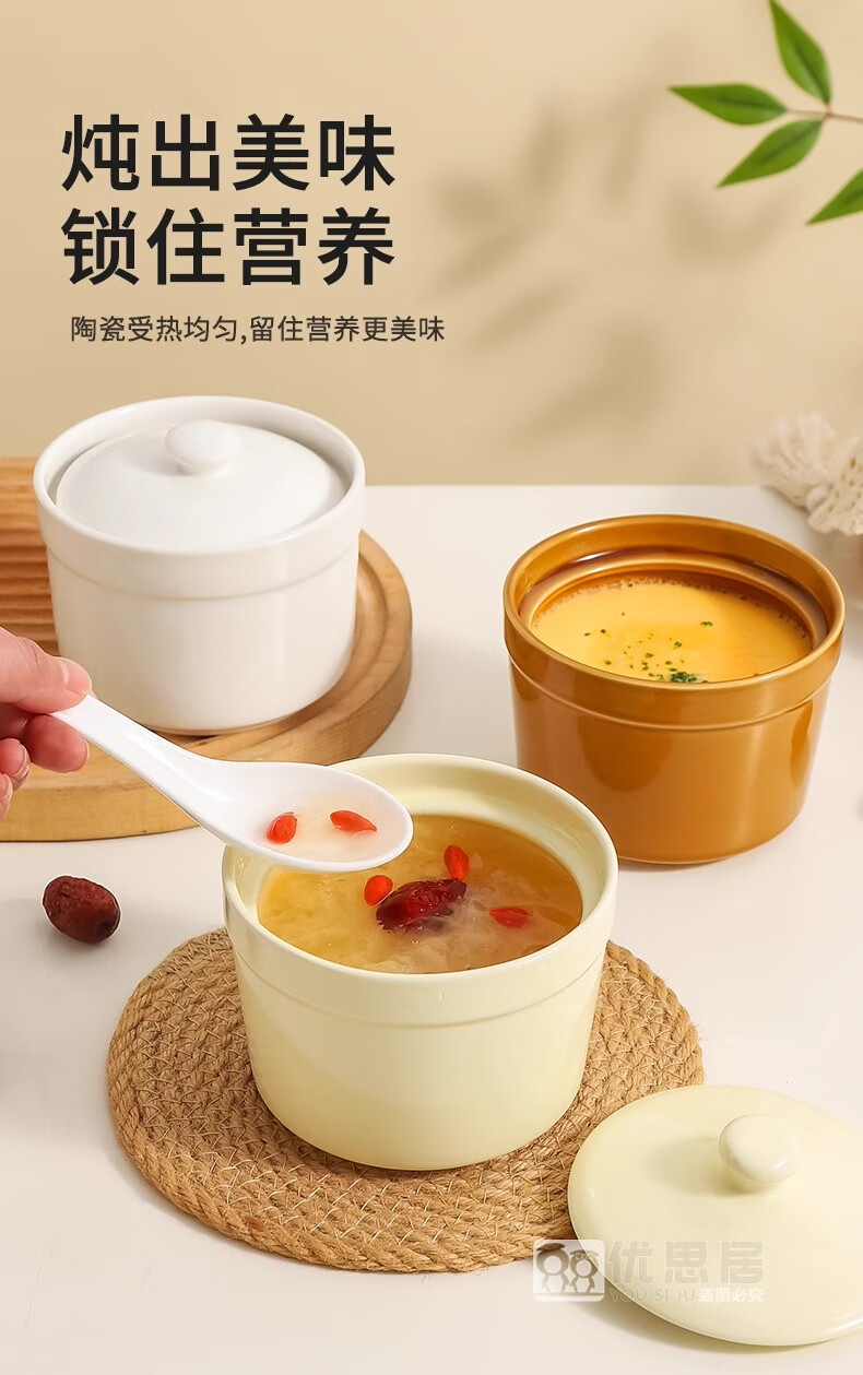 Persson ceramic stew pot water-proof stew pot with lid household steamed egg bowl stewed bird's nest cup egg custard special small crock pot for soup thickening white 2 pieces 500ml